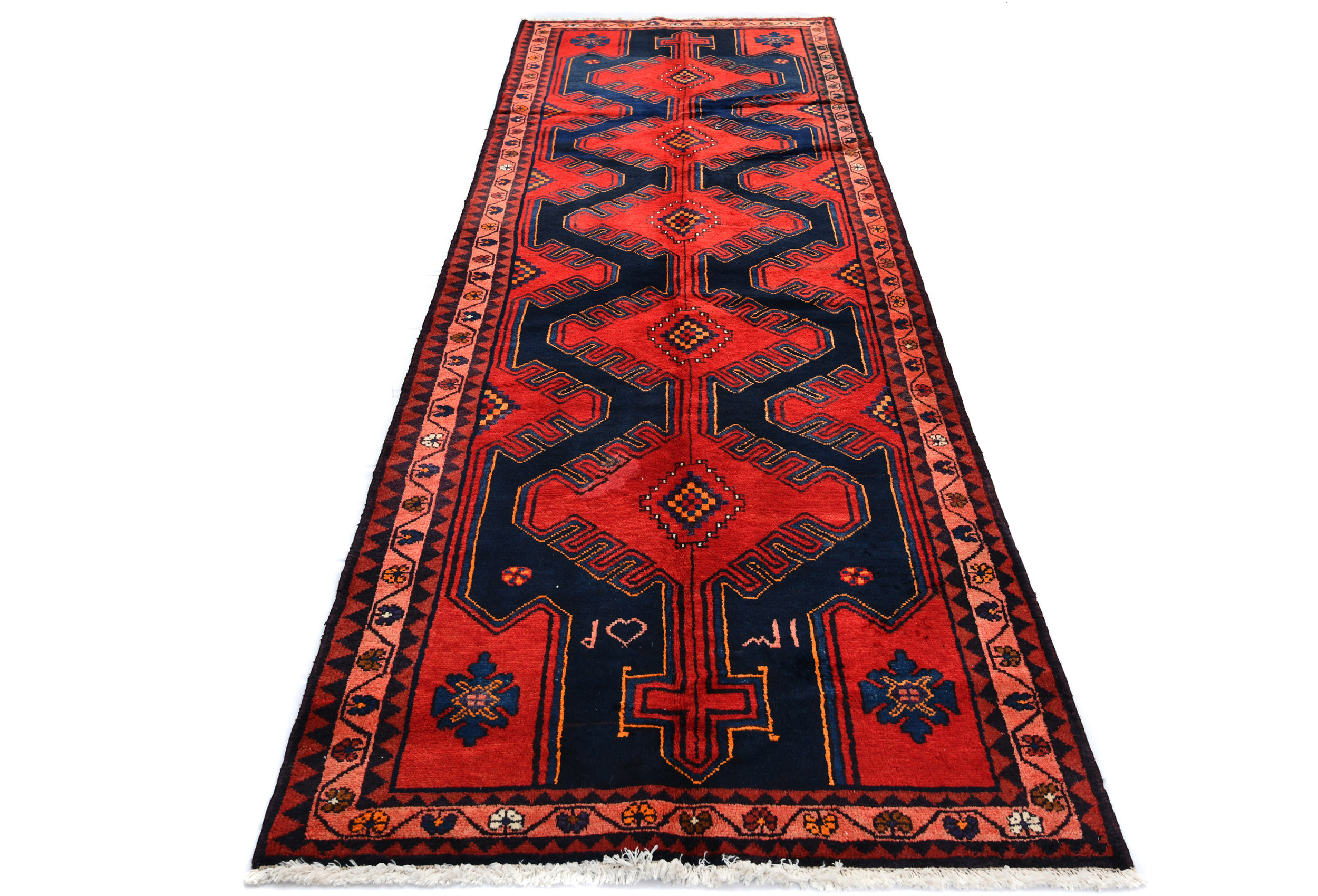 Vintage Purple-navy Tribal 3'7X9'8 Hamedan Persian Runner Rug