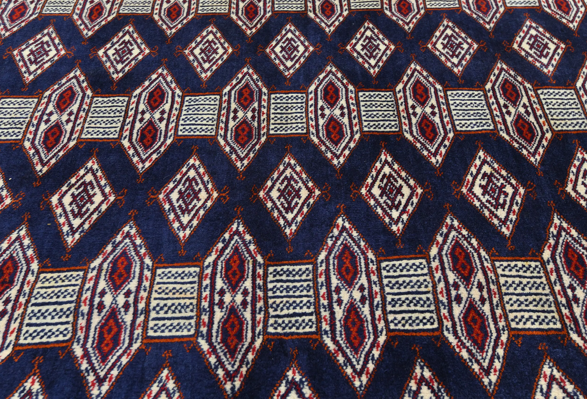 This original 8X11 purple-navy vintage Persian rug was crafted by the hands of skilled weavers enthused by a variety of lovely artistic designs, to recreate the aged look of the unique piece with a richness of color and beautifully elaborated background field. What set this tribal Oriental area rug from the others are the material and dye used (wool pile and cotton foundation), knot count, ancient designs, fantastic grades, and its regional historical connection: it has deep roots, from the story of the people who produced it to the meaning of the symbols and colors displayed across its canvas that have been praised for centuries. This home décor carpet will be completely cozy and inviting that never will go out of style! Also, this Oriental rug would be among your most valuable treasures, it is a great investment that increase in value over time, and it will last for generations because was woven with high-quality, all-natural wool; it won’t rip, tear, or shed. Environmentally friendly, opulent yet affordable; this Persian rug will give you a thorough amount of character to help define your living space with sophistication and warmth that will capture the eyes and attention of your audience (homeowners, designers, decorators, family and friends). RT-7568
