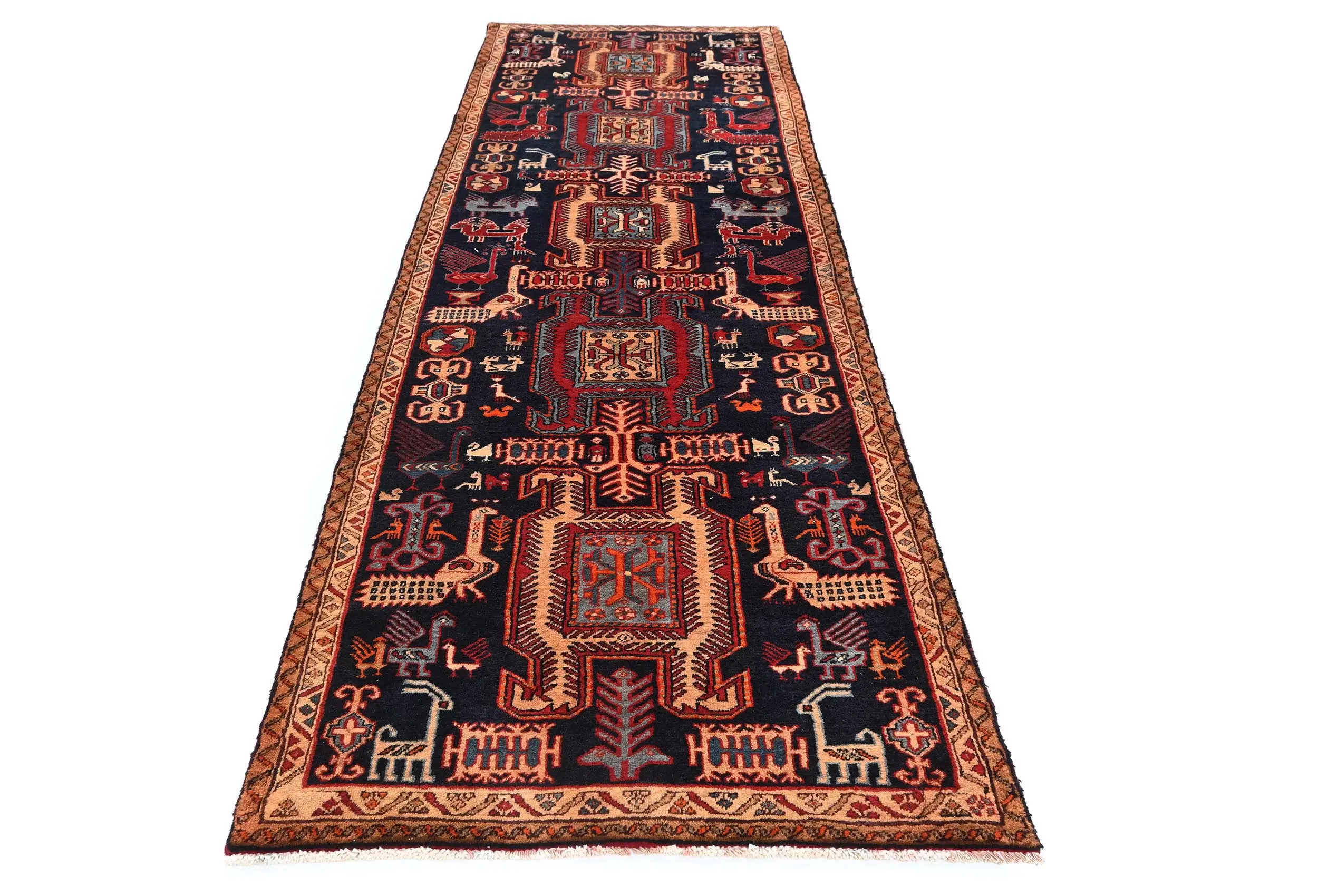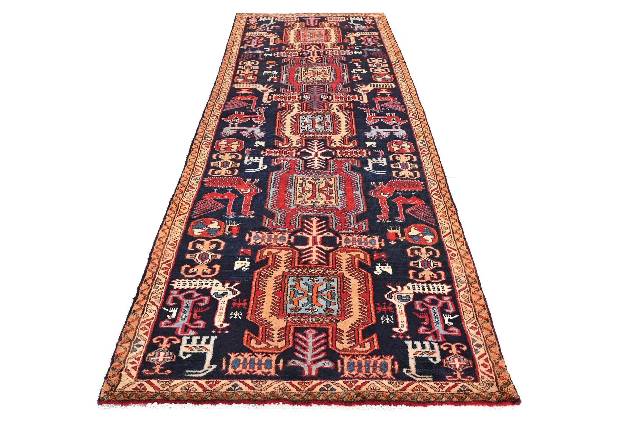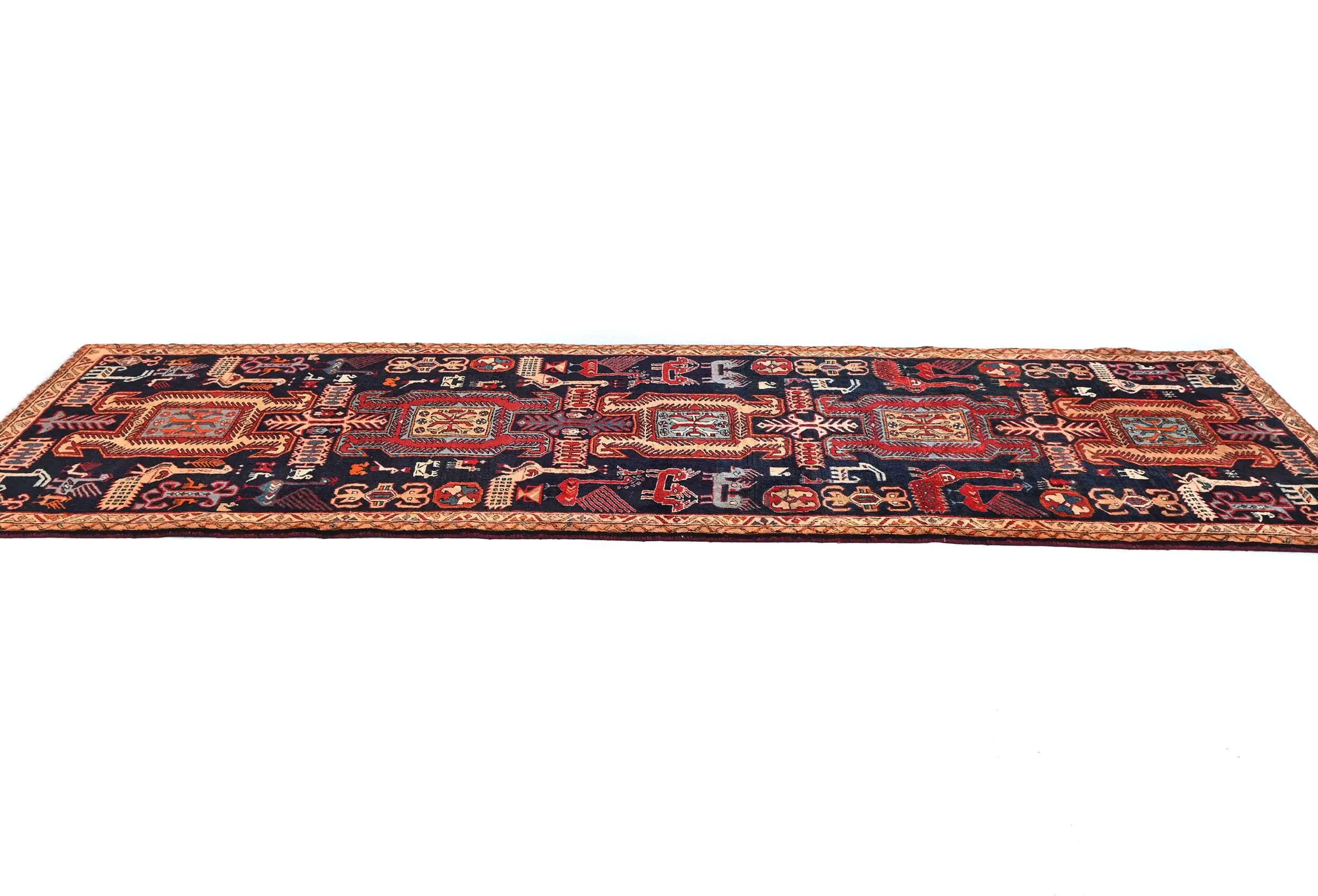 Vintage Purple-navy Tribal Pictorial 3X10 Meshkin Persian Runner Rug