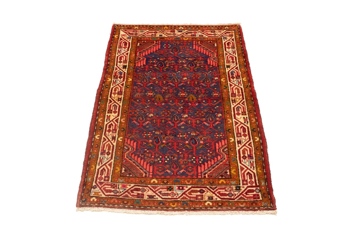 Handmade vintage 2'9X4'3 purple Persian rug made with vegetable dyes (fine wool pile and cotton foundation), exceptional knot count, and alluring ancient designs. This Oriental rug never will go out of style and would be among your most valuable treasures.