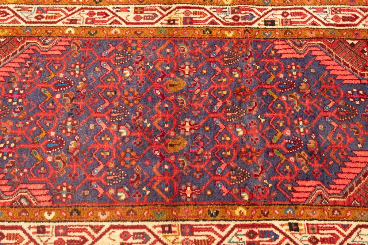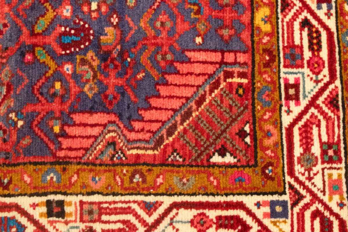 This original 2'9X4'3 purple vintage Persian rug was crafted by the hands of skilled weavers enthused by a variety of lovely artistic designs, to recreate the aged look of the unique piece with a richness of color and beautifully elaborated background field. What set this tribal Oriental area rug from the others are the material and dye used (wool pile and cotton foundation), knot count, ancient designs, fantastic grades, and its regional historical connection: it has deep roots, from the story of the people who produced it to the meaning of the symbols and colors displayed across its canvas that have been praised for centuries. This home décor carpet will be completely cozy and inviting that never will go out of style!