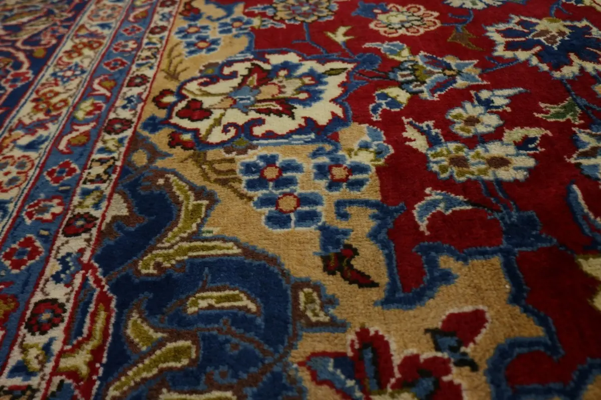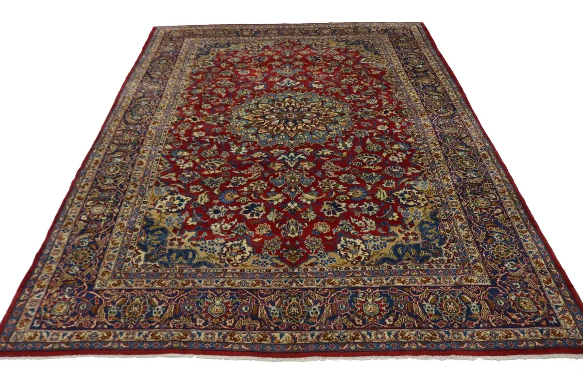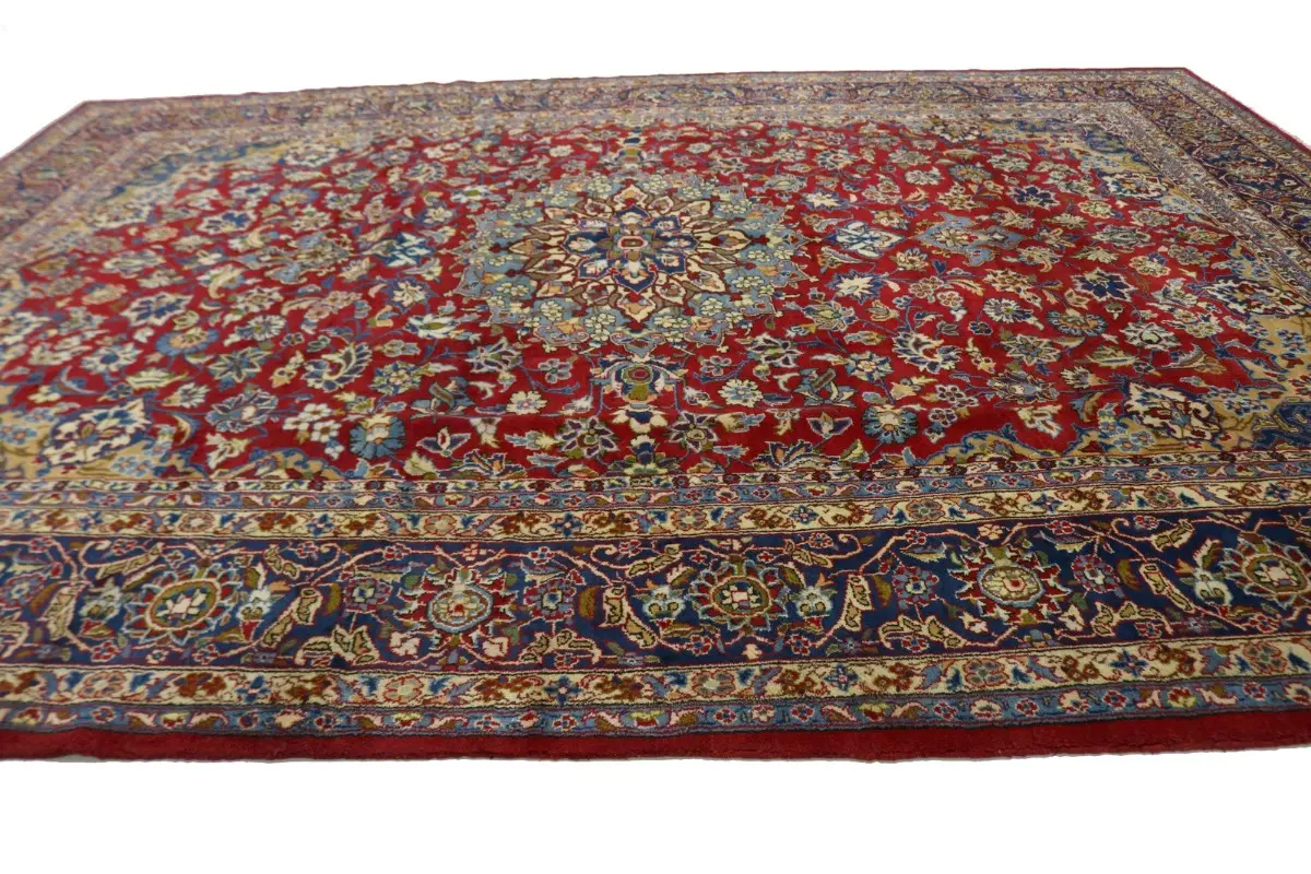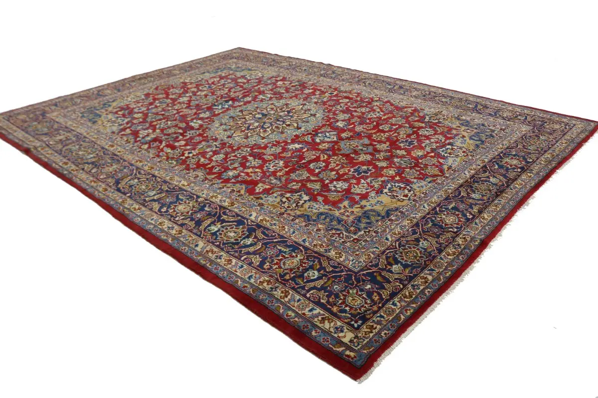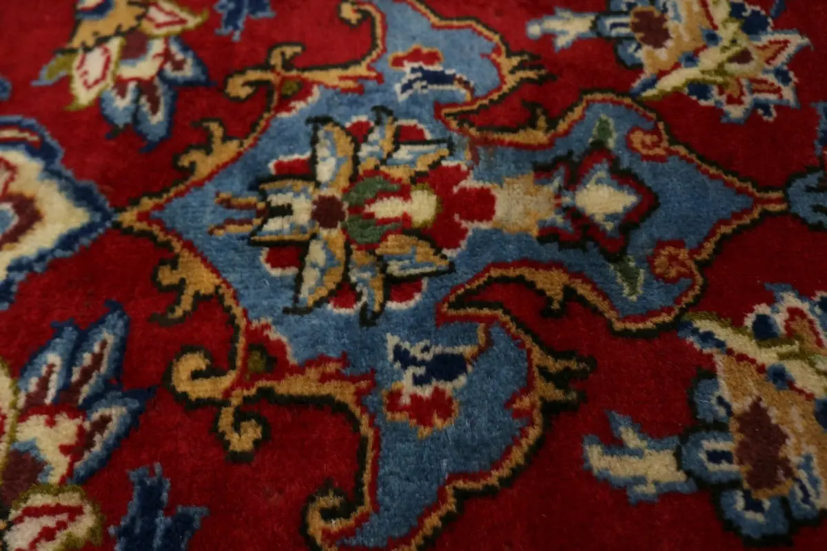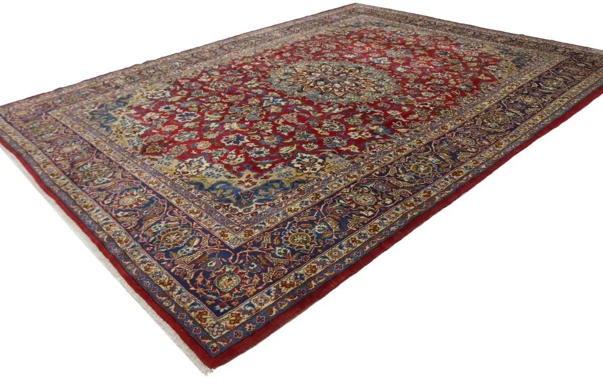 This genuine 10X13 red vintage Persian rug was made by the hands of talented weavers influenced by a variety of gorgeous symmetrical artistic designs, to recreate the aged look of the unique piece with a richness of color and very balanced floral background field. What set this traditional Oriental area rug from the others are the material and dye used (wool pile and cotton foundation), knot count, antique designs, fantastic grades, and its regional historical connection: it has deep roots, from the story of the people who produced it to the meaning of the symbols and colors displayed across its canvas that have been praised for centuries. This classic home décor carpet will be completely cozy and inviting that never will go out of style! Also, this Oriental rug would be among your most valuable treasures, it is a great investment that accrues value over time, and it will last a lifetime because was woven with high-quality, all-natural wool; it won’t rip, tear, or shed. Eco-friendly, opulent yet affordable; this Persian rug will give you an extra pop of character to help define your home environment with sophistication and warmth that will capture the eyes and attention of your audience (homeowners, designers, decorators, family and friends). RT-4897