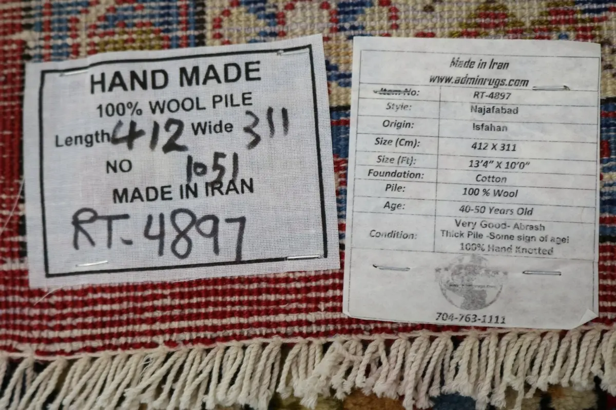 Vintage Red Traditional 10X13 Najafabad Persian Rug