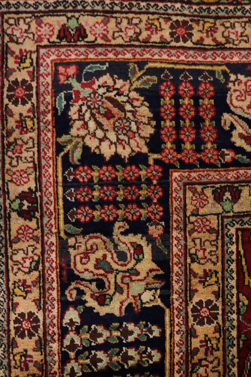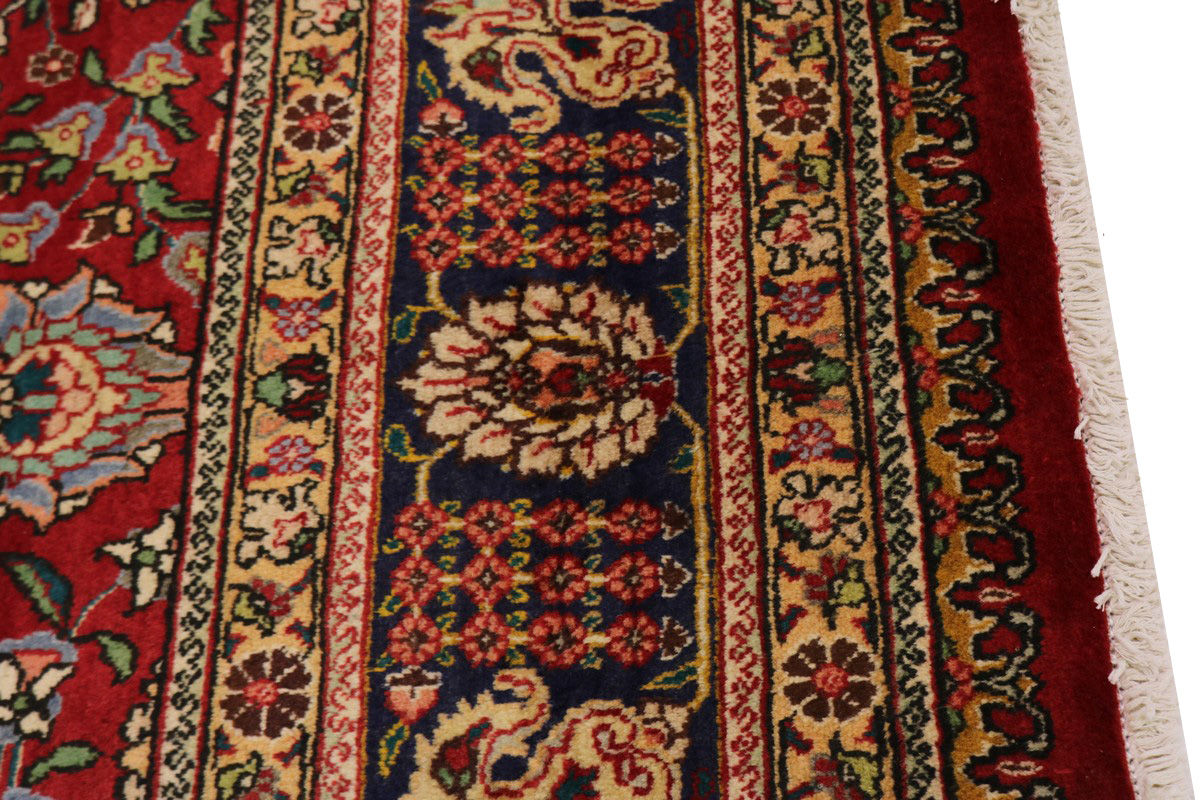 Handmade vintage Persian rug made with vegetable dyes (fine wool pile and cotton foundation), exceptional knot count, and appealing ancient designs. This Oriental rug never will go out of style and would be among your most valuable treasures.