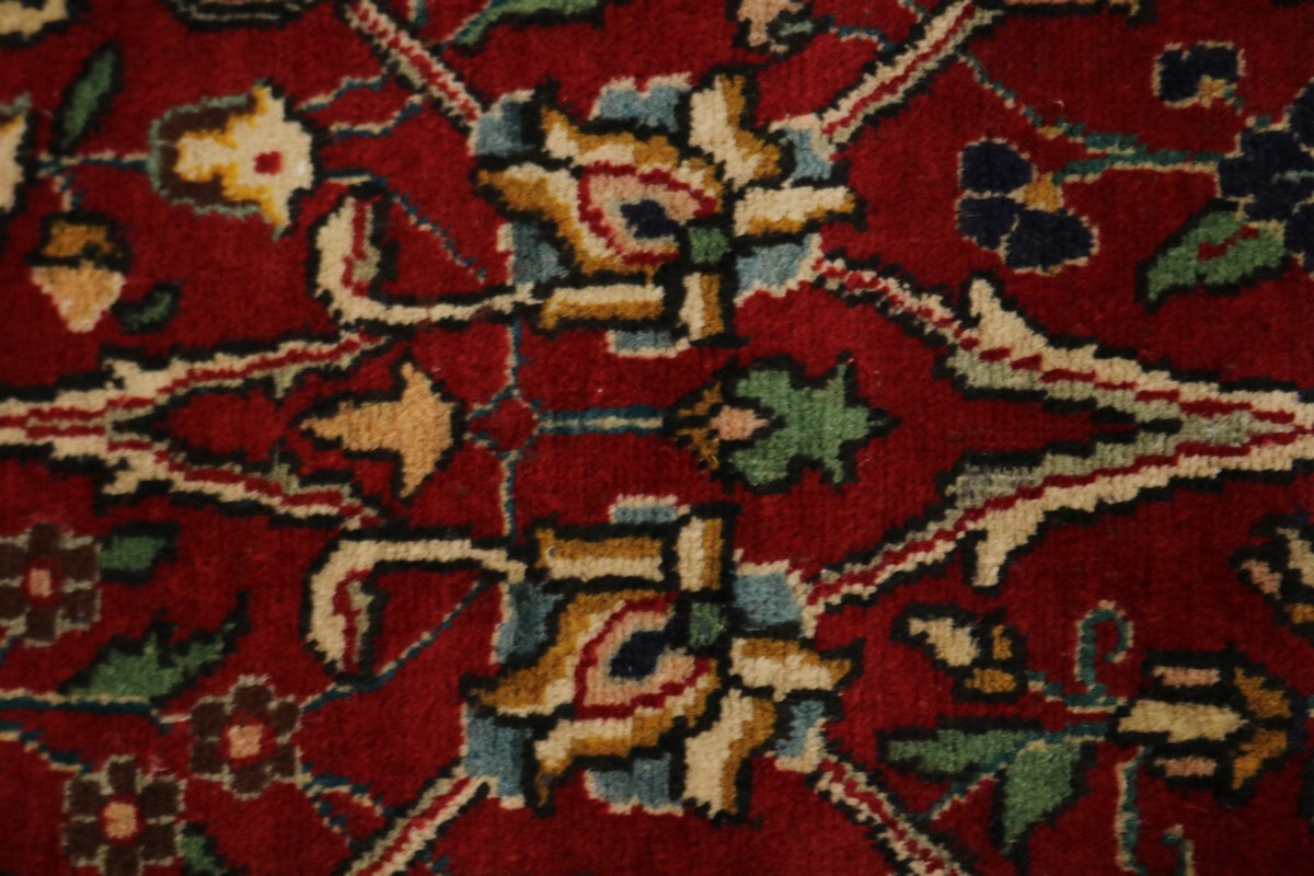 This authentic 10x13 red vintage Persian rug was finely knotted by the hands of weavers influenced by a variety of amazing artistic designs, to recreate the aged look of the exceptional piece with a richness of color and embellished floral background field. What set this traditional Oriental area rug from the others are the material and dye used (wool pile and cotton foundation), knot count, antique designs, fantastic grades, and its regional historical connection: it has deep roots, from the story of the people who produced it to the meaning of the symbols and colors displayed across its canvas that have been praised for centuries. This classic home décor carpet will be completely cozy and inviting that never will go out of style! Also, this Oriental rug would be among your most valuable treasures, it is a great investment that increase in value over time, and it will last a lifetime because was woven with high-quality, all-natural wool; it won’t rip, tear, or shed. Eco-friendly, opulent yet affordable; this Persian rug will give you an extra pop of character to help define your home environment with luxury and warmth that will capture the eyes and attention of your audience (homeowners, designers, decorators, family and friends). RT-9814
