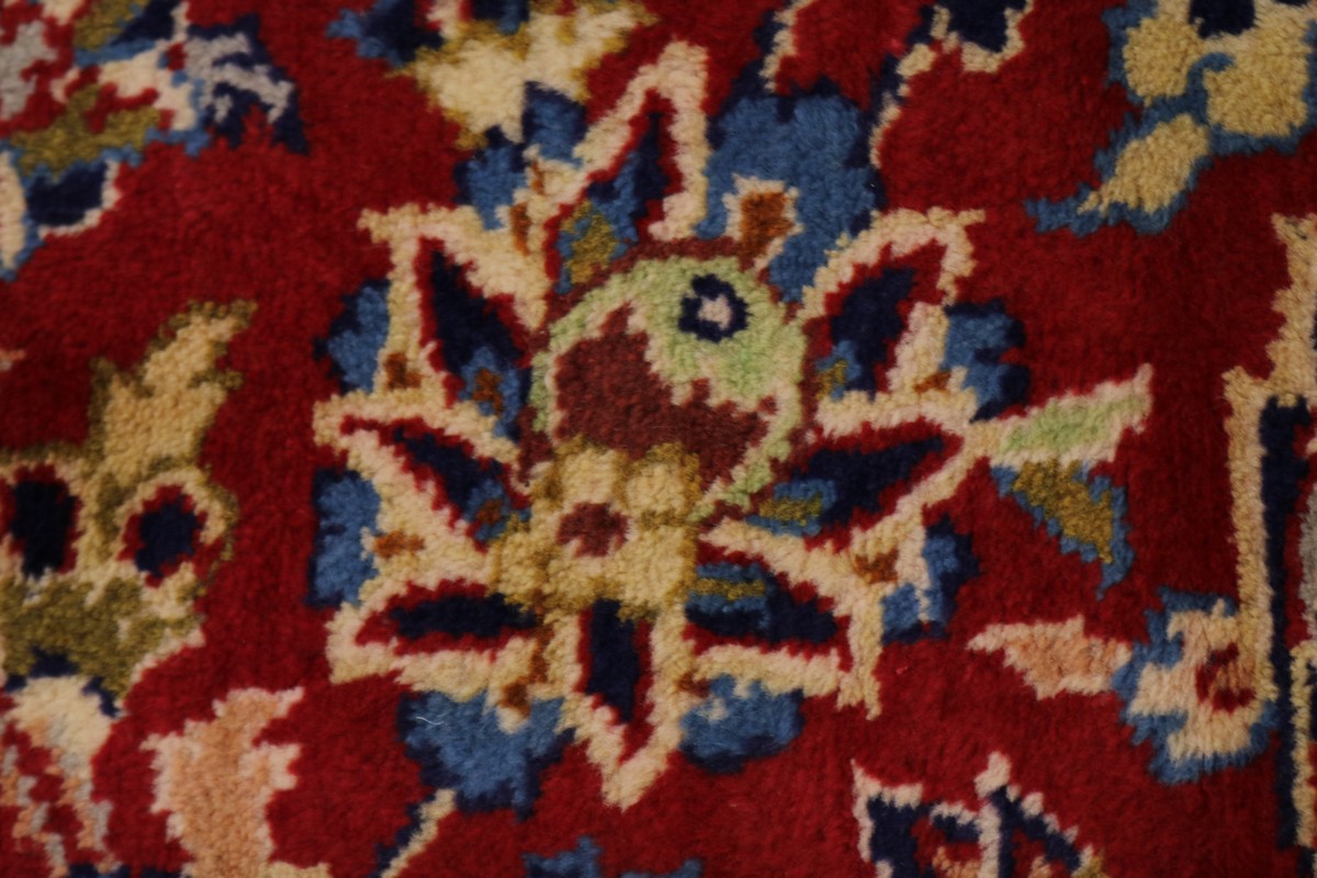 This original 10x17 red vintage Persian rug was crafted by the hands of skilled weavers enthused by a variety of lovely artistic designs, to recreate the aged look of the unique piece with a richness of color and beautifully elaborated floral background field. What set this traditional Oriental area rug from the others are the material and dye used (wool pile and cotton foundation), knot count, ancient designs, fantastic grades, and its regional historical connection: it has deep roots, from the story of the people who produced it to the meaning of the symbols and colors displayed across its canvas that have been praised for centuries. This classic home décor carpet will be completely cozy and inviting that never will go out of style! Also, this Oriental rug would be among your most valuable treasures, it is a great investment that increase in value over time, and it will last for generations because was woven with high-quality, all-natural wool; it won’t rip, tear, or shed. Environmentally friendly, opulent yet affordable; this Persian rug will give you a thorough amount of character to help define your living space with sophistication and warmth that will capture the eyes and attention of your audience (homeowners, designers, decorators, family and friends). RT-9822