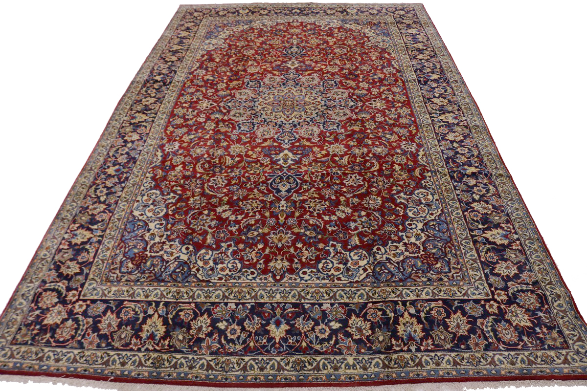 Handmade vintage Persian rug made with natural dyes (fine wool pile and cotton foundation), superior knot count, and appealing ancient designs. This Oriental rug never will go out of style and would be among your most valuable treasures.