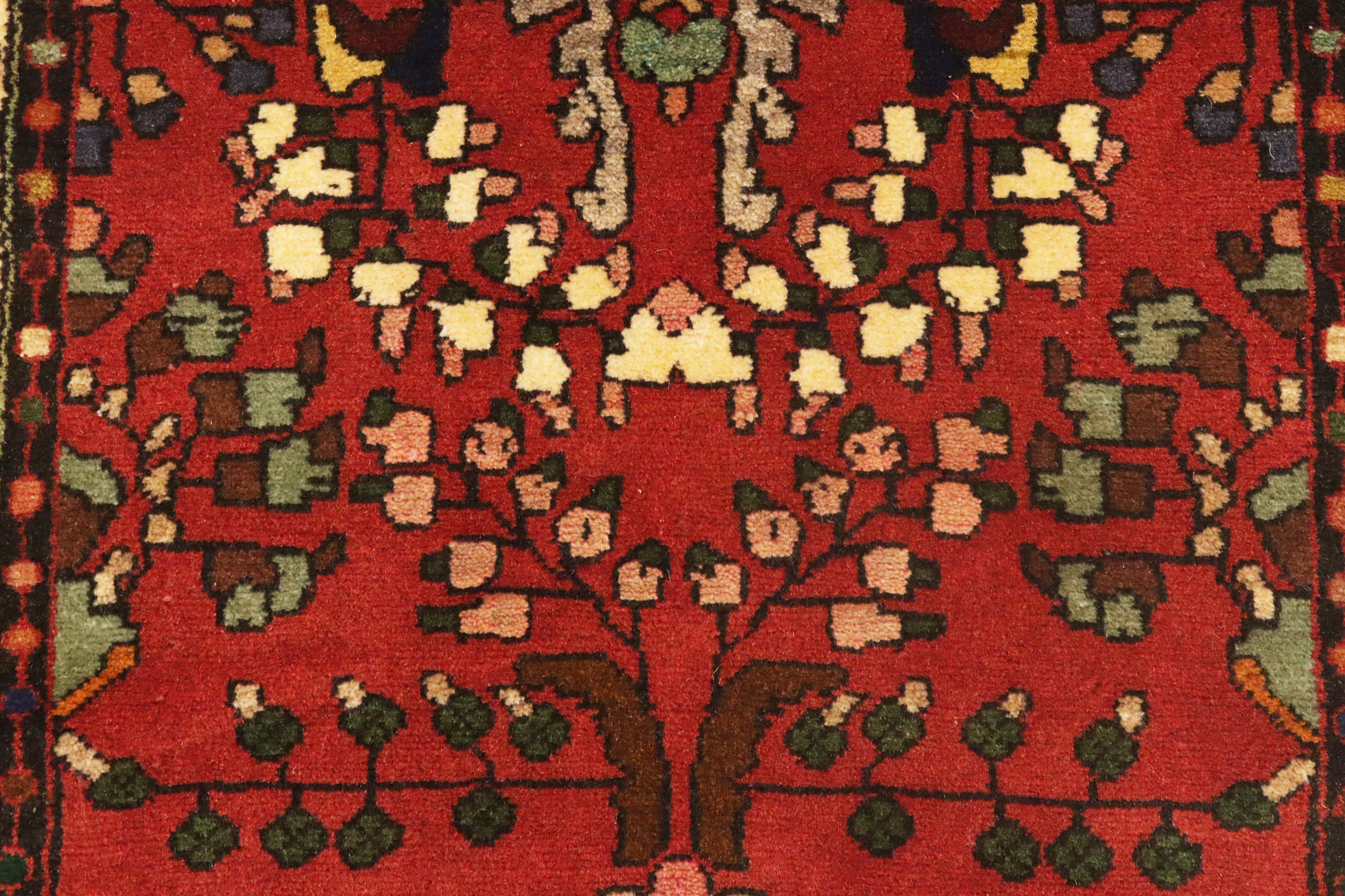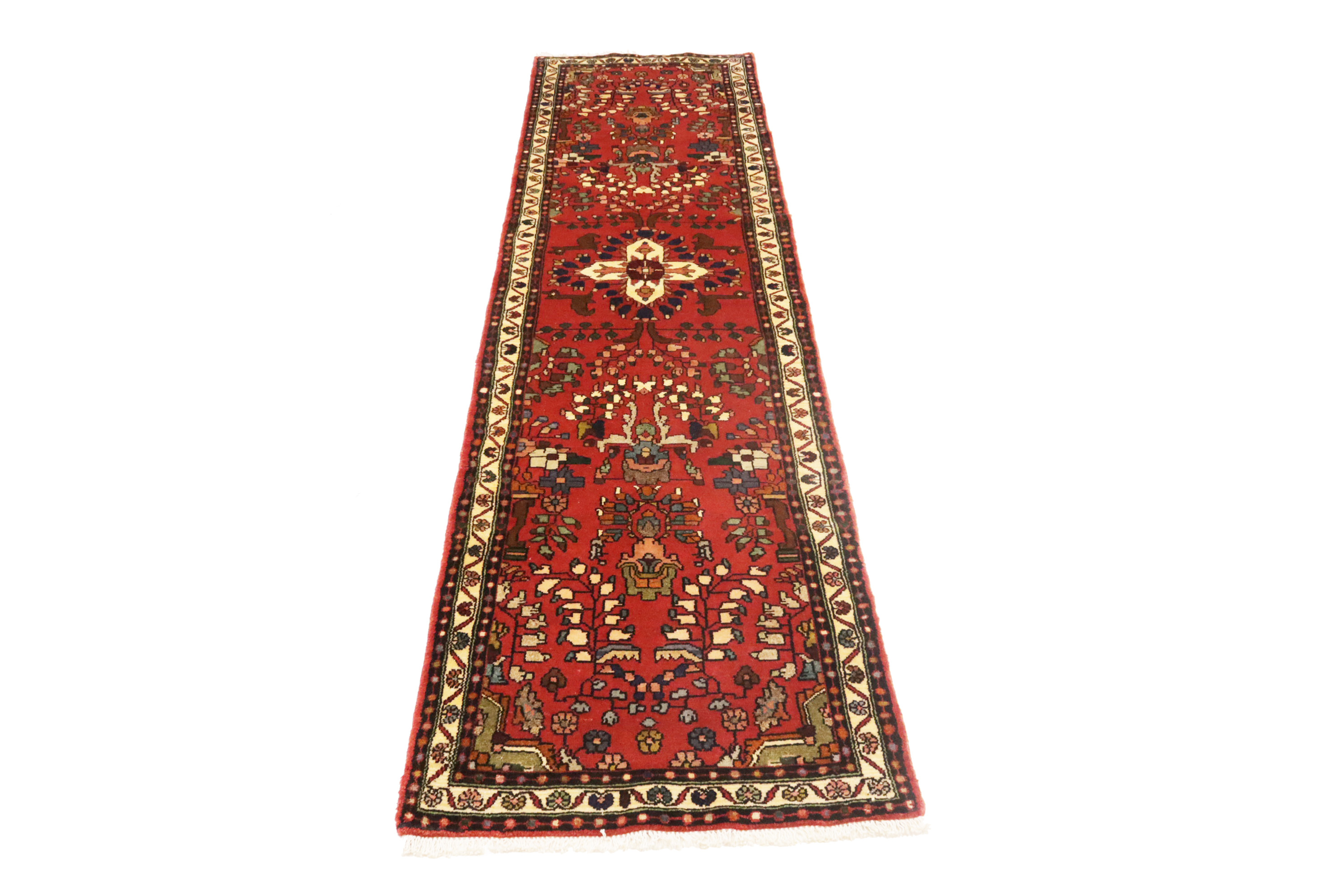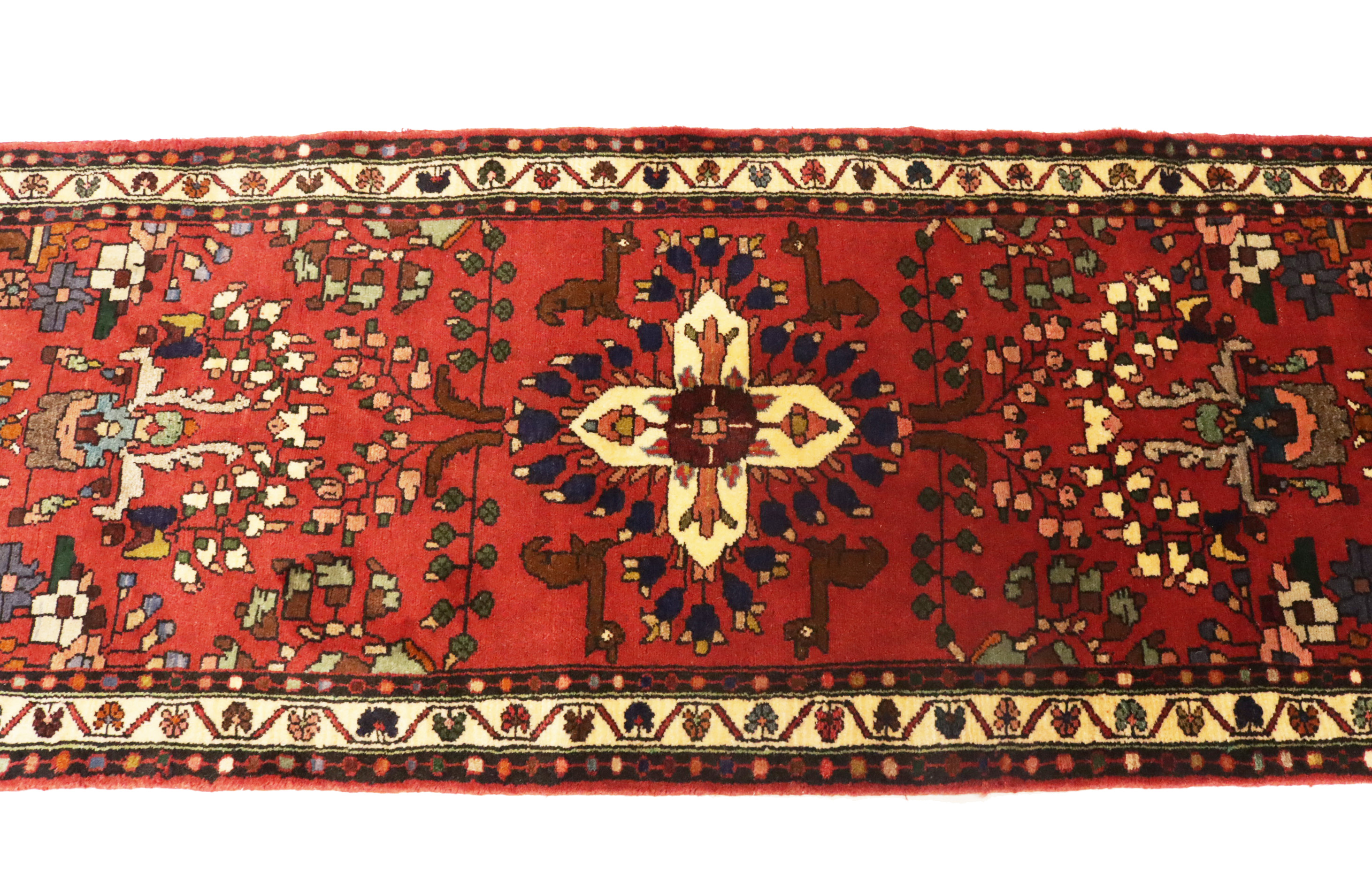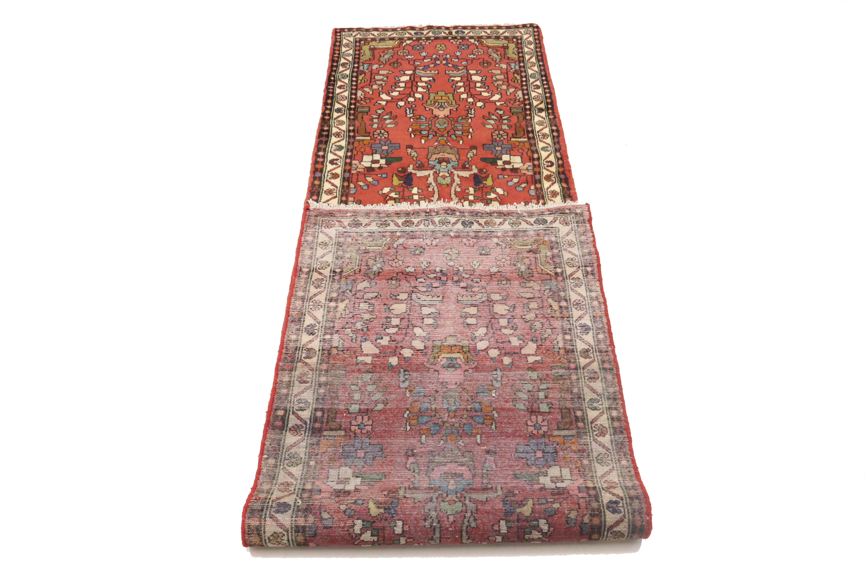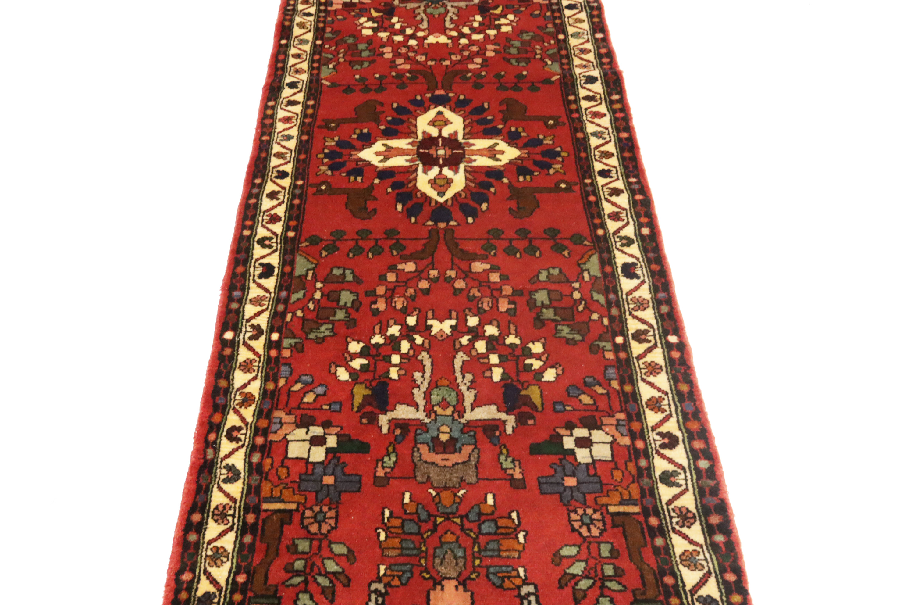 Handmade vintage 2'5X9'7 red Persian runner made with natural dyes (fine wool pile and cotton foundation), superior knot count, and appealing ancient designs. This Oriental runner never will go out of style and would be among your most valuable treasures.