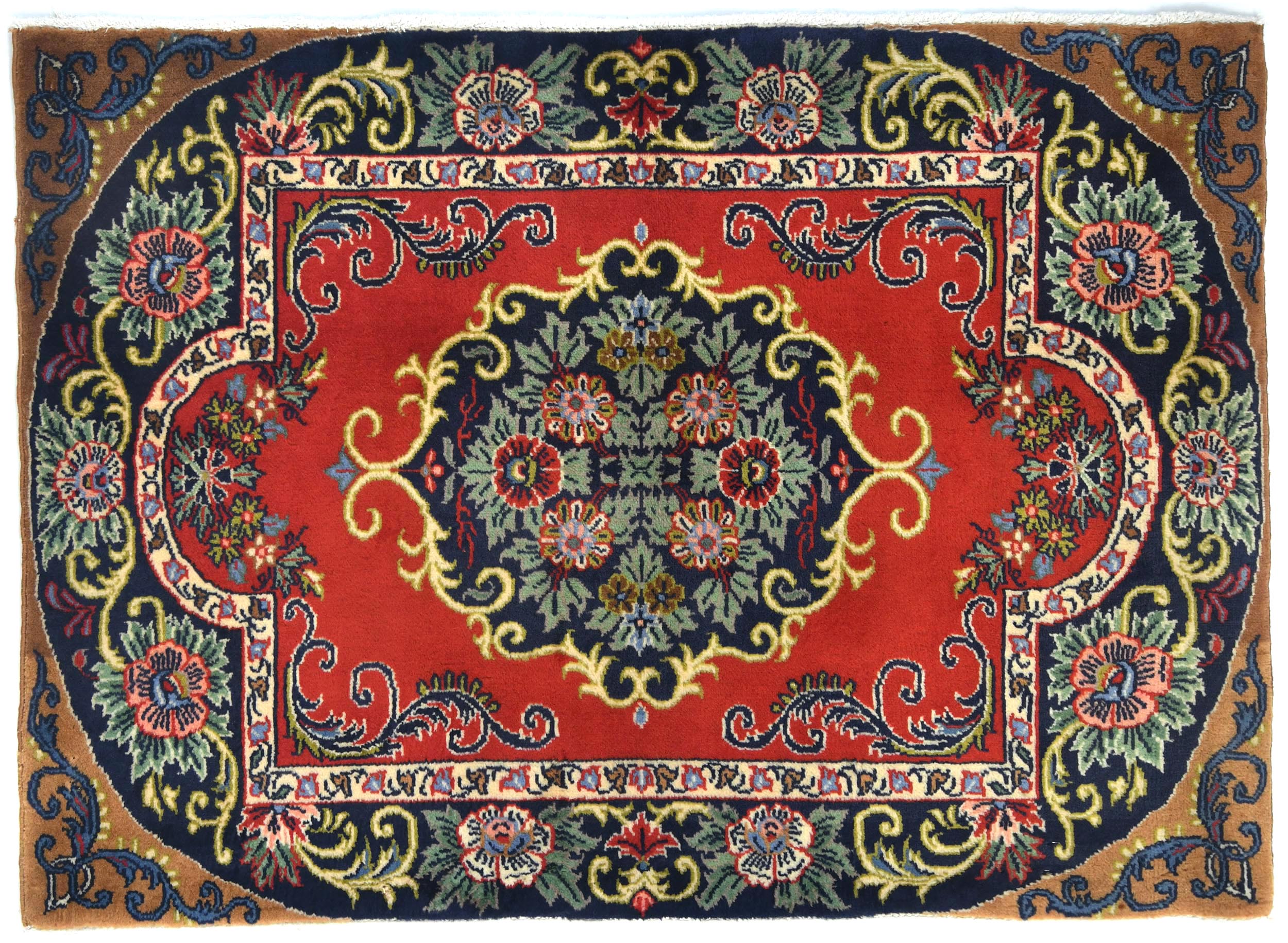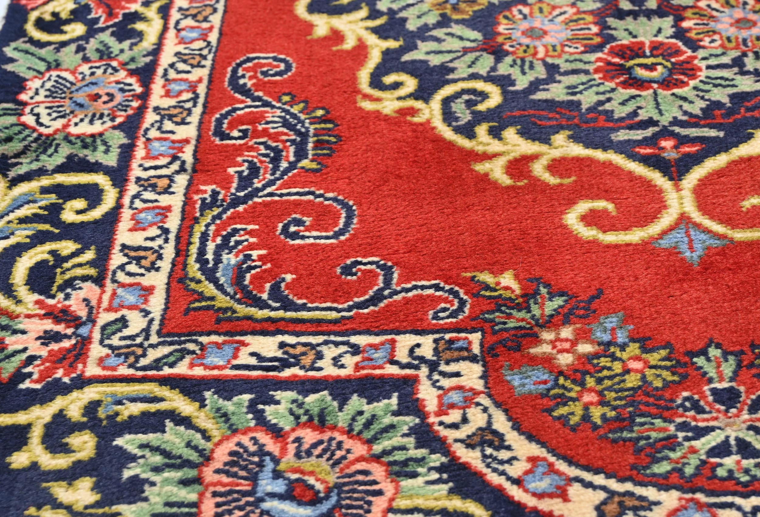 Vintage Red Floral 2x3 Ghom Kashan Persian Rug