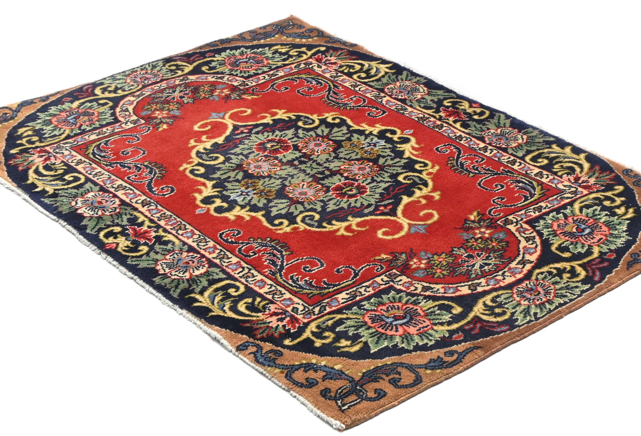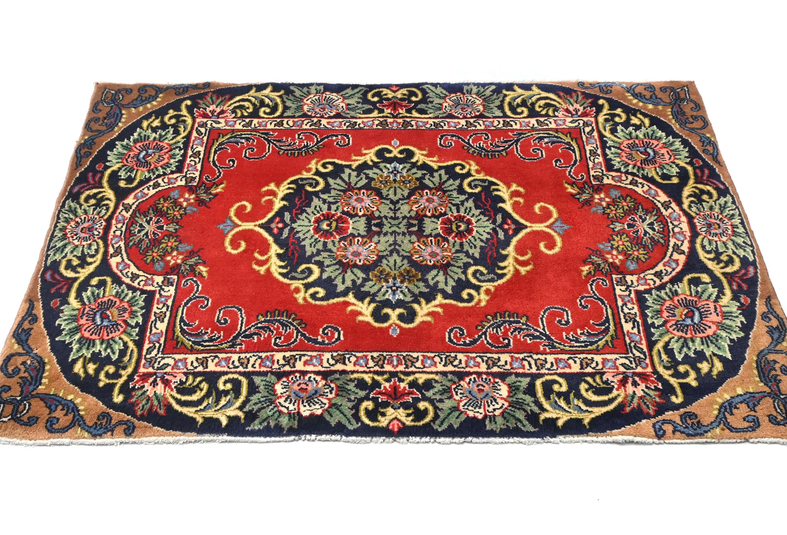 This authentic 2'4X3'2 Red vintage Persian rug was masterly knotted by the hands of weavers inspired by a variety of wonderful artistic designs, to recreate the aged look of the original piece with a richness of color and intricate patterned floral background field. What set this traditional Oriental area rug from the others are the material and dye used (wool pile and cotton foundation), knot count, antique designs, fantastic grades, and its regional historical connection: it has deep roots, from the story of the people who produced it to the meaning of the symbols and colors displayed across its canvas that have been praised for centuries. This classic home décor carpet will be completely cozy and inviting that never will go out of style! Also, this Oriental rug would be among your most valuable treasures, it is a great investment that accrues value over time, and it will last for generations because was woven with high-quality, all-natural wool; it won’t rip, tear, or shed. Environmentally friendly, opulent yet affordable; this Persian rug will give you a thorough amount of character to help define your living space with luxury and warmth that will capture the eyes and attention of your audience (homeowners, designers, decorators, family and friends). RT-7354