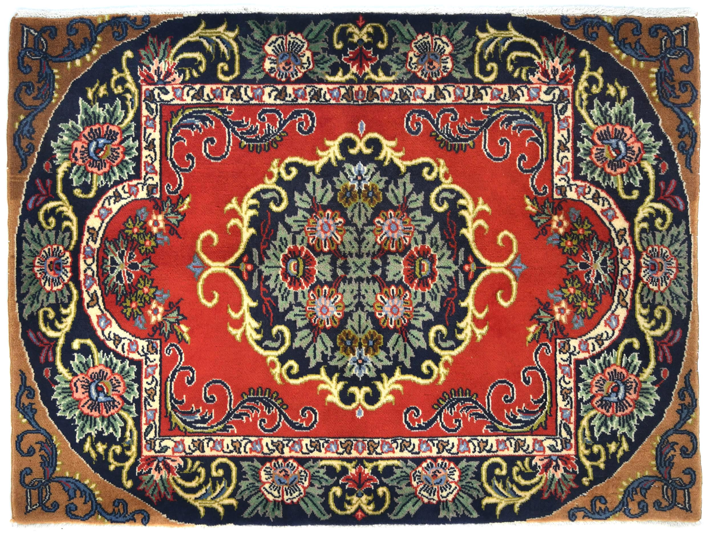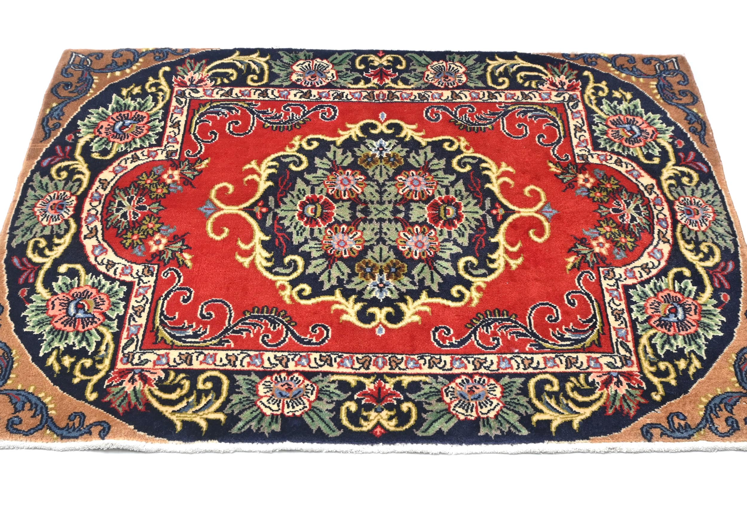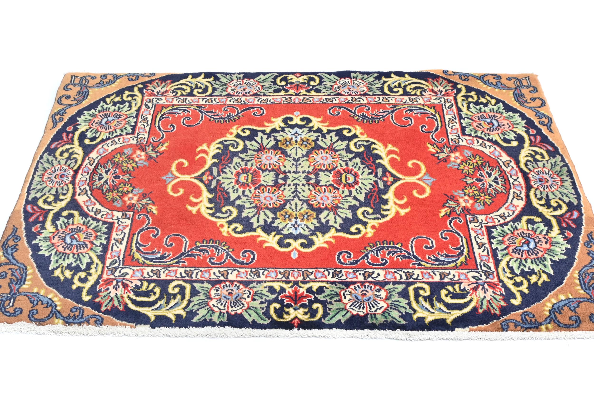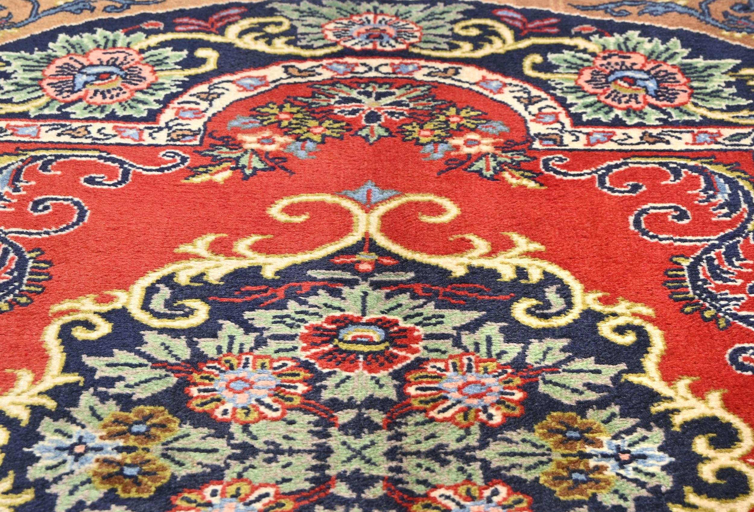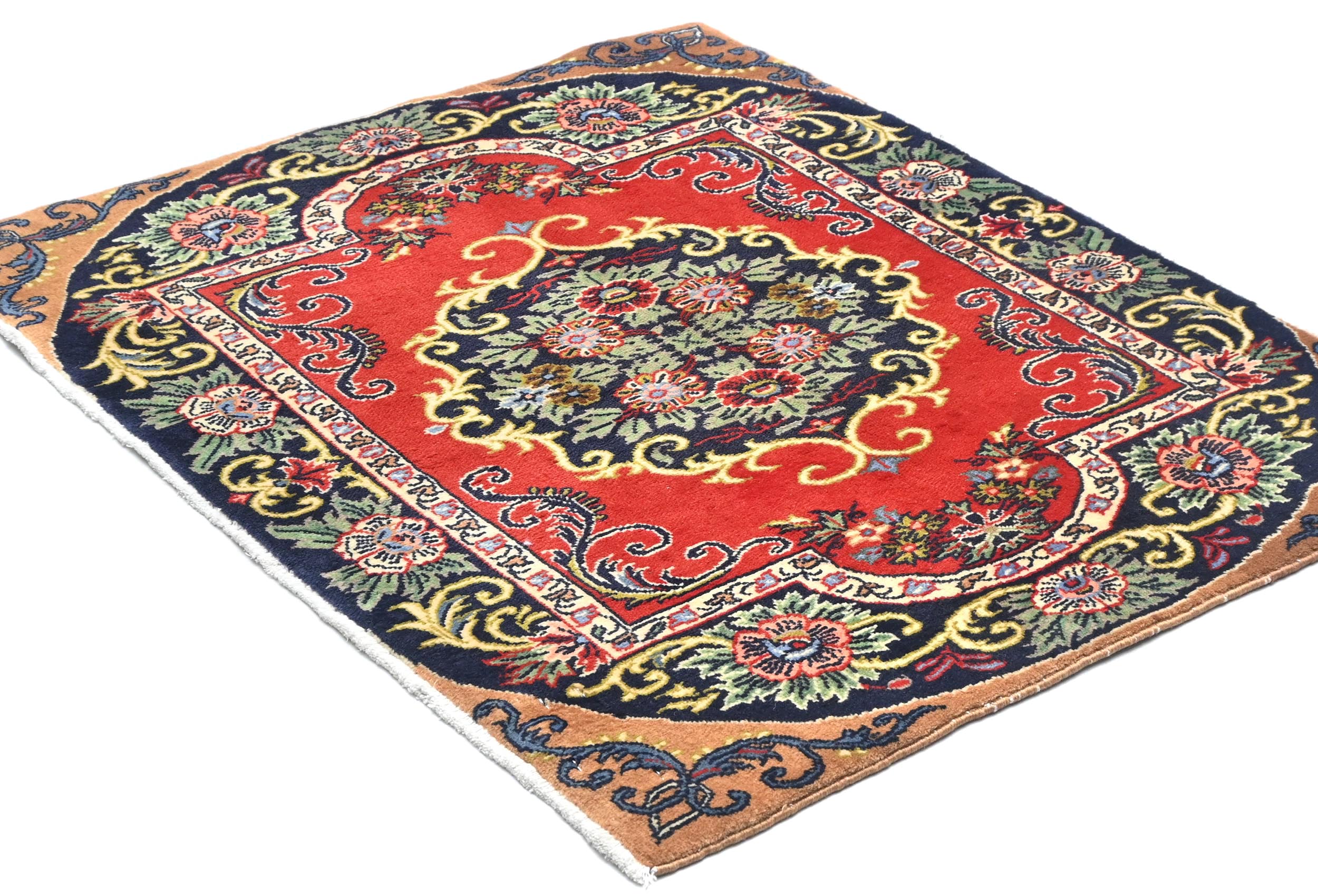 - Hand-knotted in Persia with wool pile on cotton base