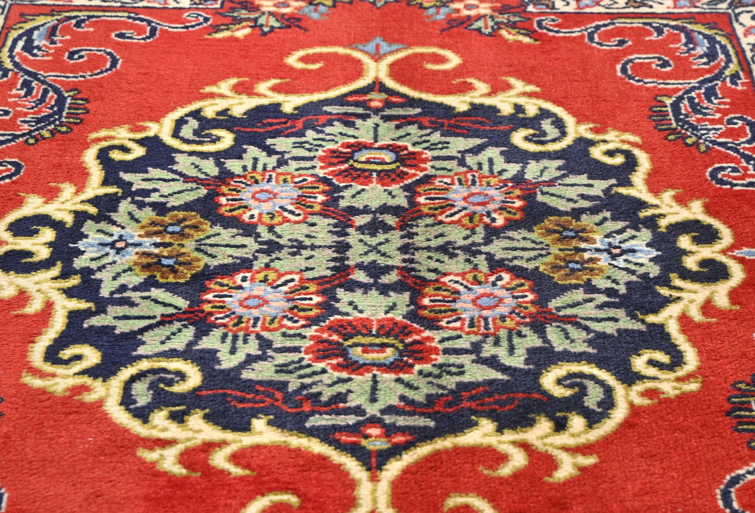 Vintage Red Floral 2X3 Ghom Kashan Persian Rug