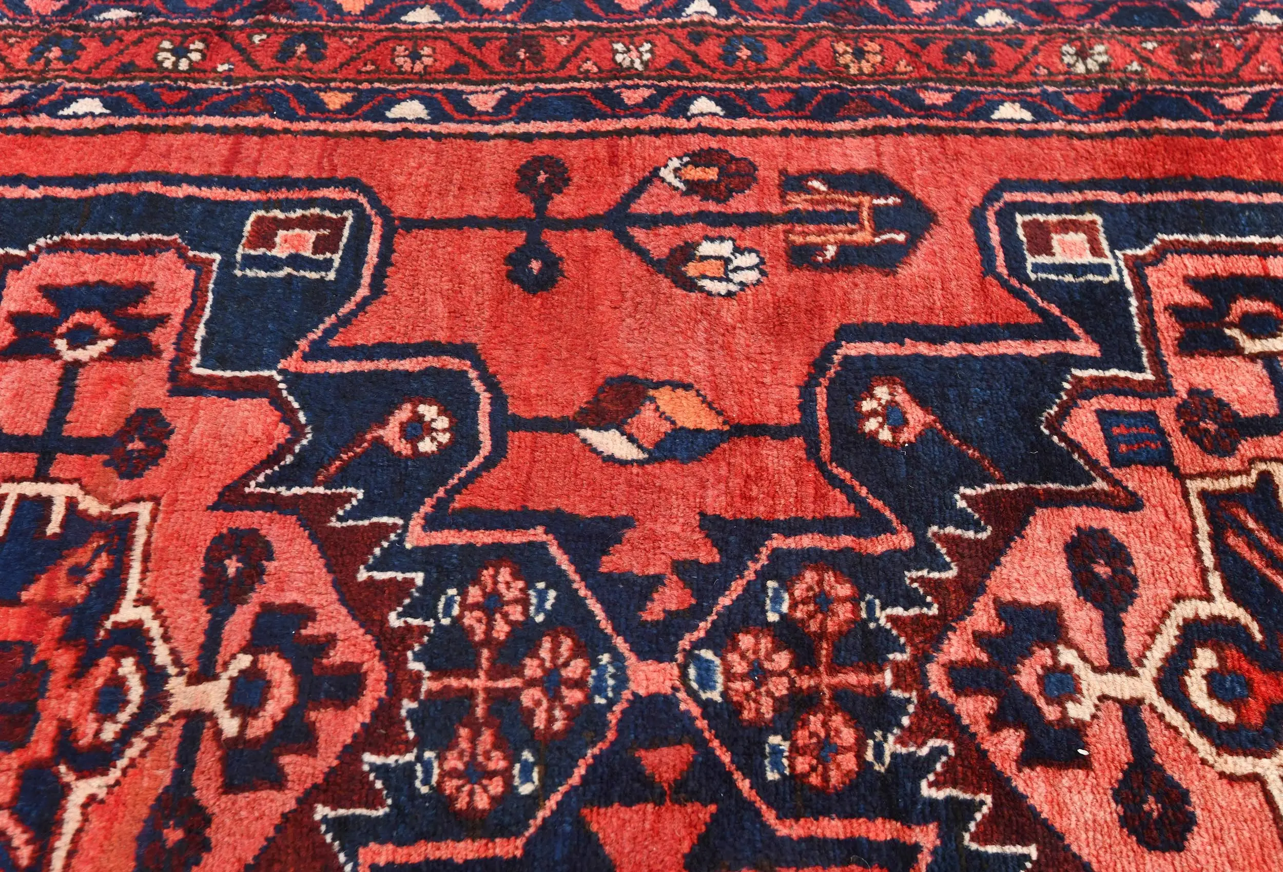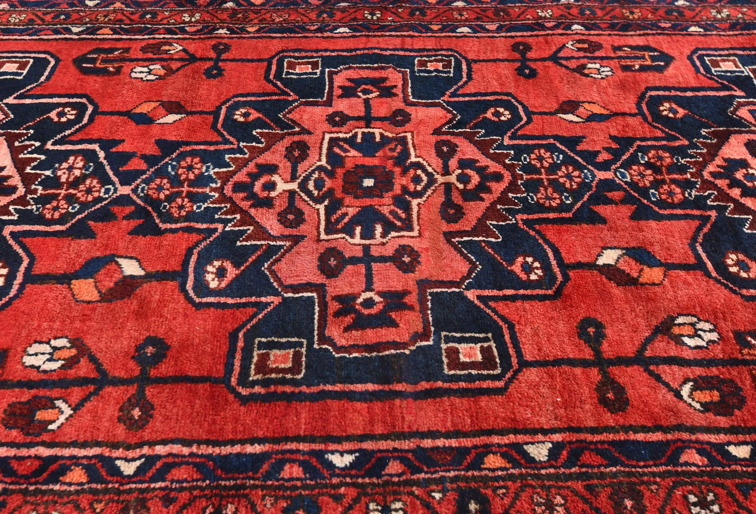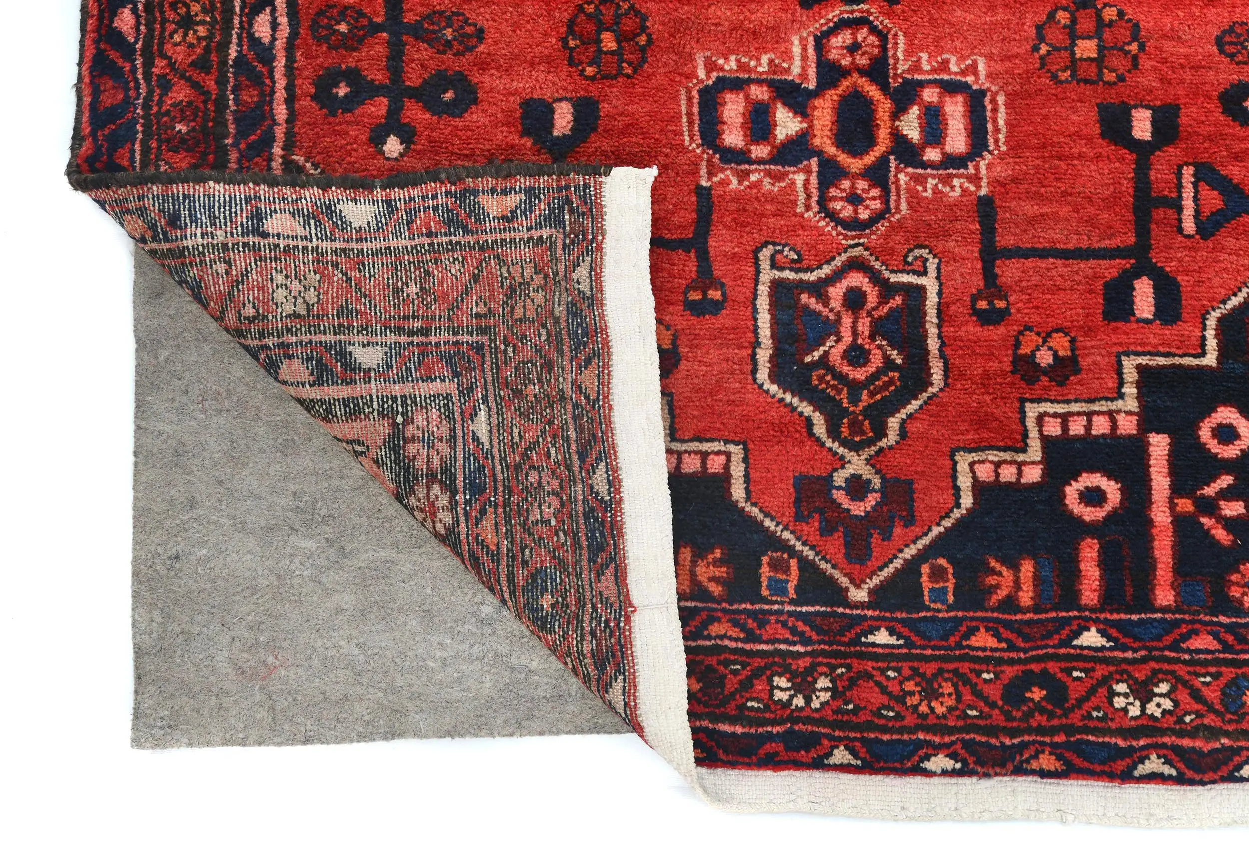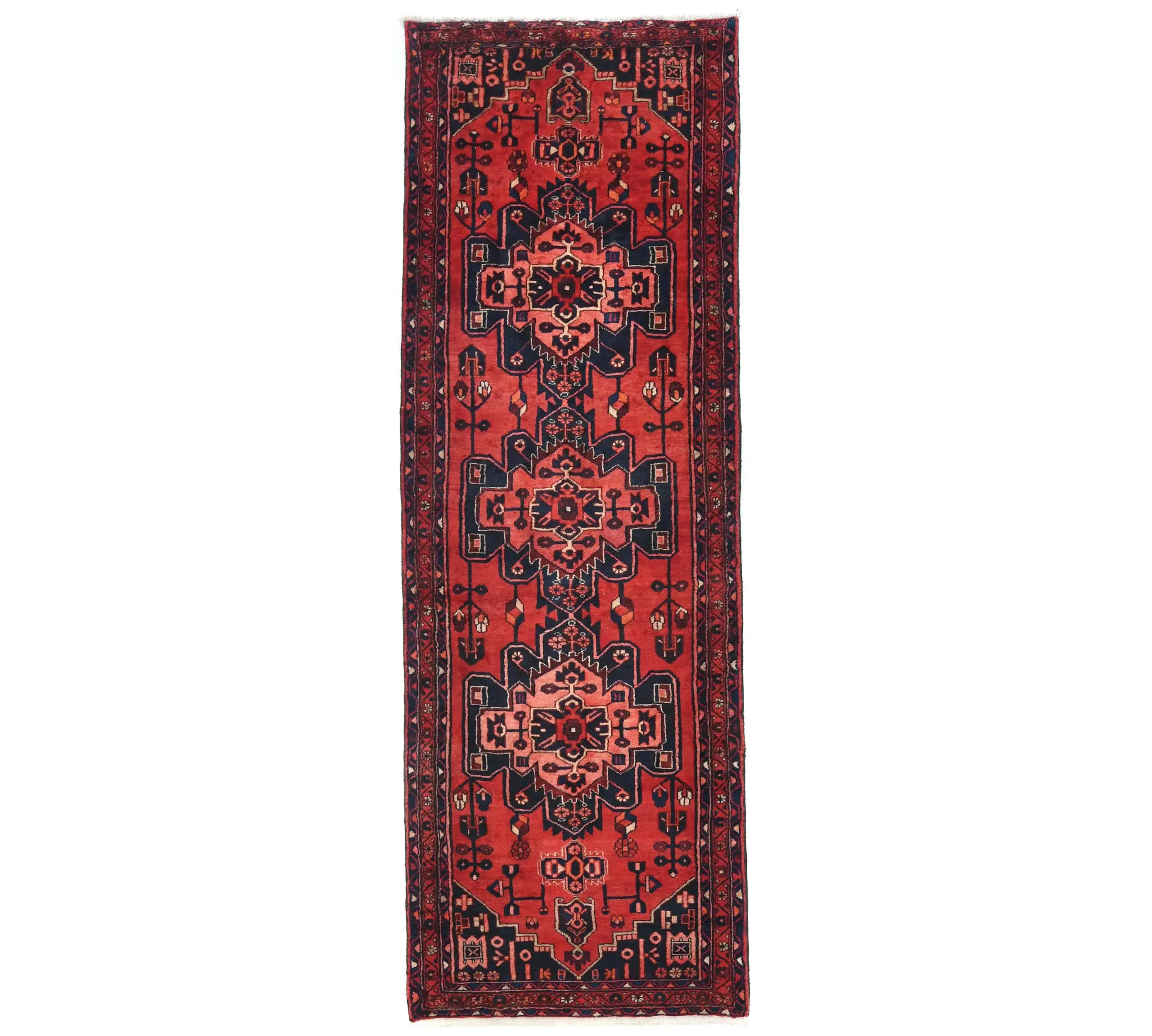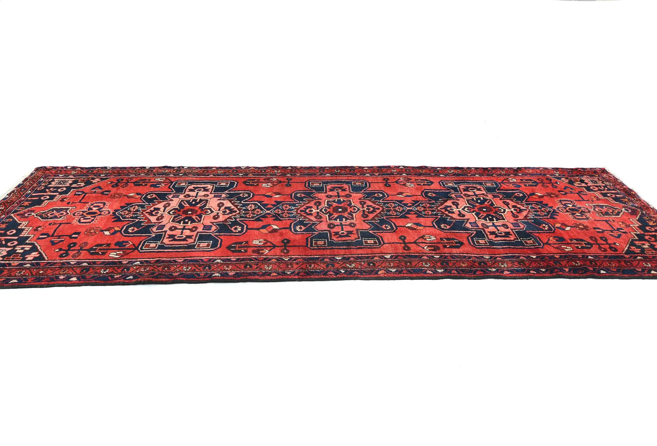 This authentic 3'7X10 Red vintage Persian runner was masterly knotted by the hands of weavers inspired by a variety of wonderful artistic designs, to recreate the aged look of the original piece with a richness of color and intricate patterned background field. What set this tribal Oriental area runner from the others are the material and dye used (wool pile and cotton foundation), knot count, antique designs, fantastic grades, and its regional historical connection: it has deep roots, from the story of the people who produced it to the meaning of the symbols and colors displayed across its canvas that have been praised for centuries. This home décor carpet will be completely cozy and inviting that never will go out of style! Also, this Oriental runner would be among your most valuable treasures, it is a great investment that accrues value over time, and it will last for generations because was woven with high-quality, all-natural wool; it won’t rip, tear, or shed. Environmentally friendly, opulent yet affordable; this Persian rug will give you a thorough amount of character to help define your living space with luxury and warmth that will capture the eyes and attention of your audience (homeowners, designers, decorators, family and friends).