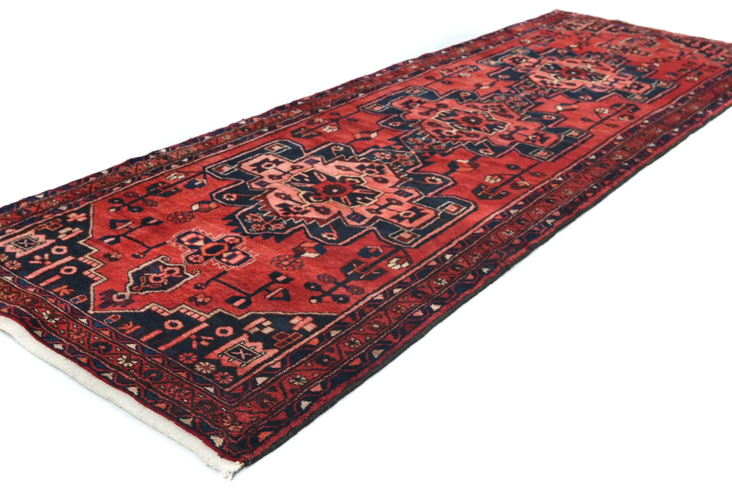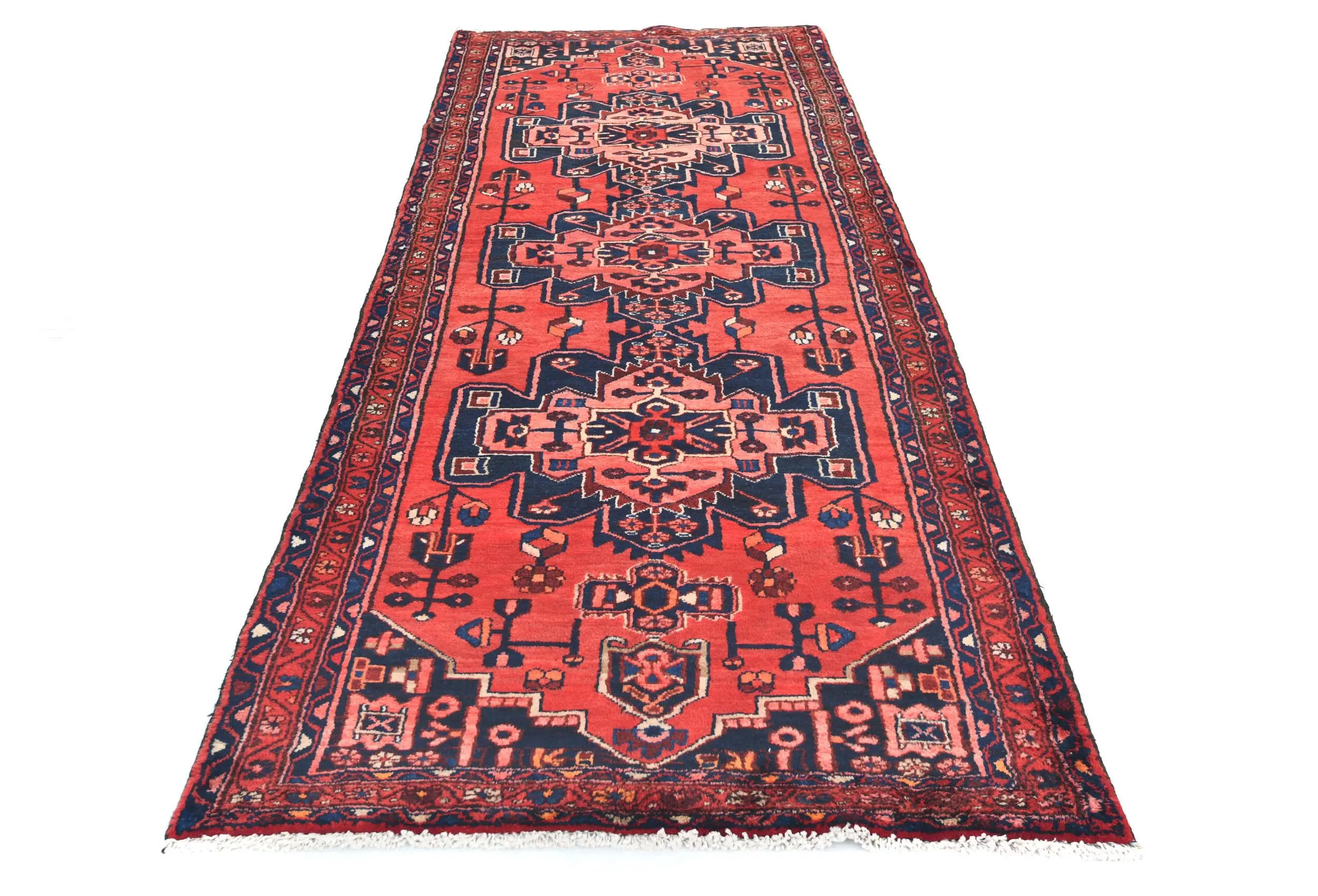 Handmade vintage 3'7X10 Red Persian runner made with vegetable dyes (fine wool pile and cotton foundation), superior knot count, and alluring ancient designs. This Oriental runner never will go out of style and would be among your most valuable treasures.