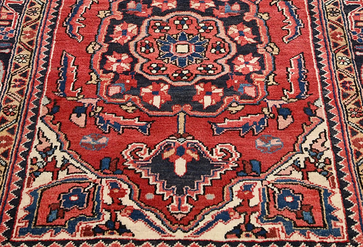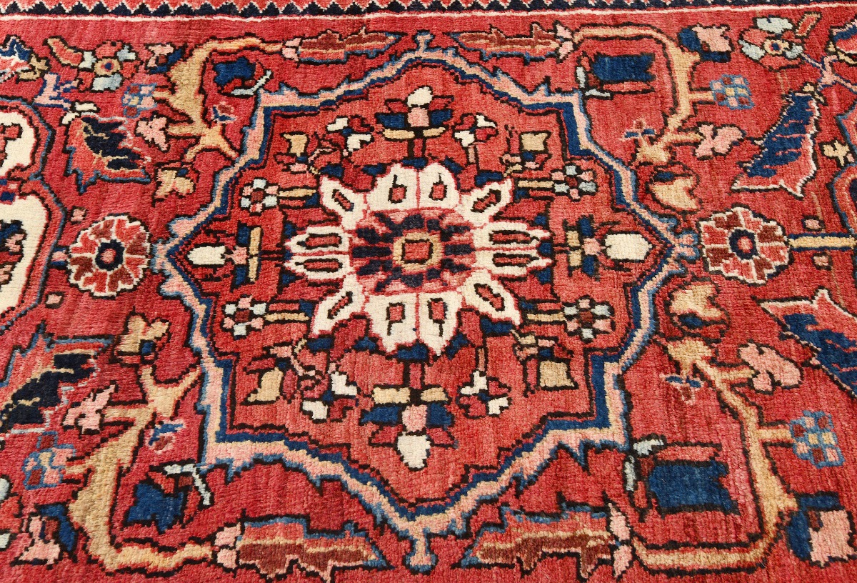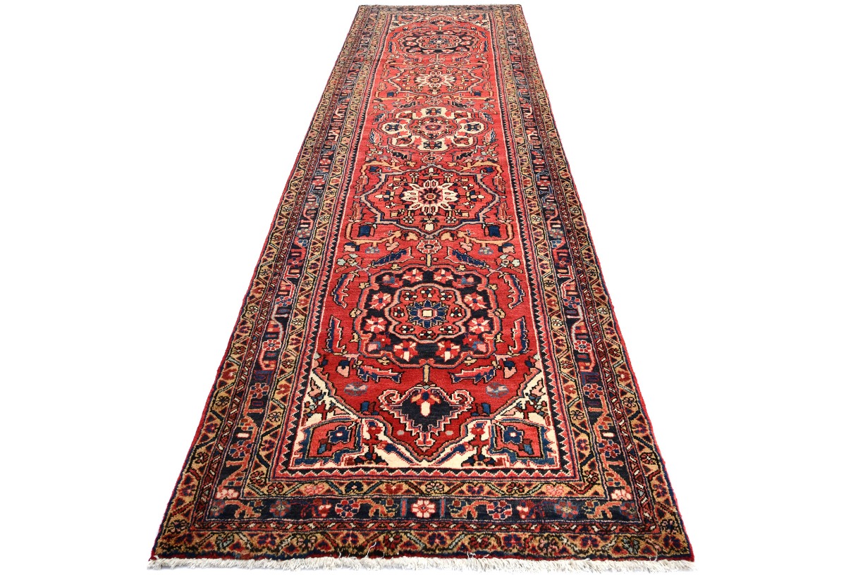Vintage Red Floral 3'6X11'9 Heriz Persian Runner Rug