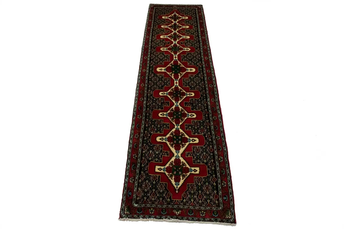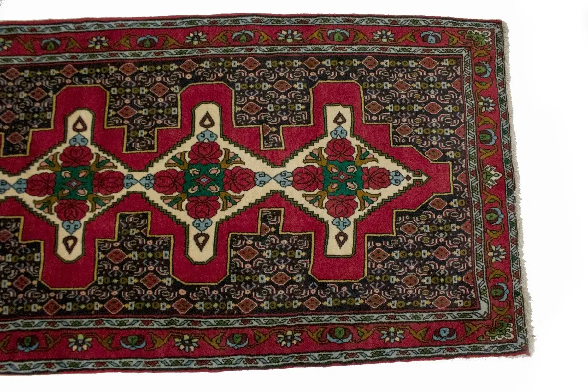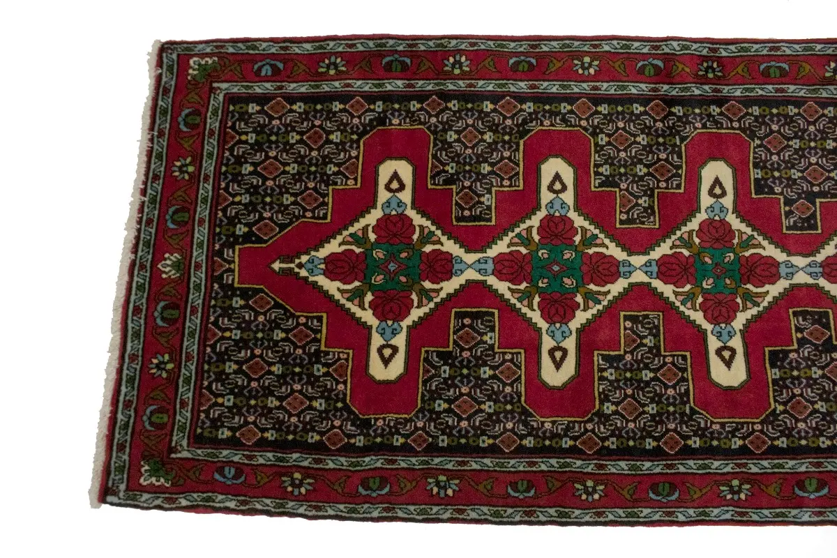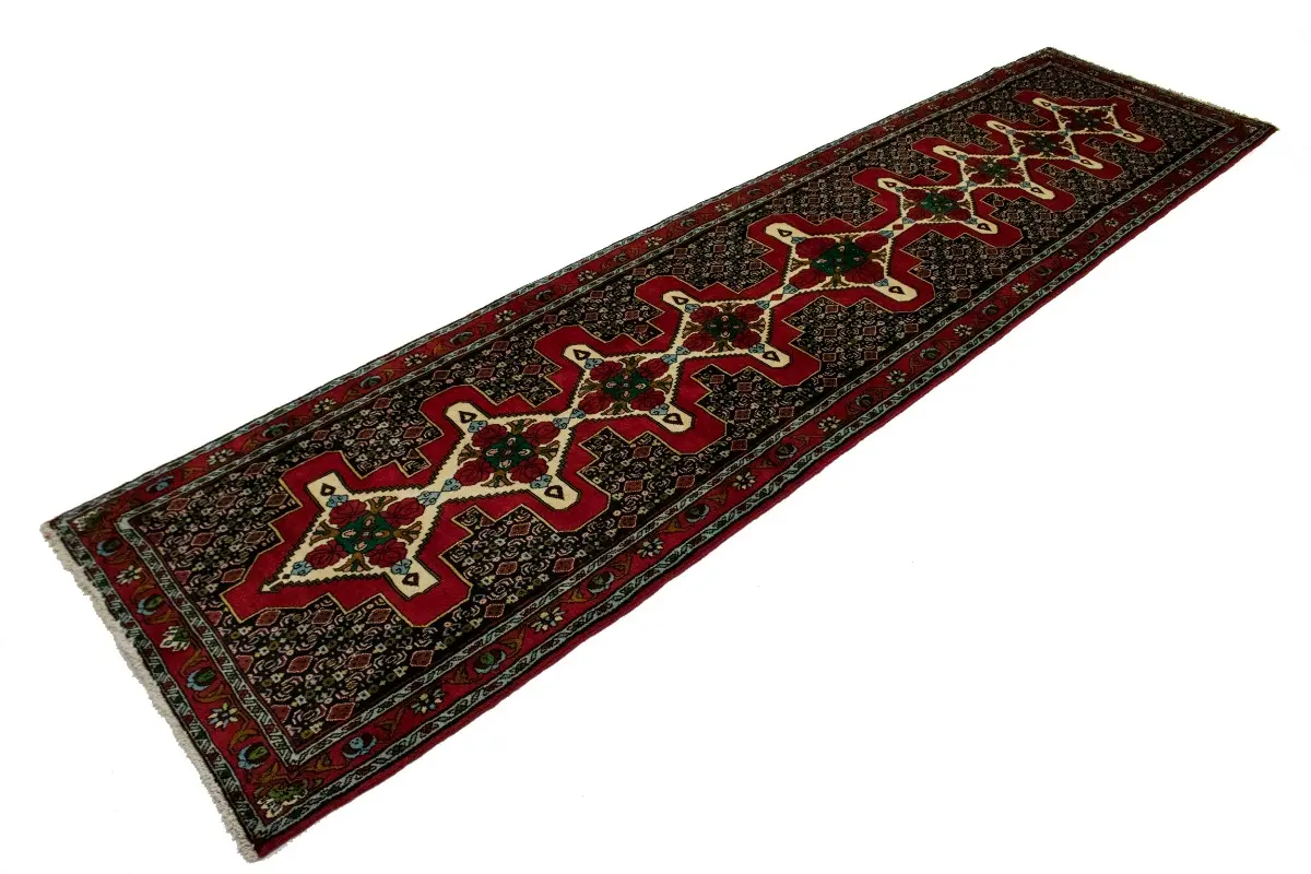 Handmade vintage Persian runner made with vegetable dyes (fine wool pile and cotton foundation), exceptional knot count, and appealing ancient designs. This Oriental runner never will go out of style and would be among your most valuable treasures.