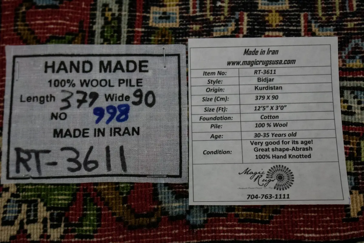 Vintage Red Floral 3X12'5 Bidjar Sanneh Persian Runner Rug