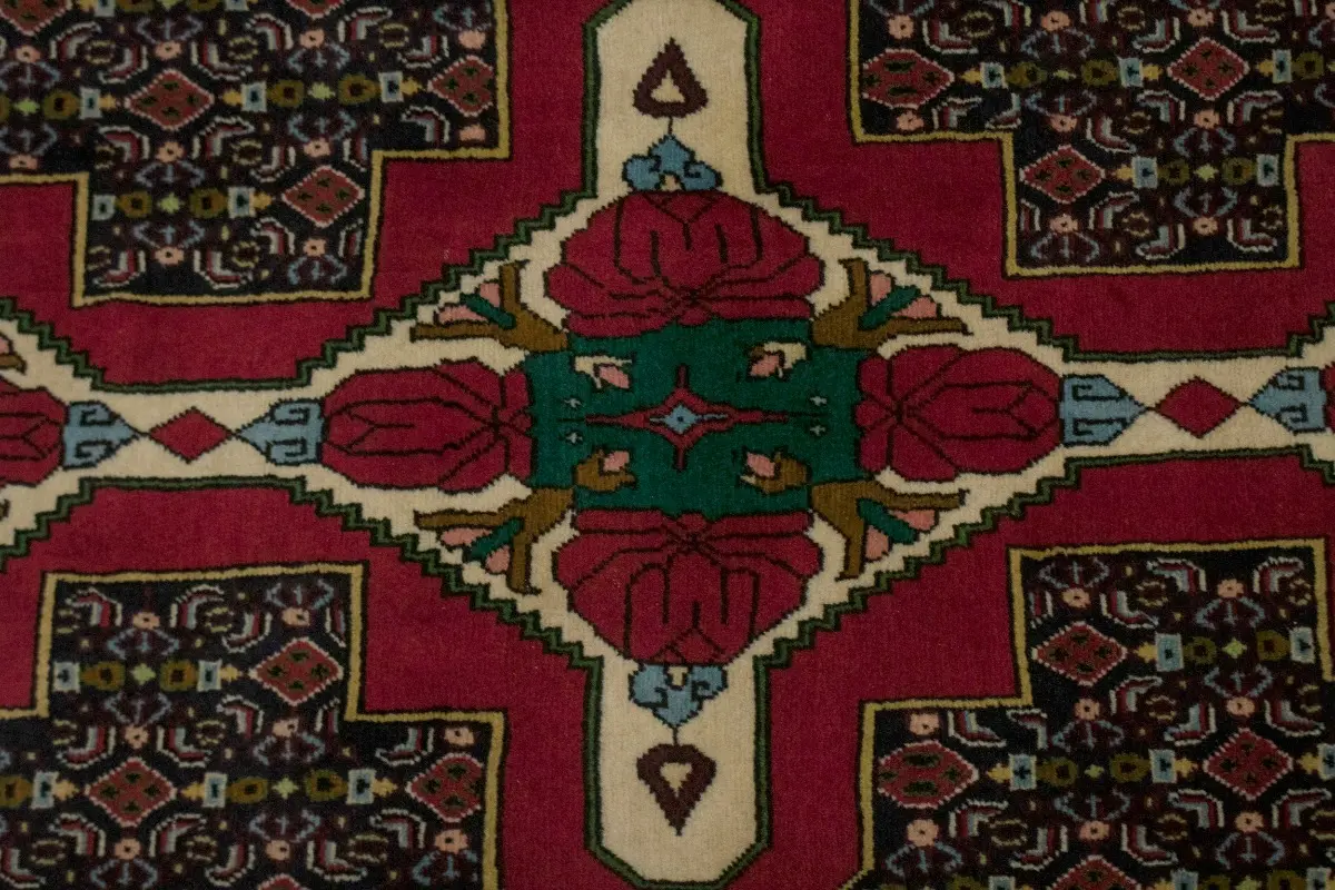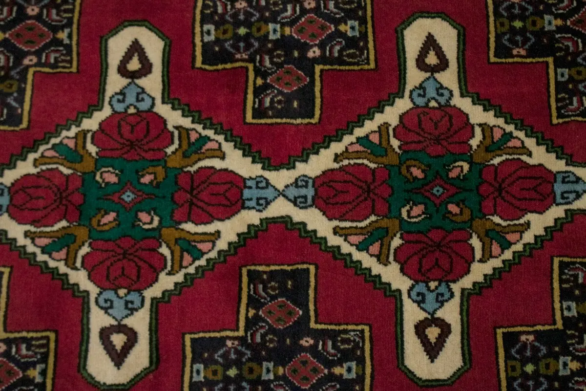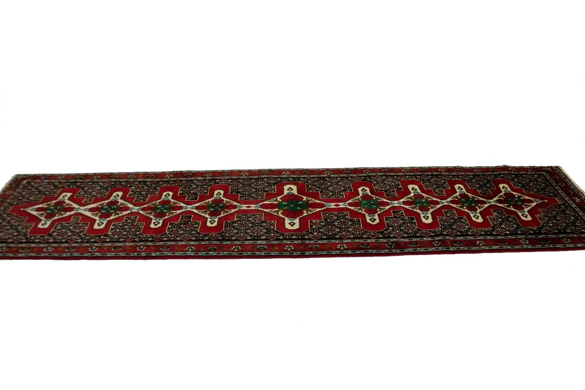 This authentic 3X12’5 vintage Persian runner was masterly knotted by the hands of weavers inspired by a variety of wonderful artistic designs, to recreate the aged look of the original piece with a richness of color and intricate patterned background field. What set this geometric Oriental area runner from the others are the material and dye used (wool pile and cotton foundation), knot count, antique designs, fantastic grades, and its regional historical connection: it has deep roots, from the story of the people who produced it to the meaning of the symbols and colors displayed across its canvas that have been praised for centuries. This home décor carpet will be completely cozy and inviting that never will go out of style! Also, this Oriental runner would be among your most valuable treasures, it is a great investment that accrues value over time, and it will last for generations because was woven with high-quality, all-natural wool; it won’t rip, tear, or shed. Environmentally friendly, opulent yet affordable; this Persian rug will give you a thorough amount of character to help define your living space with luxury and warmth that will capture the eyes and attention of your audience (homeowners, designers, decorators, family and friends). RT-3611