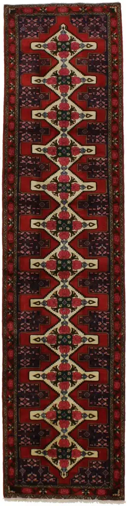 Handmade vintage Persian runner made with vegetable dyes (fine wool pile and cotton foundation), superior knot count, and alluring ancient designs. This Oriental runner never will go out of style and would be among your most valuable treasures.