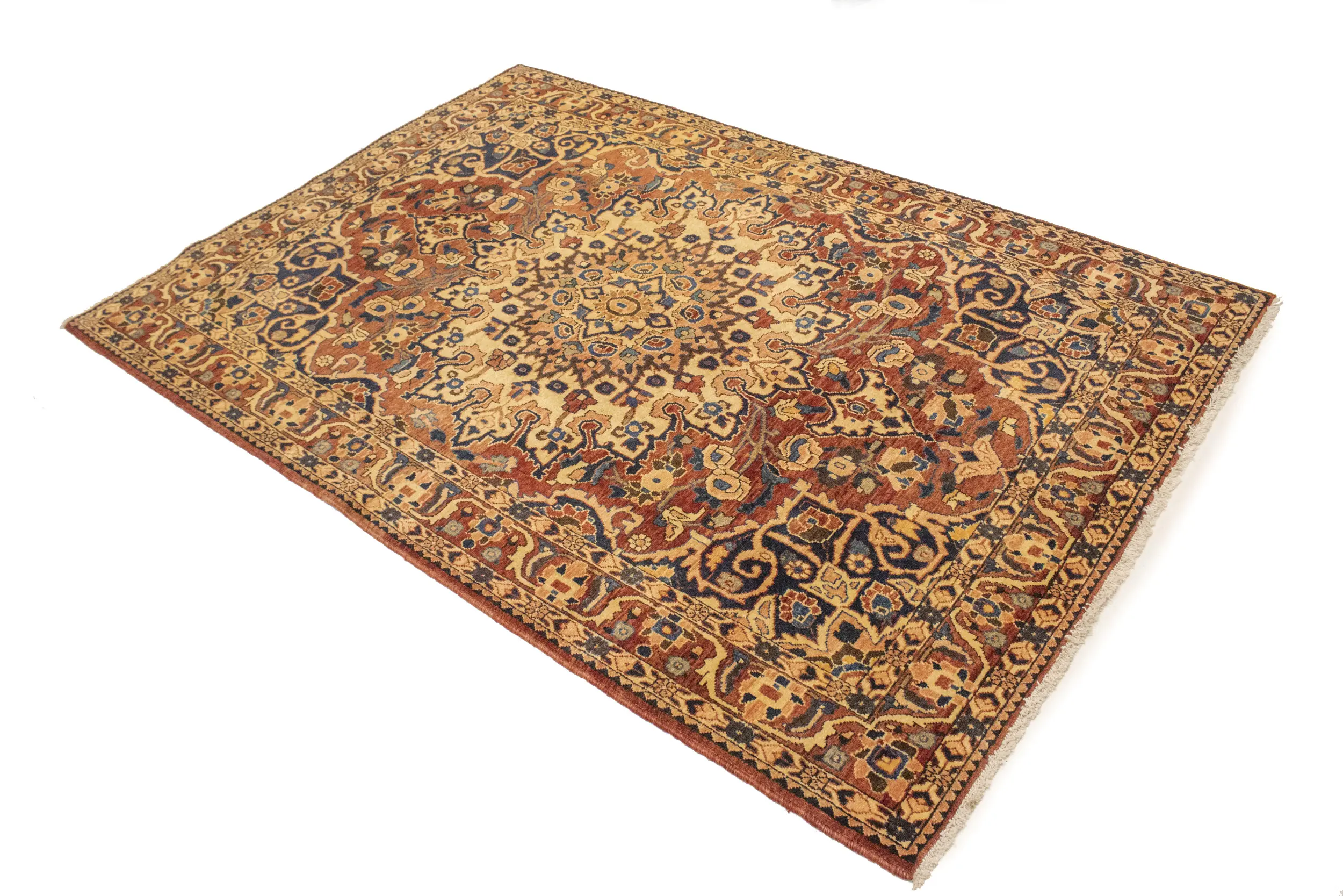 Handmade vintage 5X7 red Persian rug made with vegetable dyes (fine wool pile and cotton foundation), superior knot count, and alluring ancient designs. This Oriental rug never will go out of style and would be among your most valuable treasures.