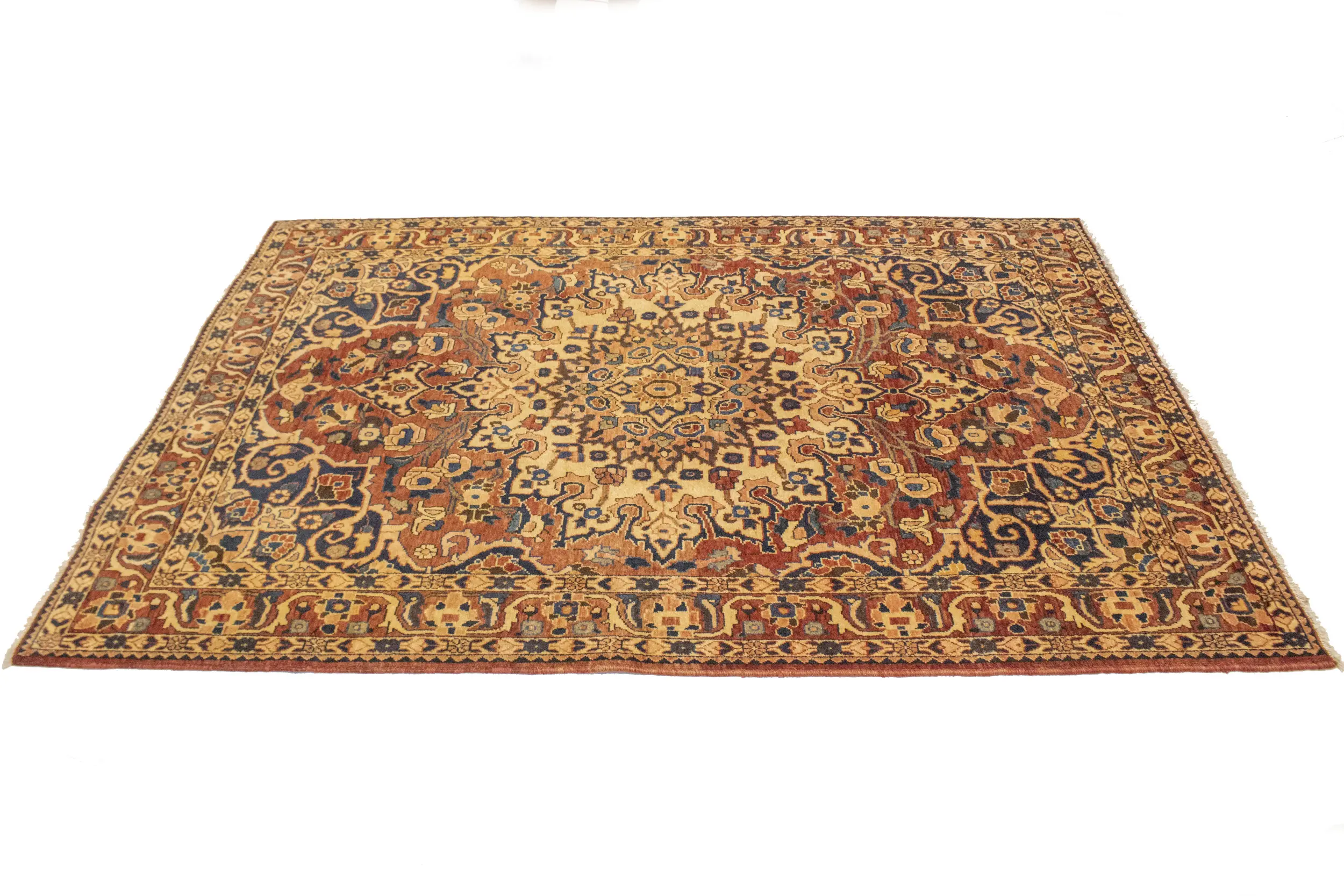 Handmade vintage 5X7 red Persian rug made with vegetable dyes (fine wool pile and cotton foundation), superior knot count, and alluring ancient designs. This Oriental rug never will go out of style and would be among your most valuable treasures.