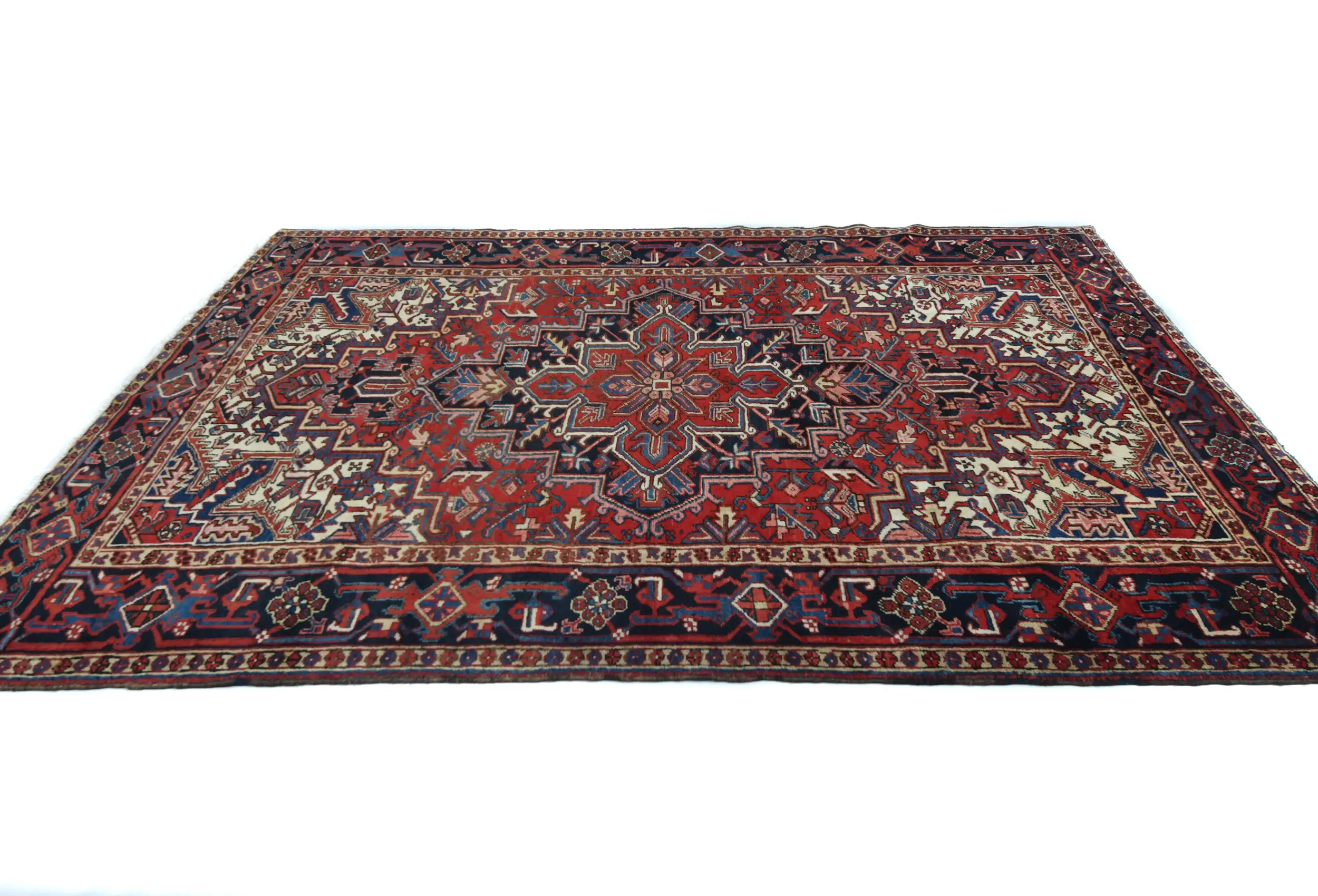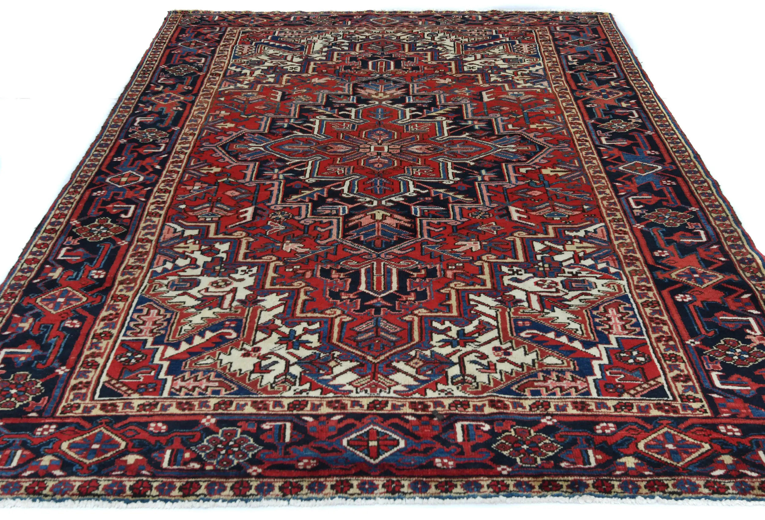 Vintage Red Floral 7X9 Heriz Persian Rug
