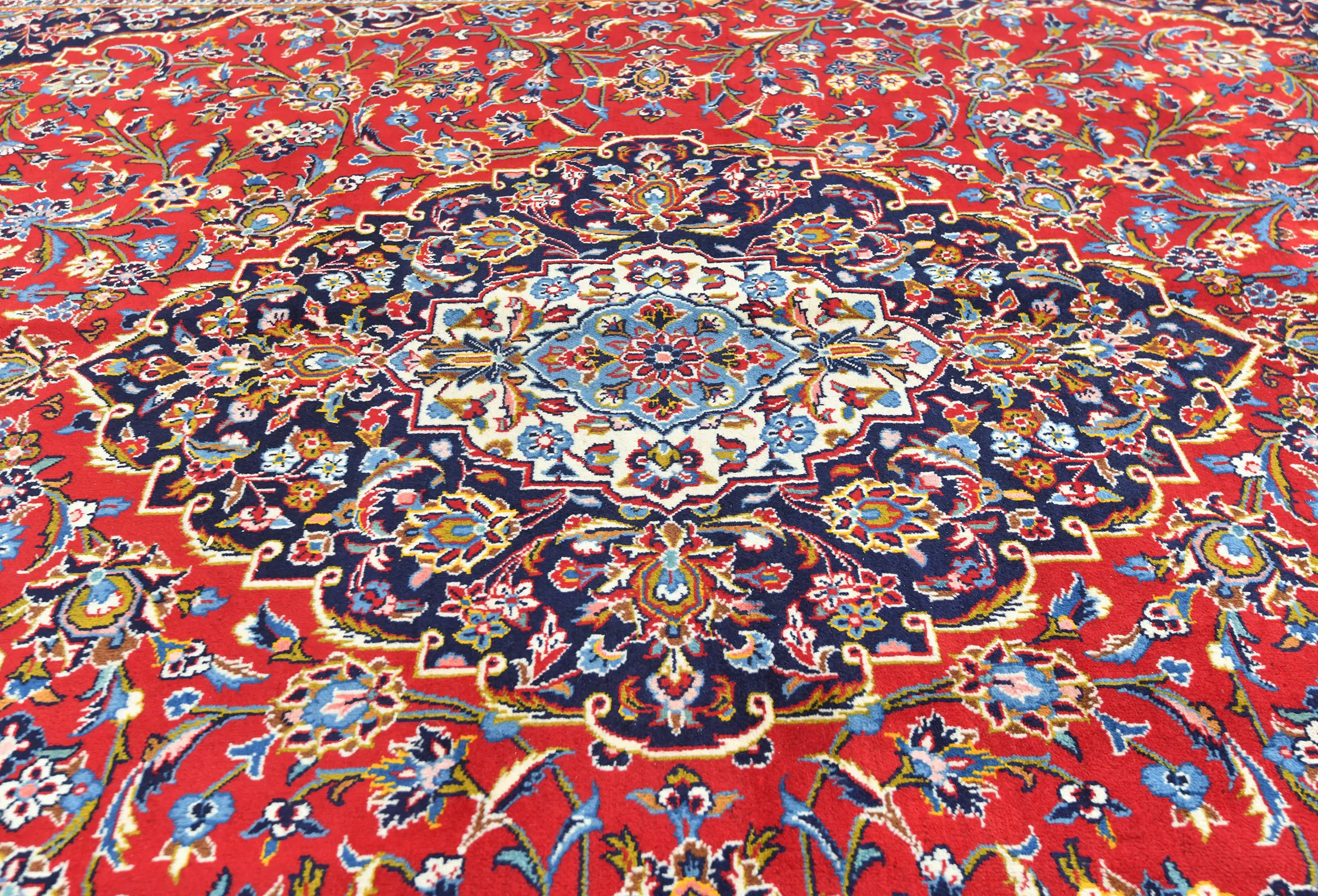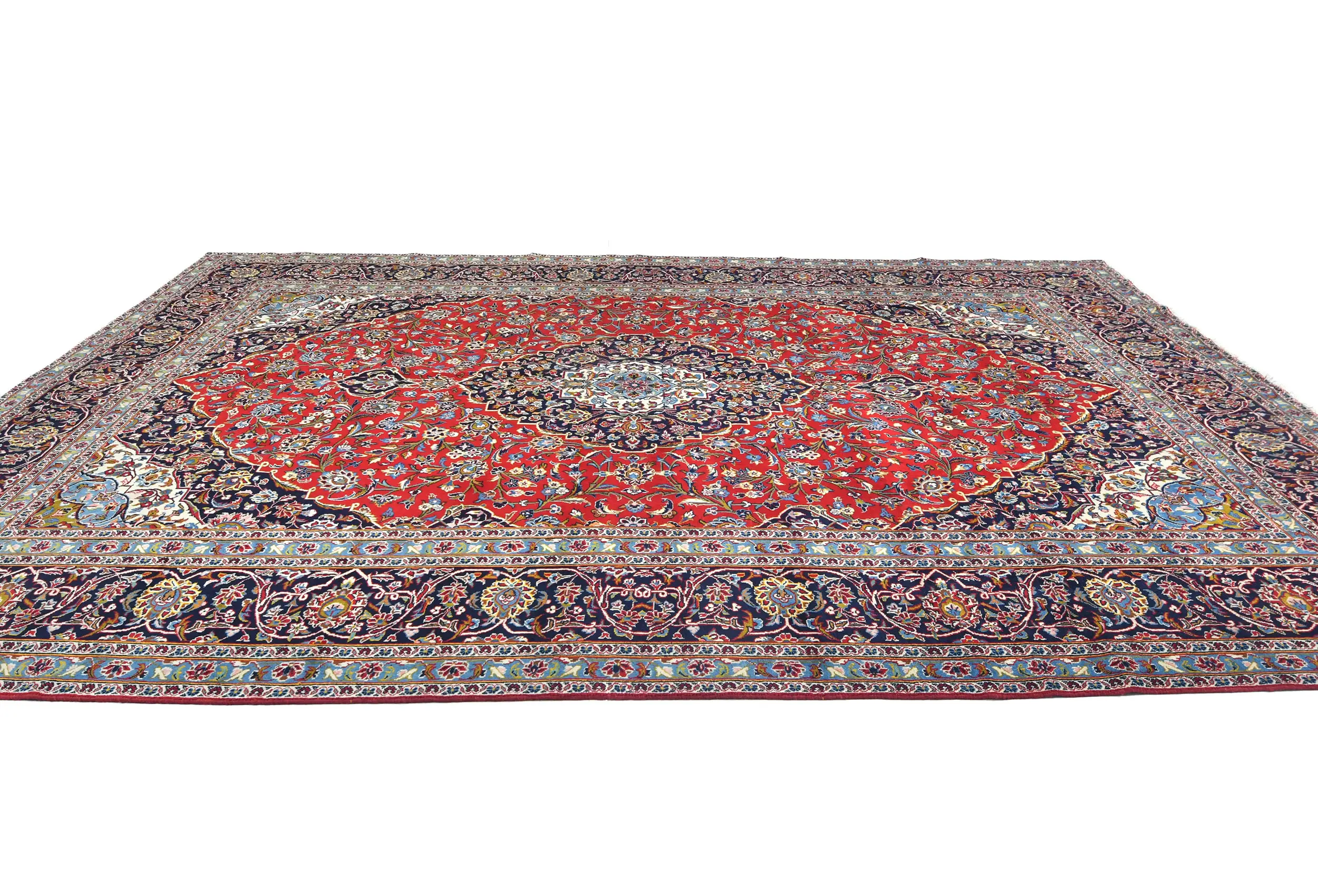 Vintage Red Floral Traditional 10X13 Kashan Persian Rug