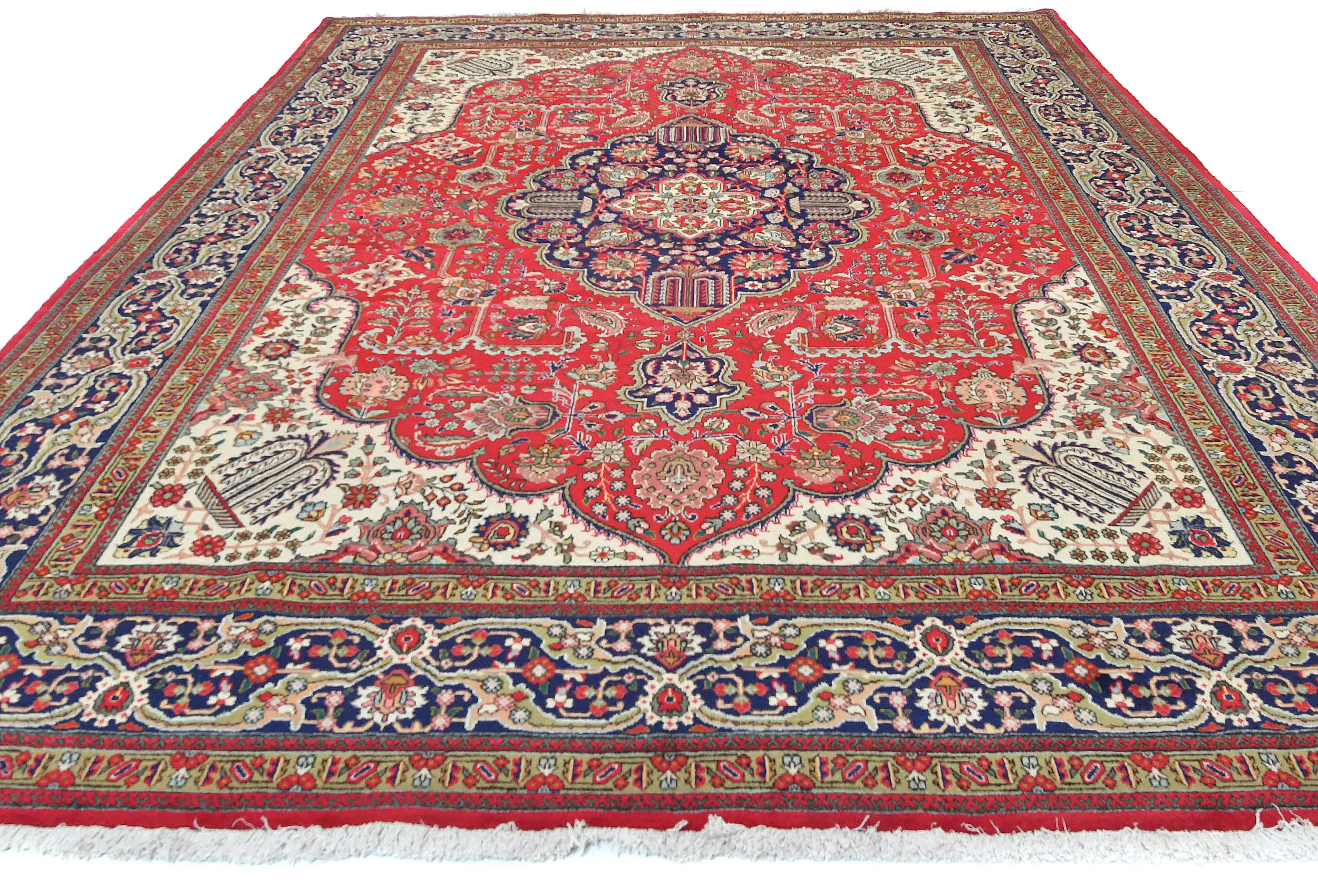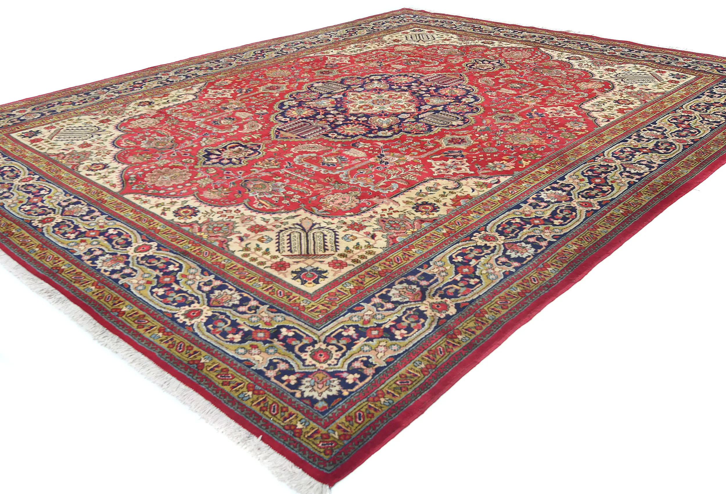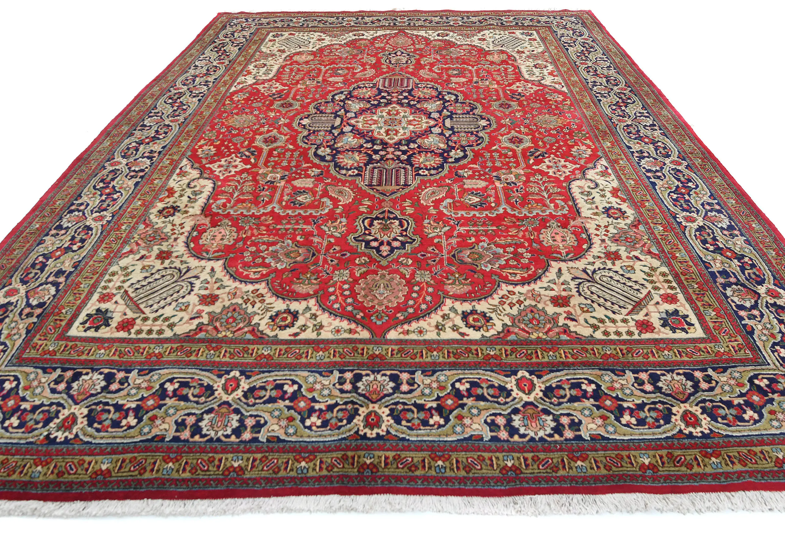 Vintage Red Floral Traditional 10X13 Tabriz Persian Rug