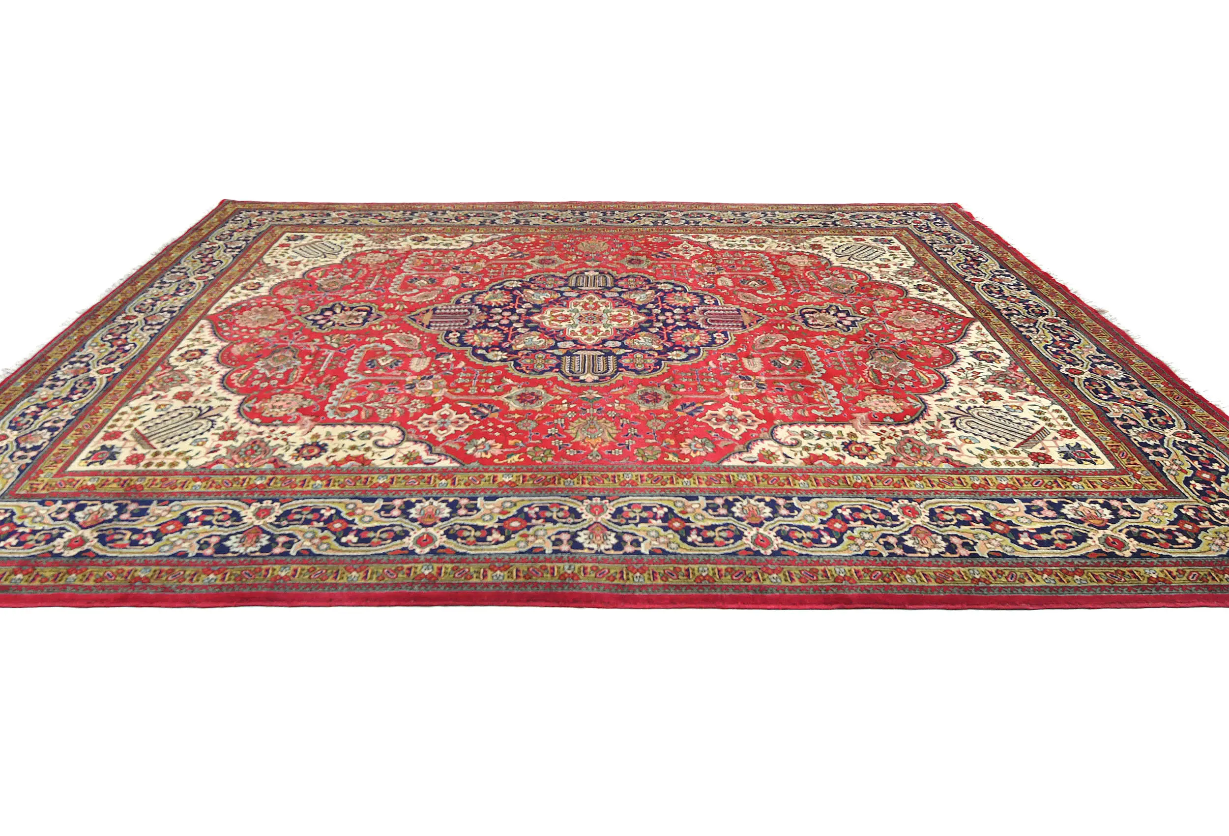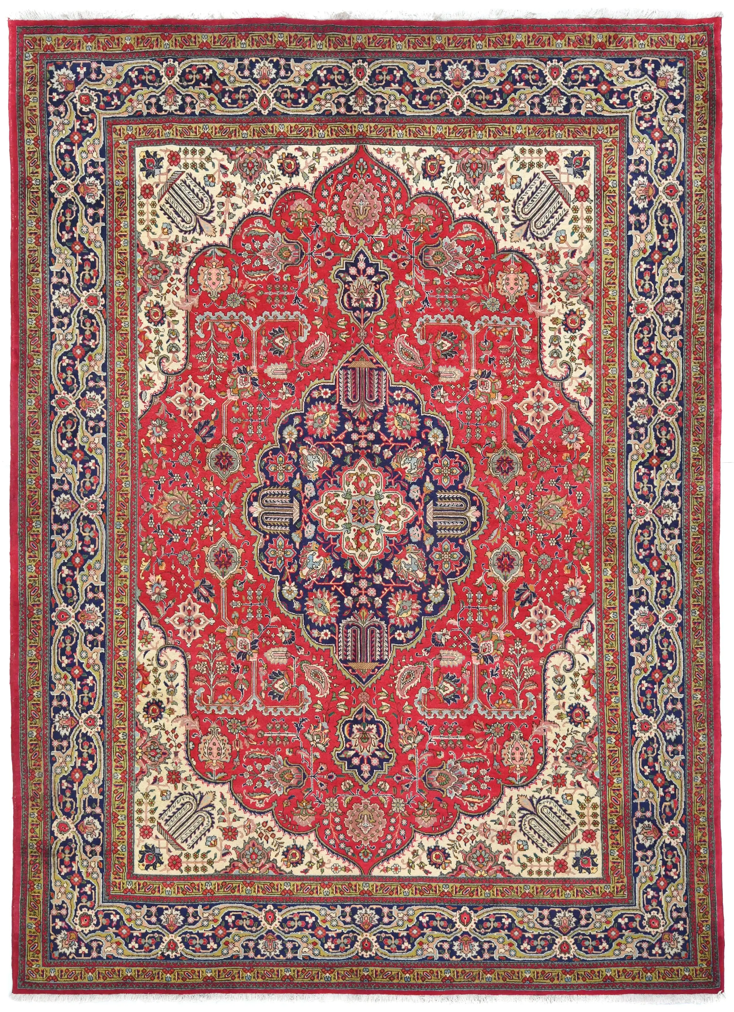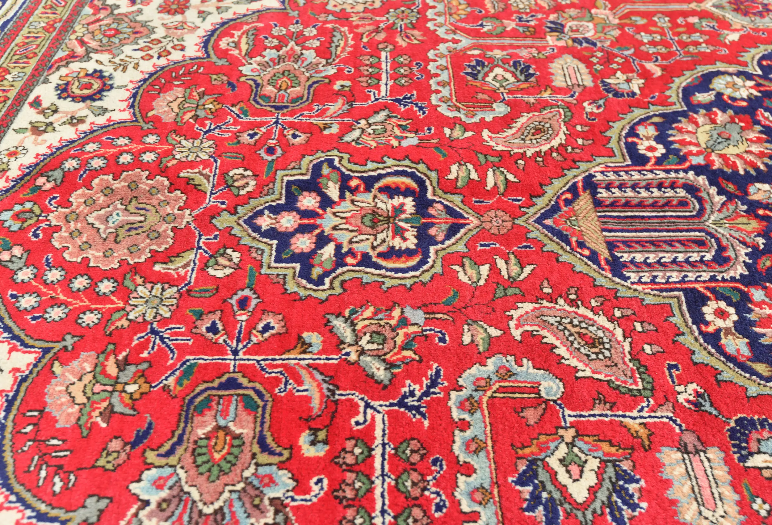 Vintage Red Floral Traditional 10X13 Tabriz Persian Rug