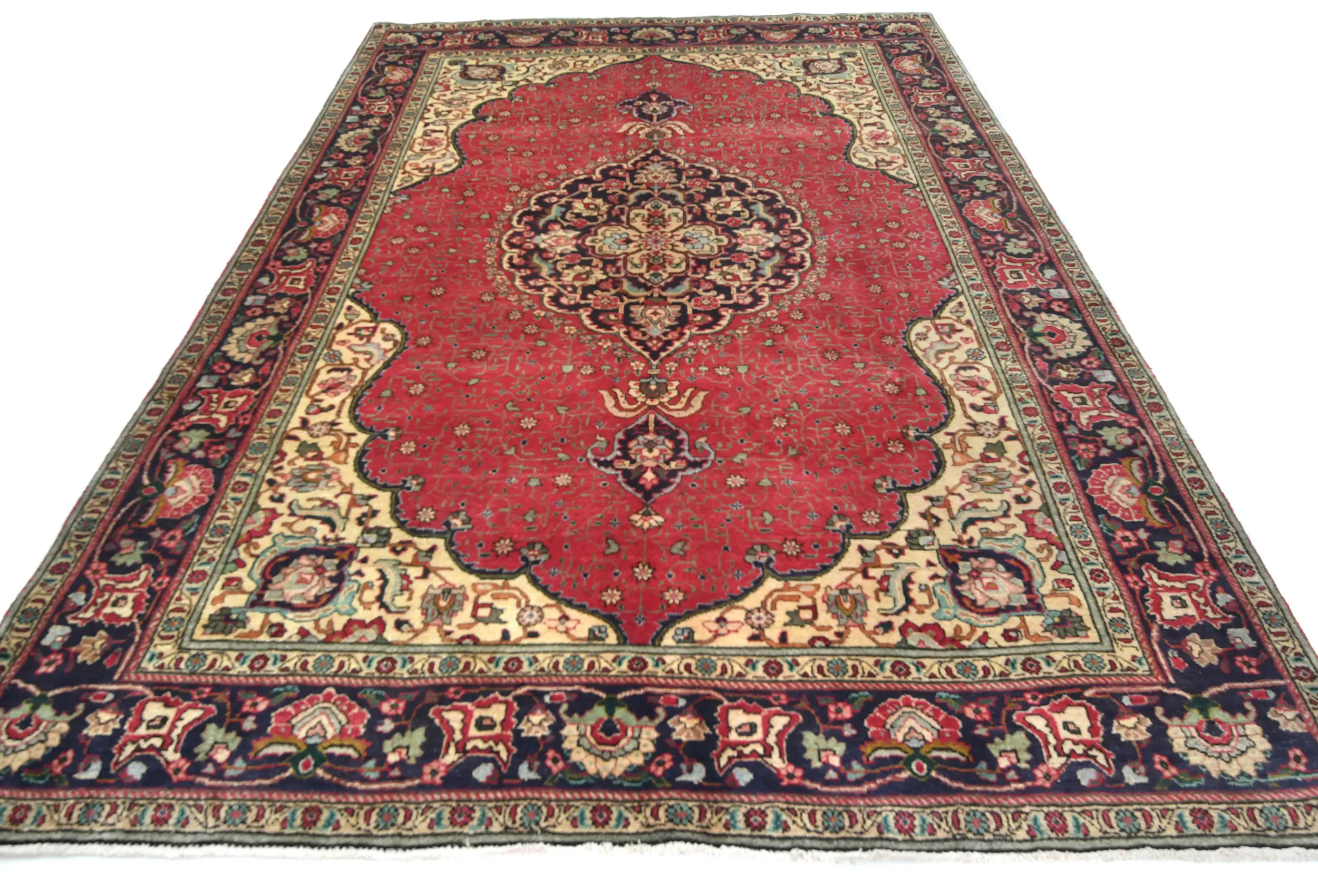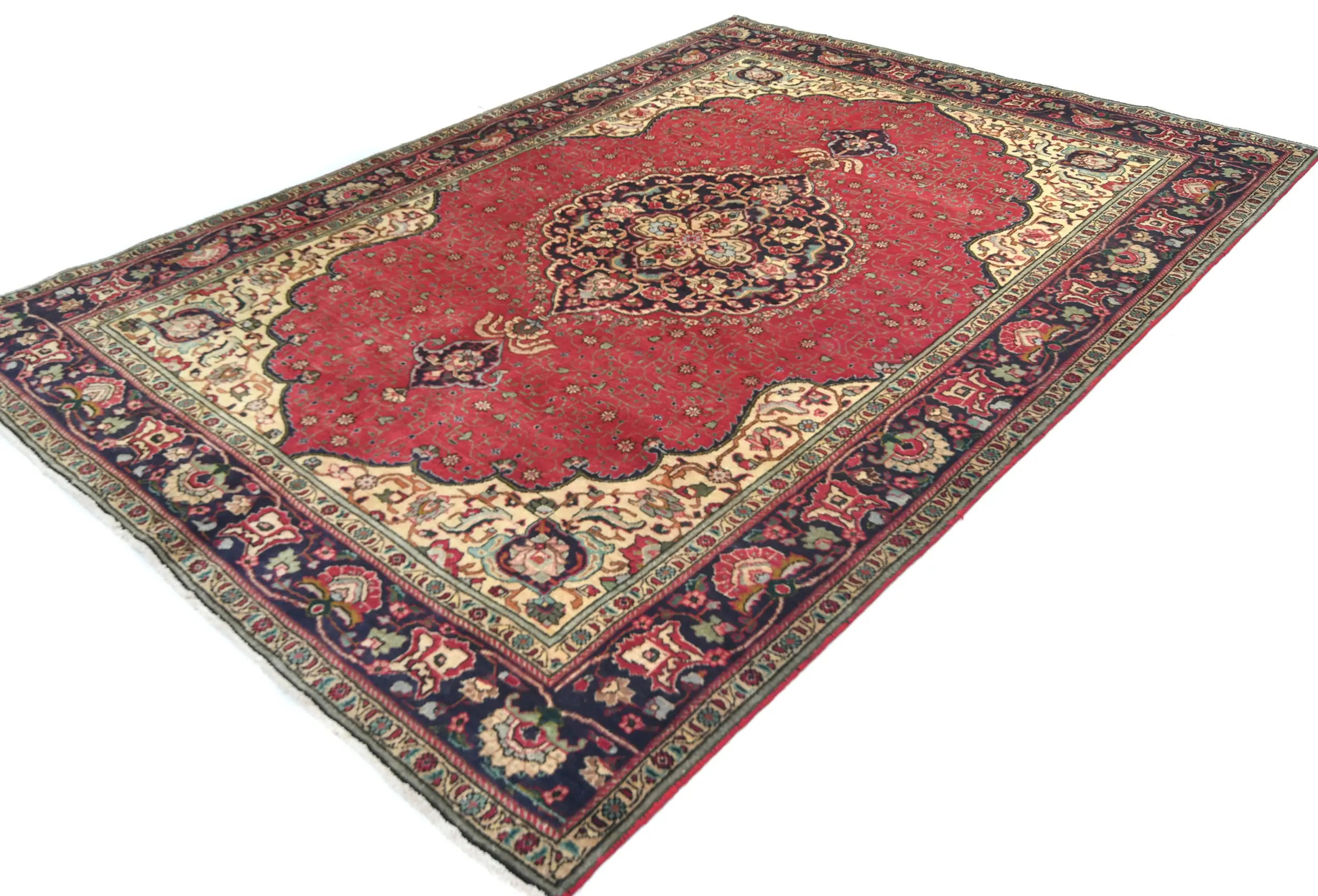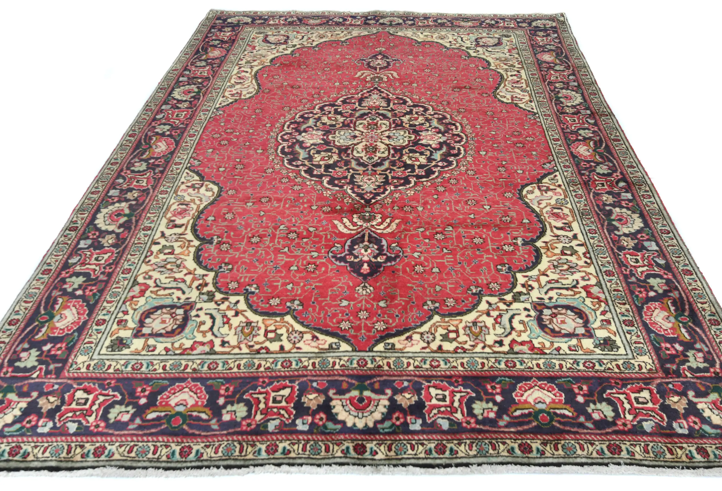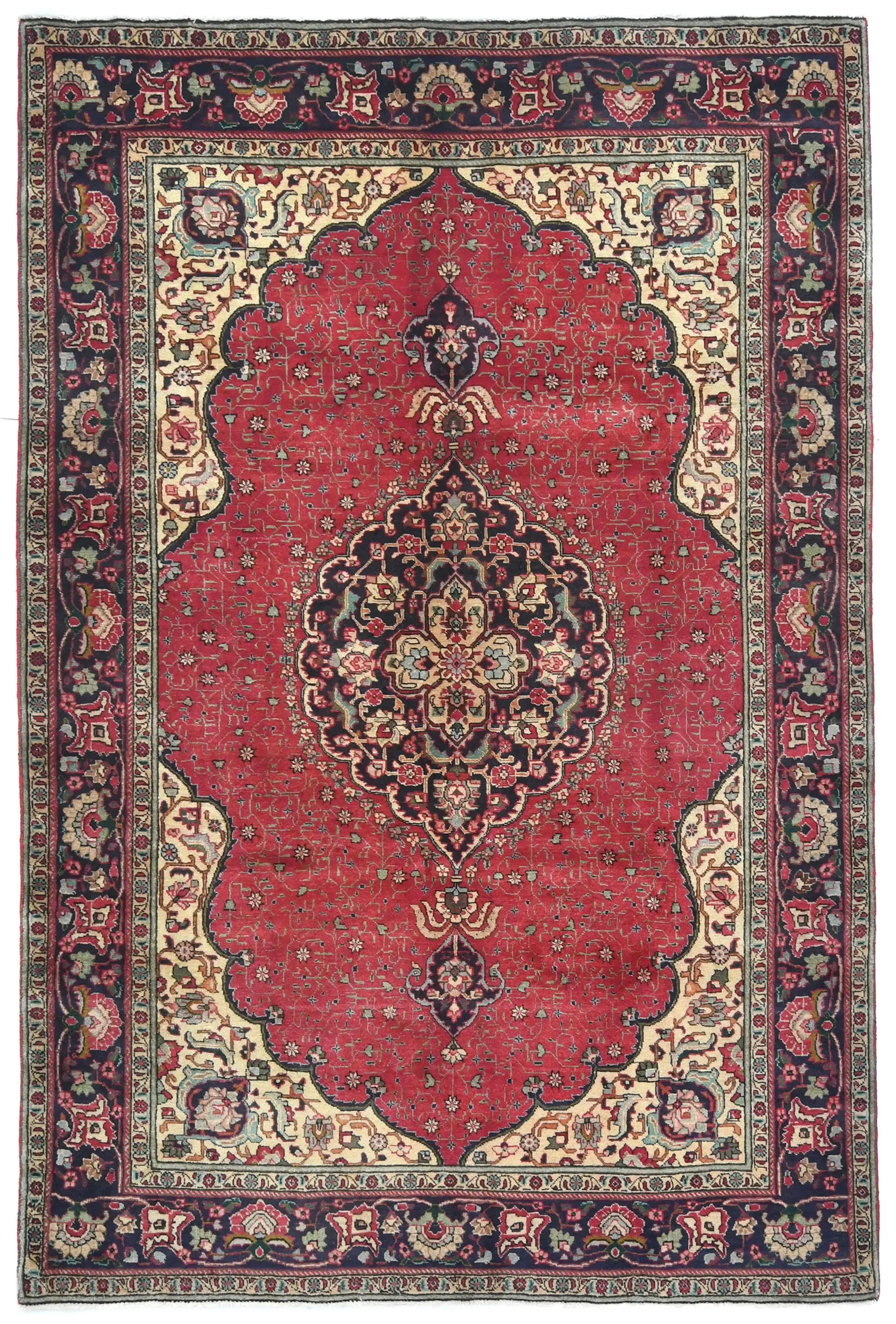 Vintage Red Floral Traditional 6'5X9'4 Tabriz Persian Rug