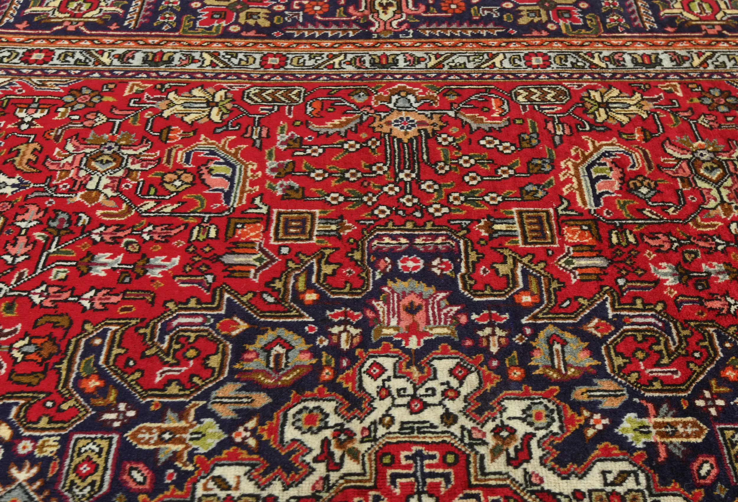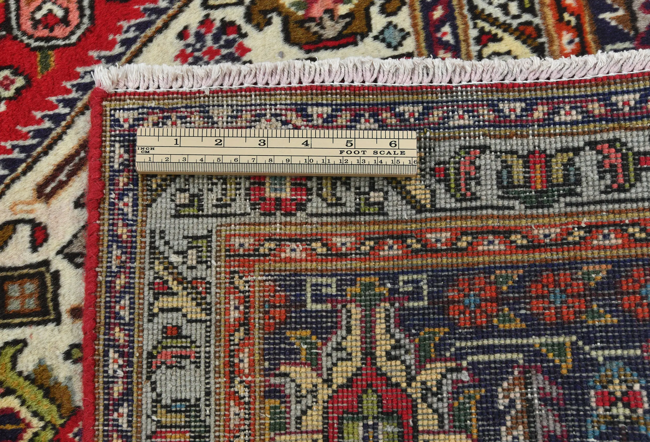 Handmade vintage 7X10 red traditional Persian rug made with vegetable dyes (fine wool pile and cotton foundation), exceptional knot count, and appealing ancient designs. This Oriental rug never will go out of style and would be among your most valuable treasures.