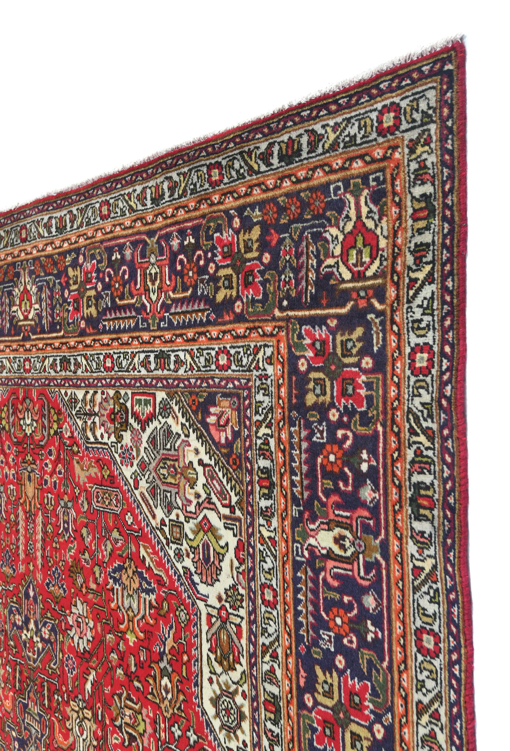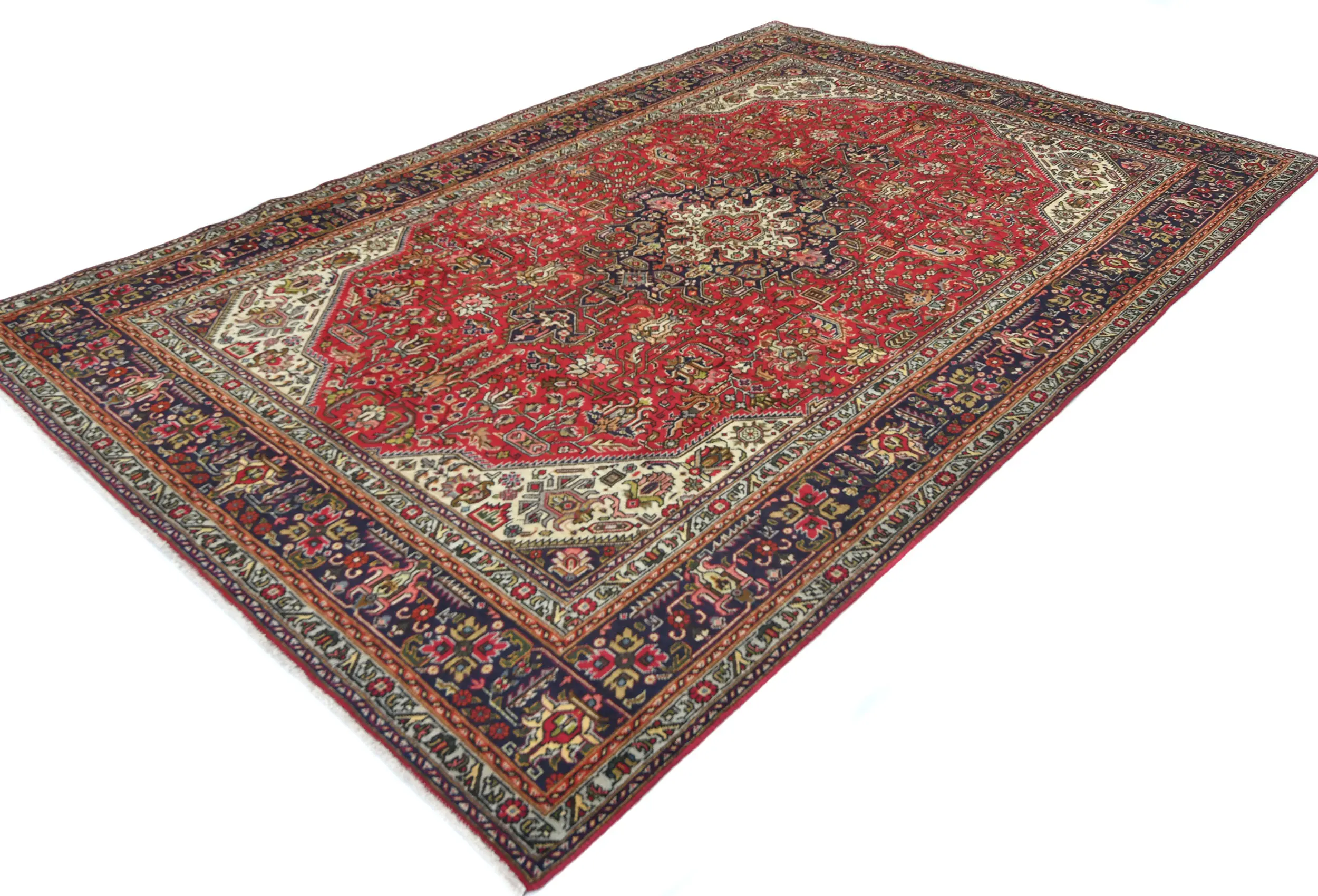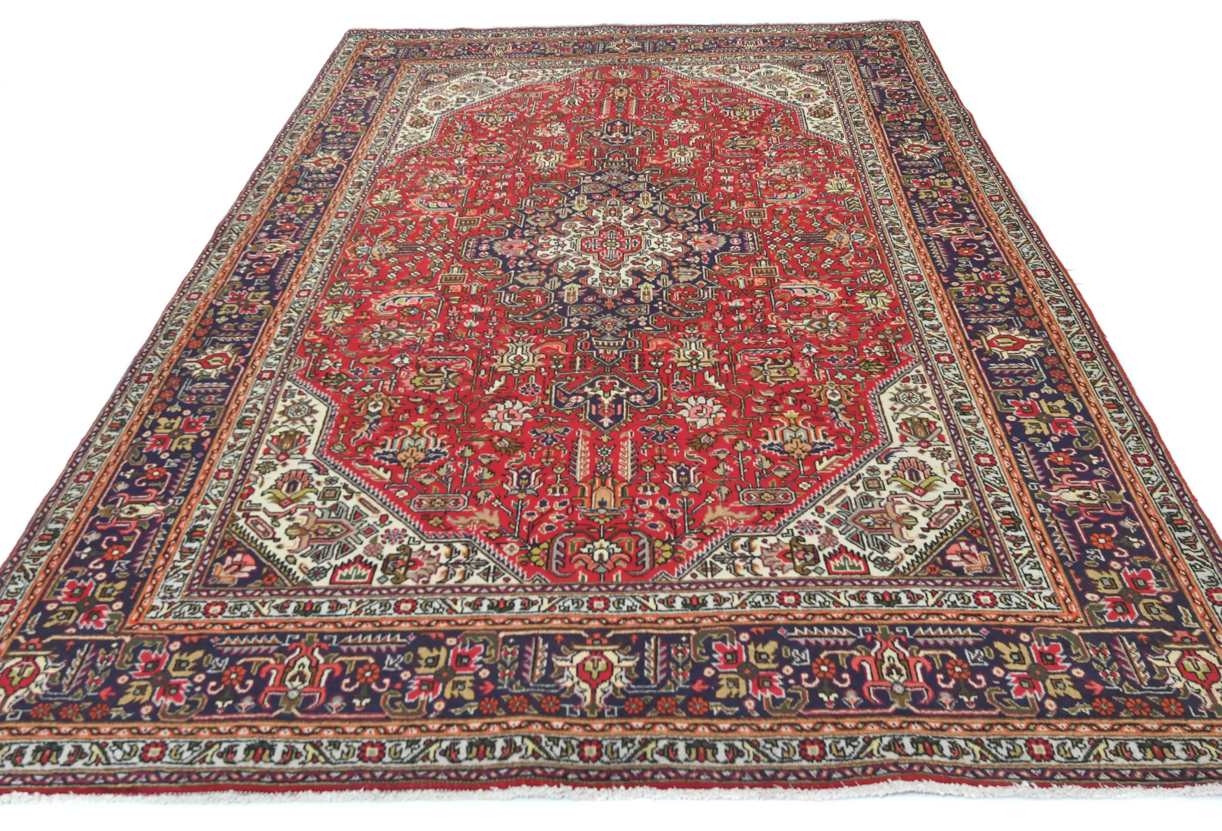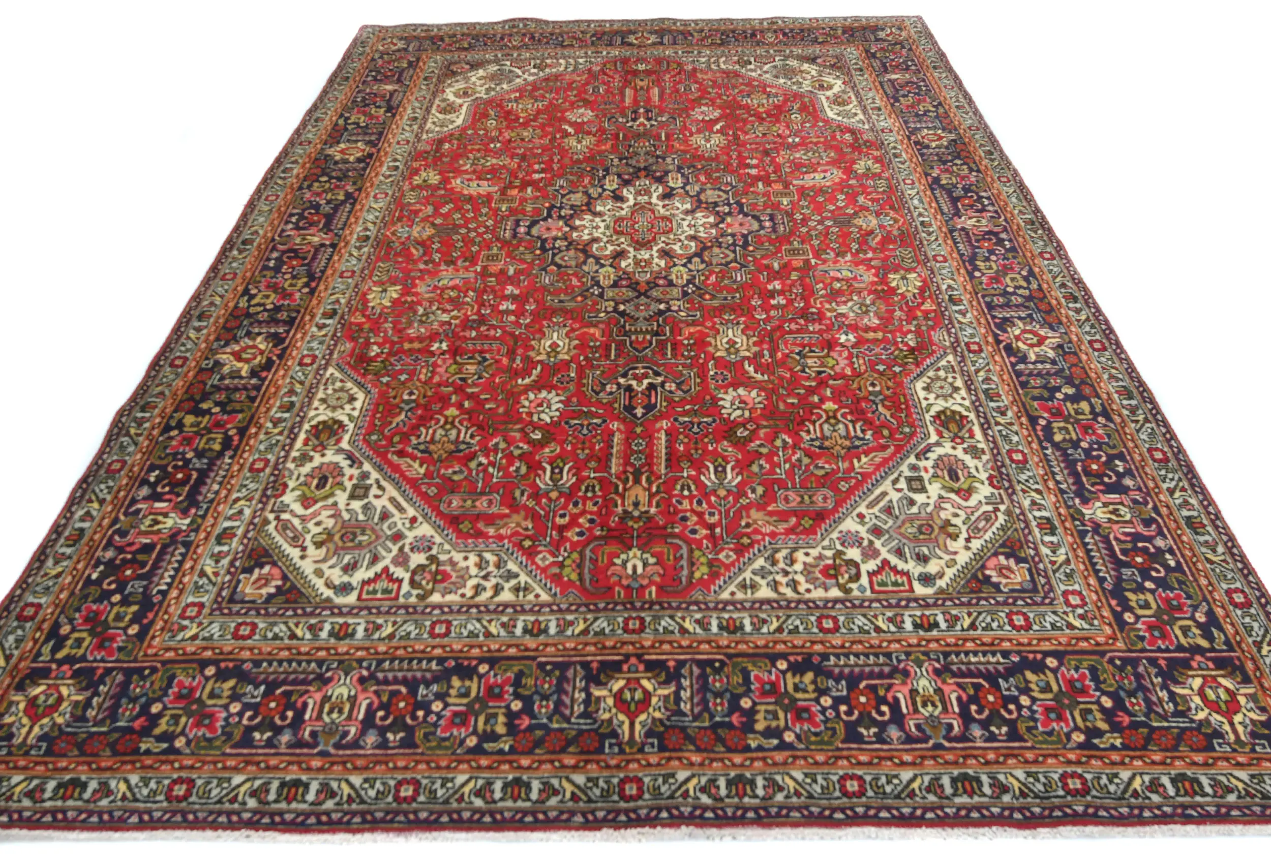 Vintage Red Floral Traditional 7X10 Tabriz Persian Rug