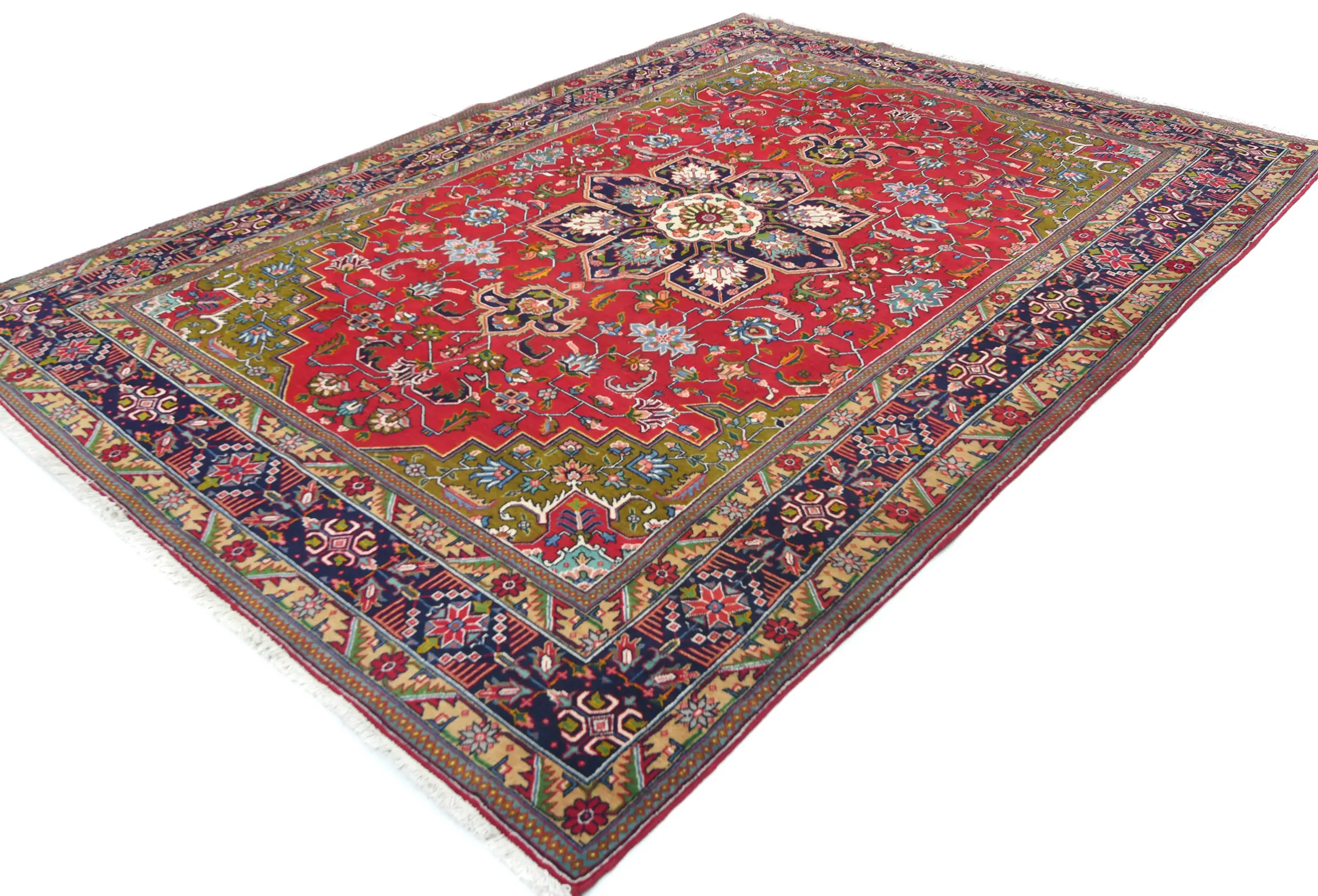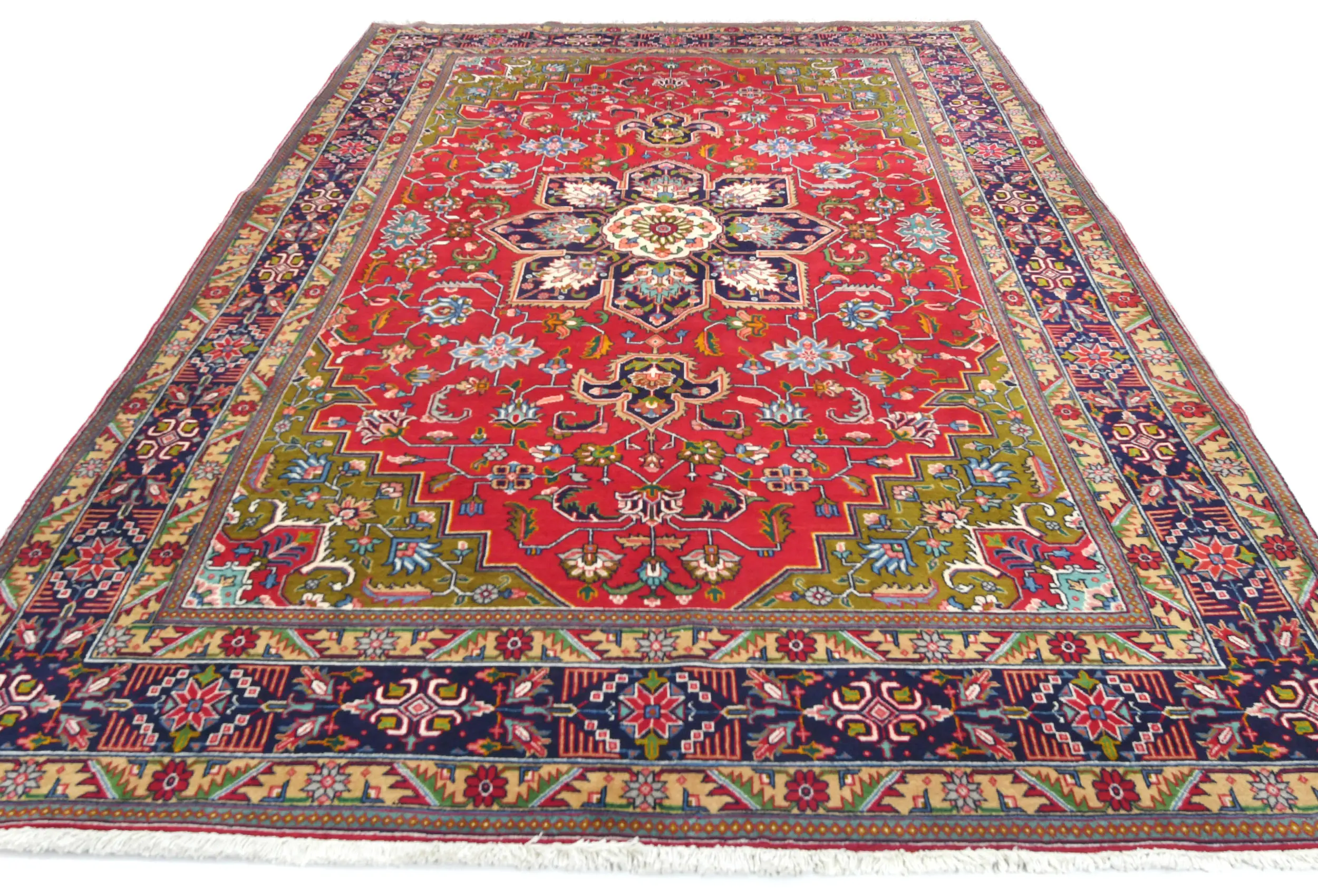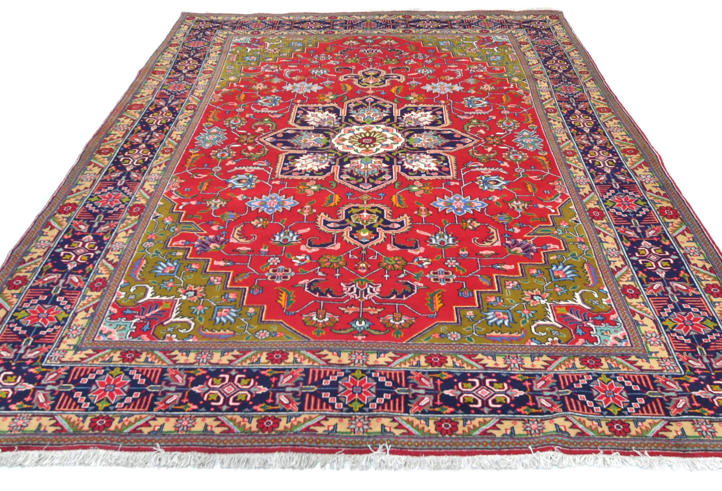 Vintage Red Floral Traditional 7X10 Tabriz Persian Rug