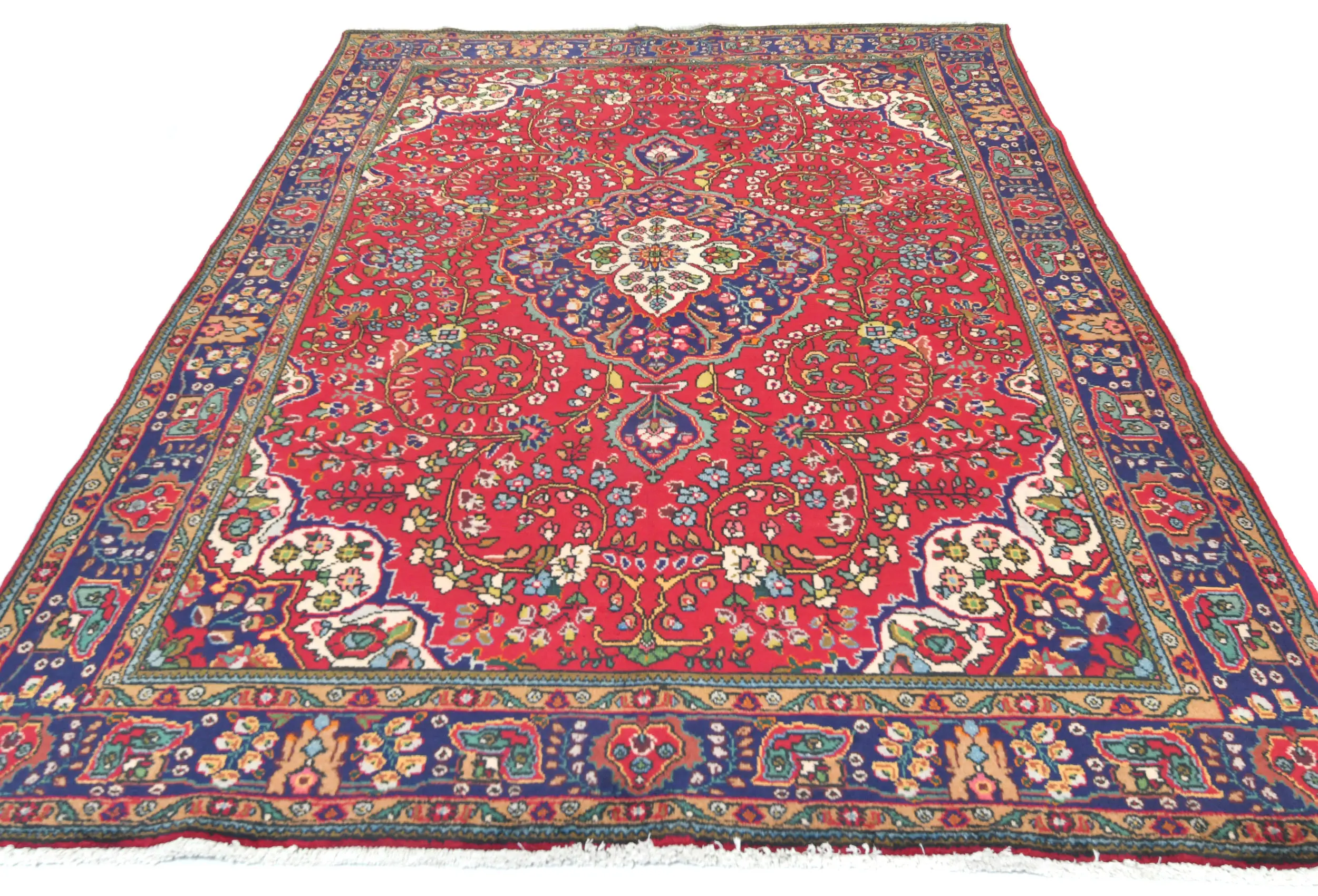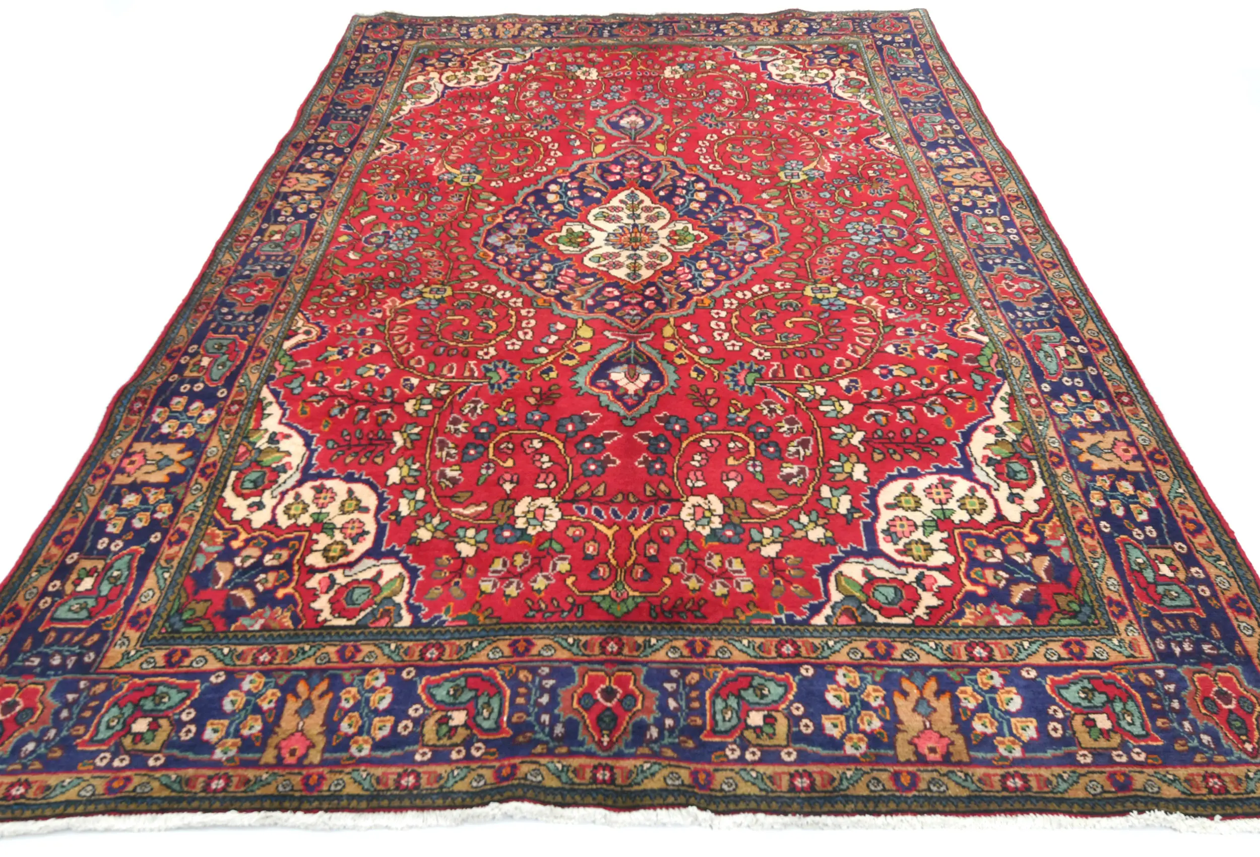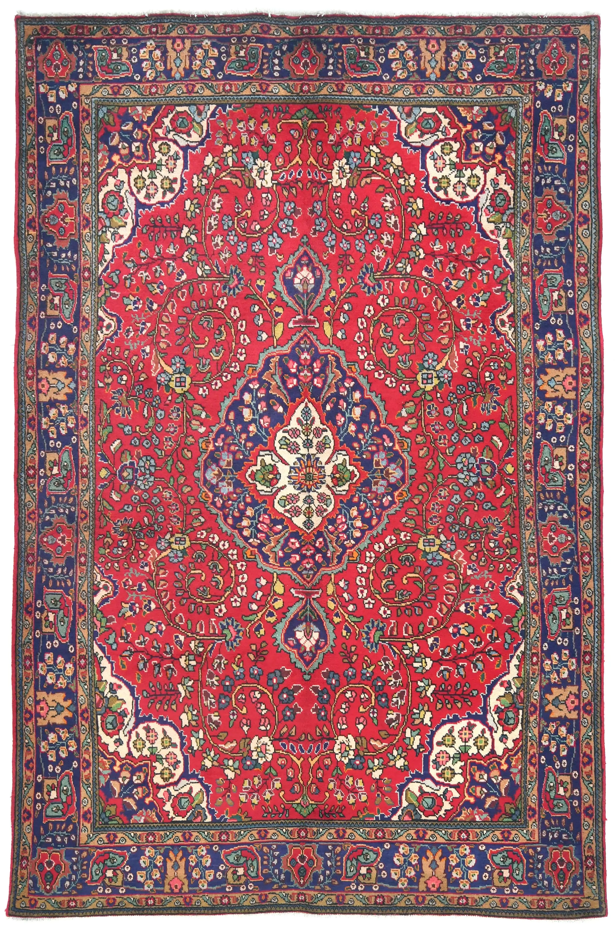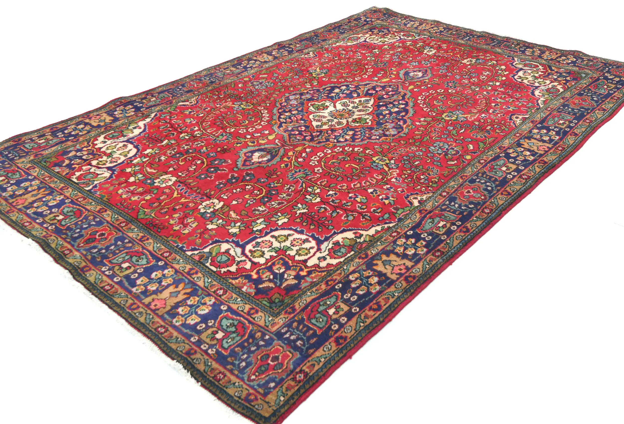 Vintage Red Floral Traditional 7X10 Tabriz Persian Rug