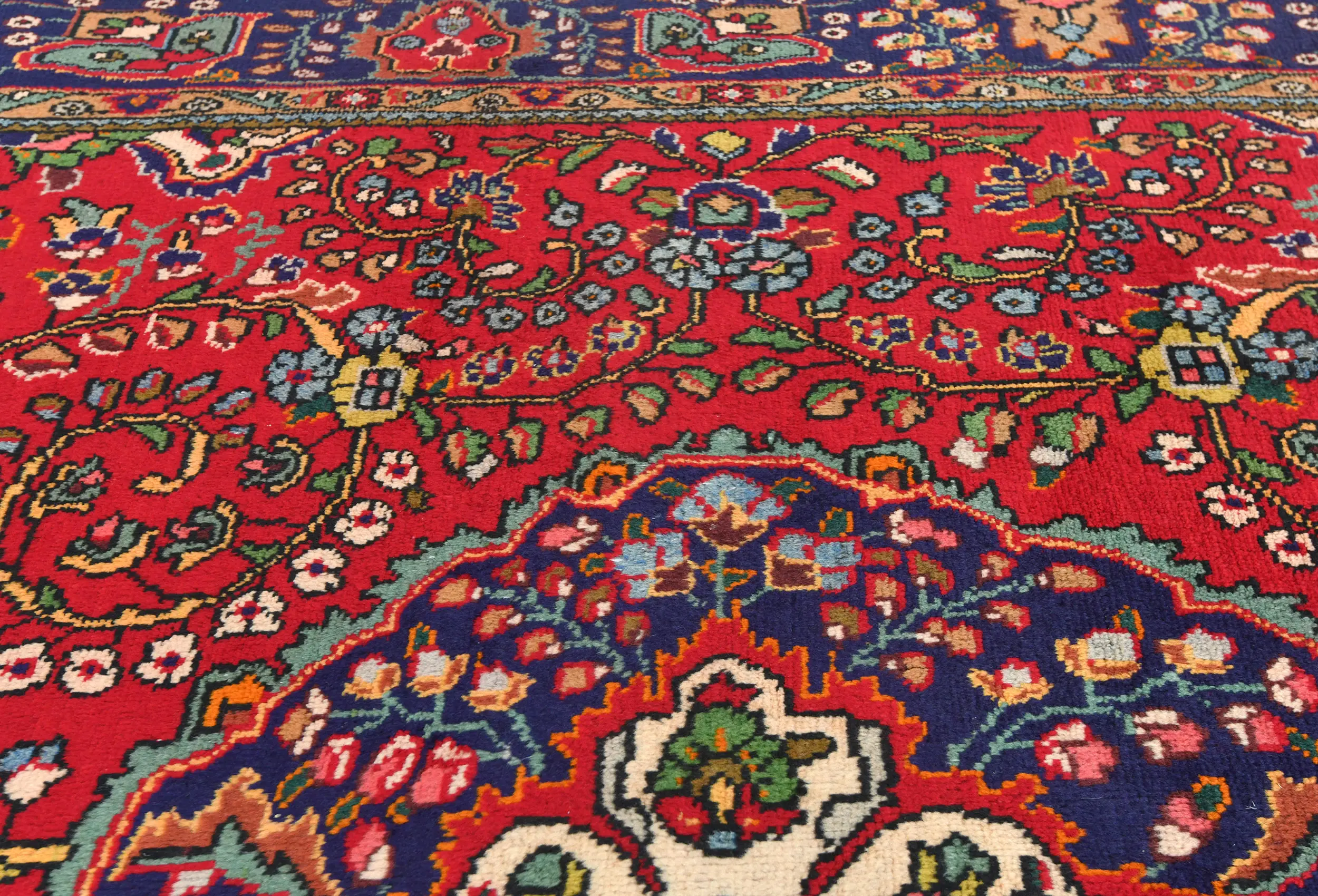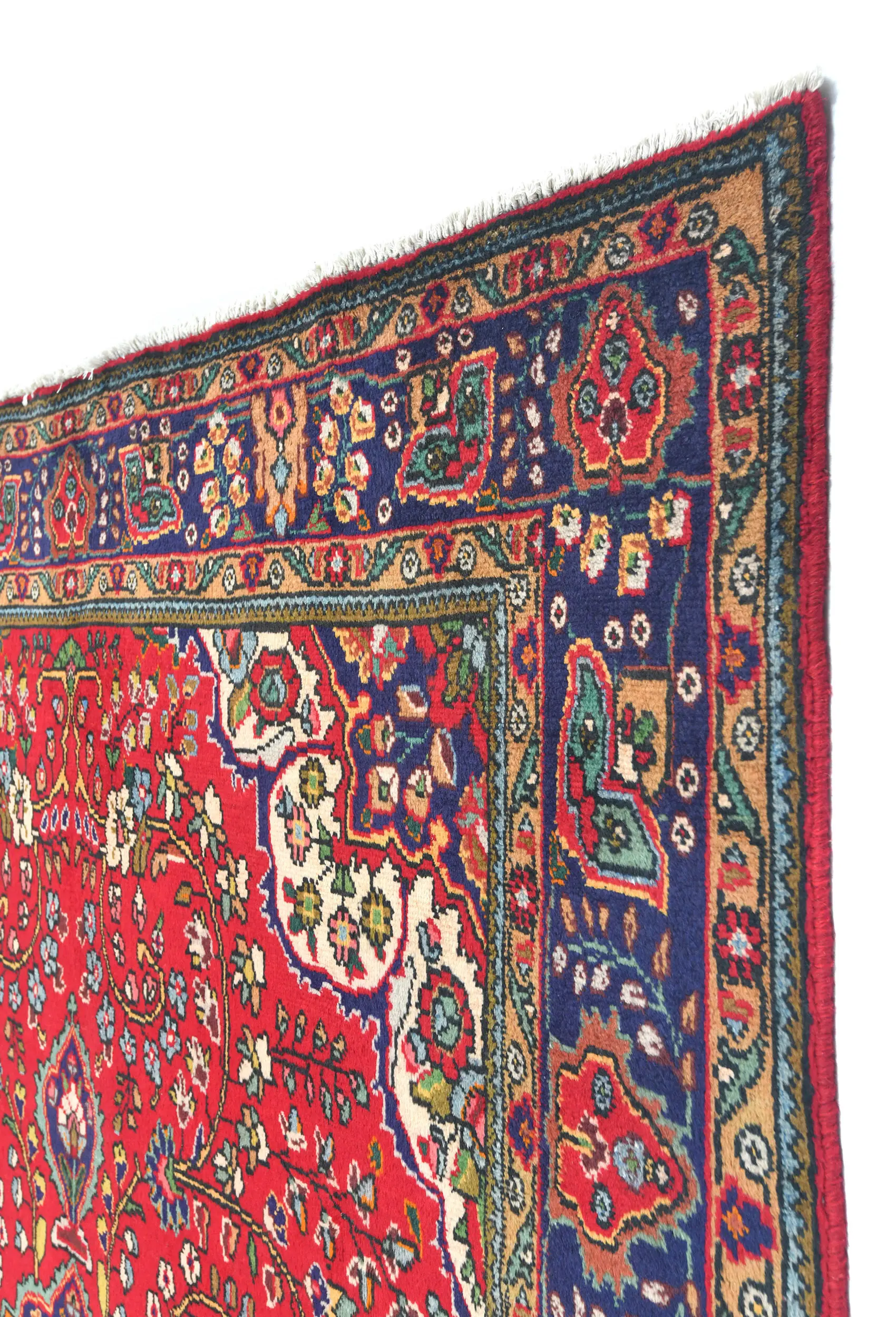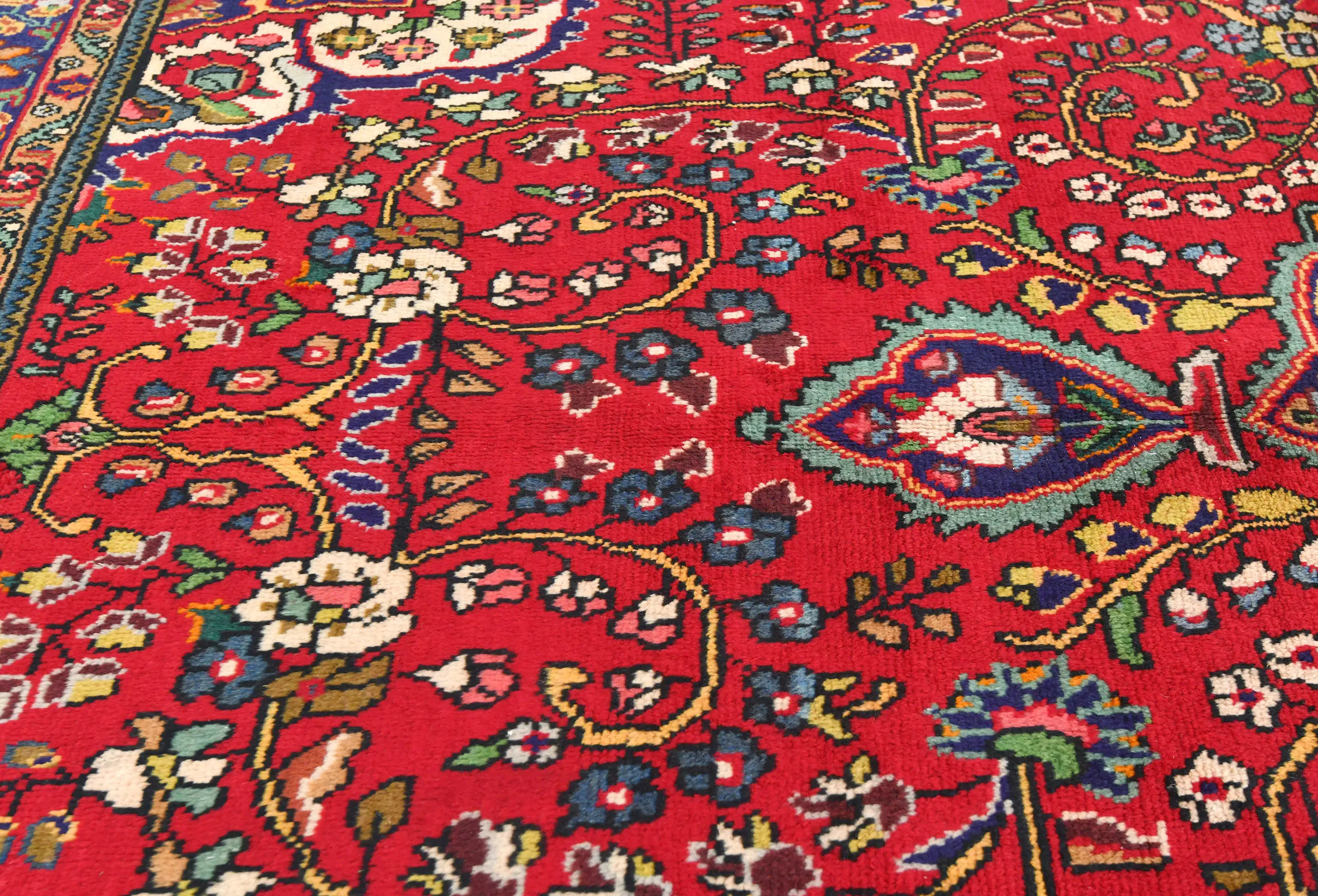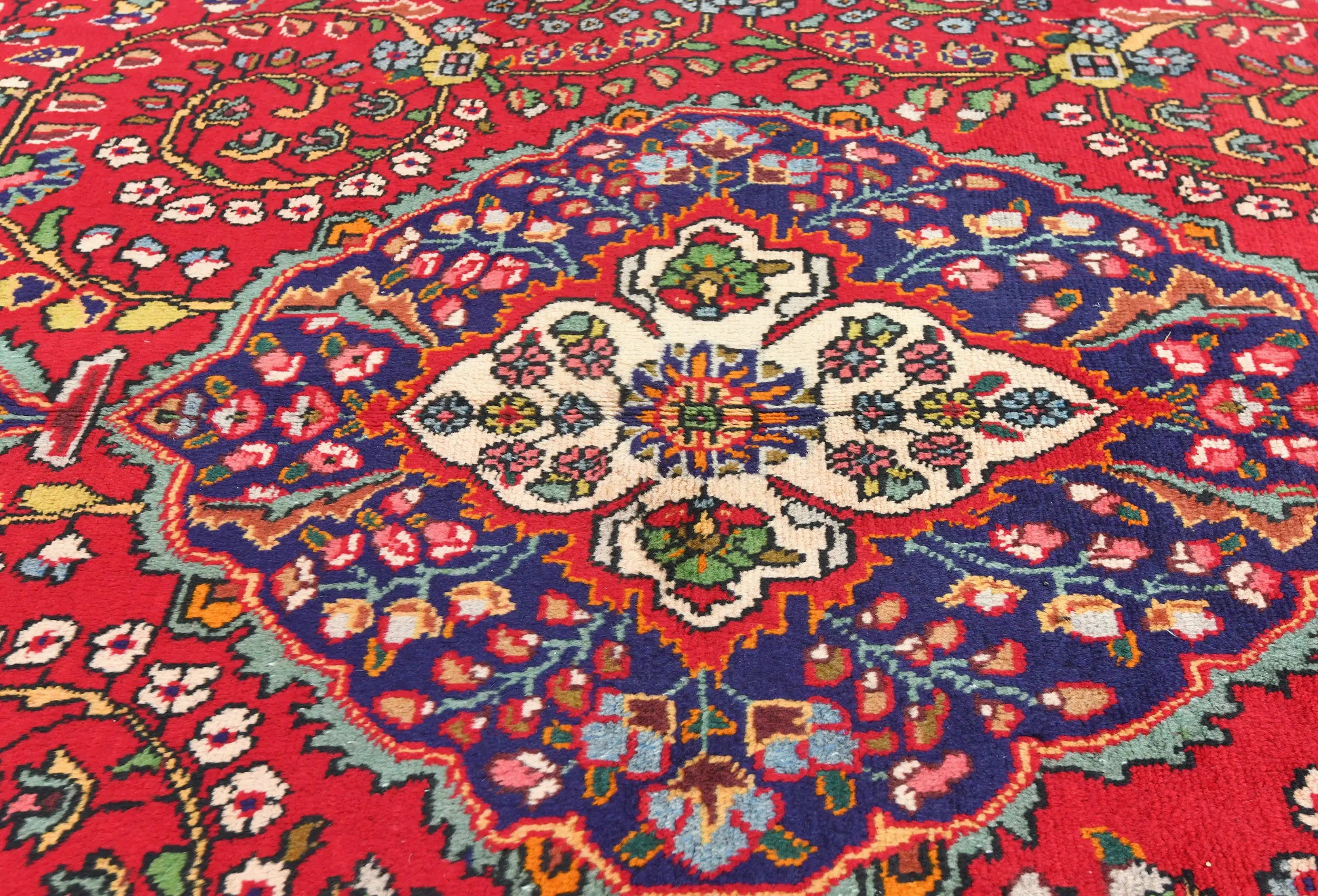 Handmade vintage 7X10 red traditional Persian rug made with vegetable dyes (fine wool pile and cotton foundation), exceptional knot count, and appealing ancient designs. This Oriental rug never will go out of style and would be among your most valuable treasures.
