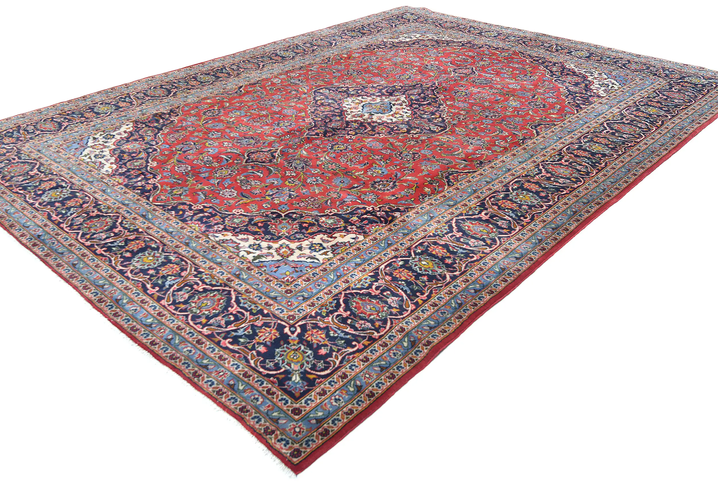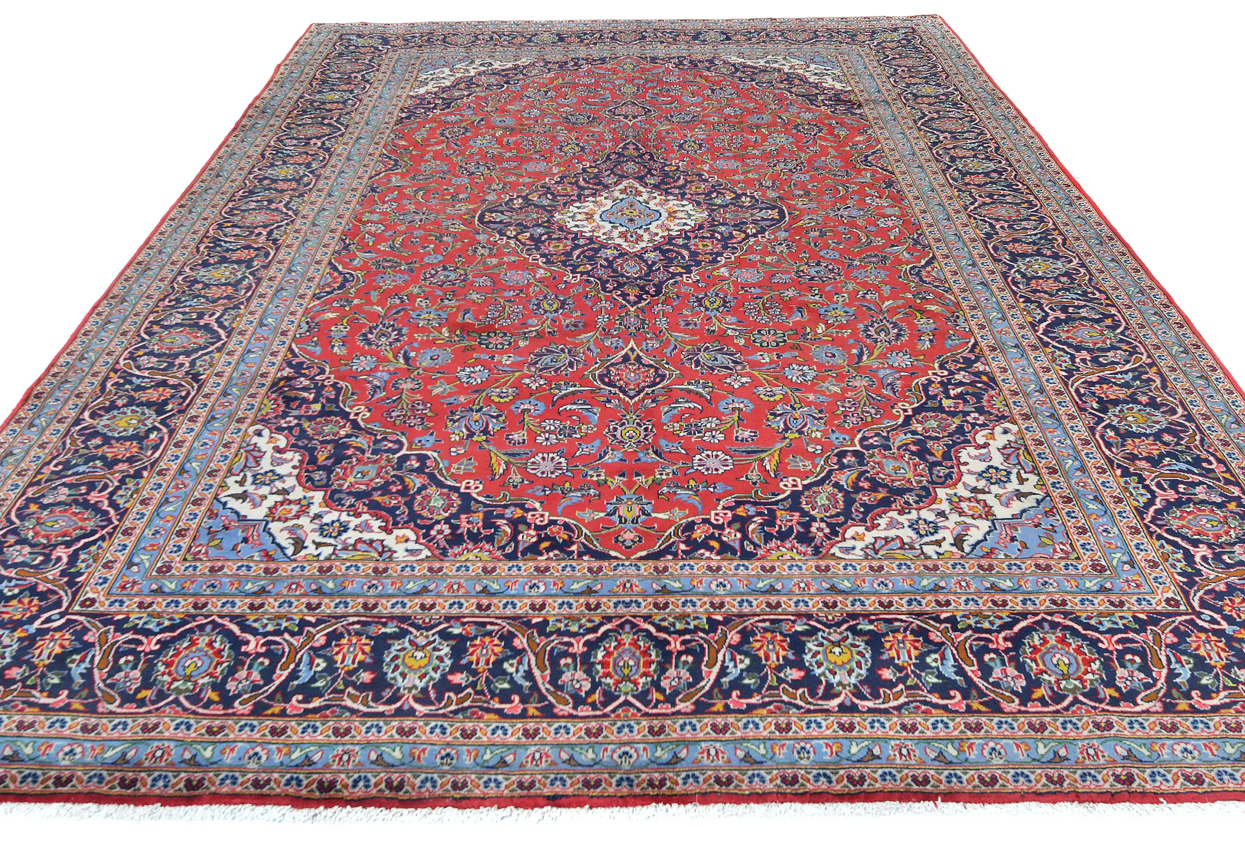 Vintage Red Floral Traditional 8X11 Kashan Persian Rug