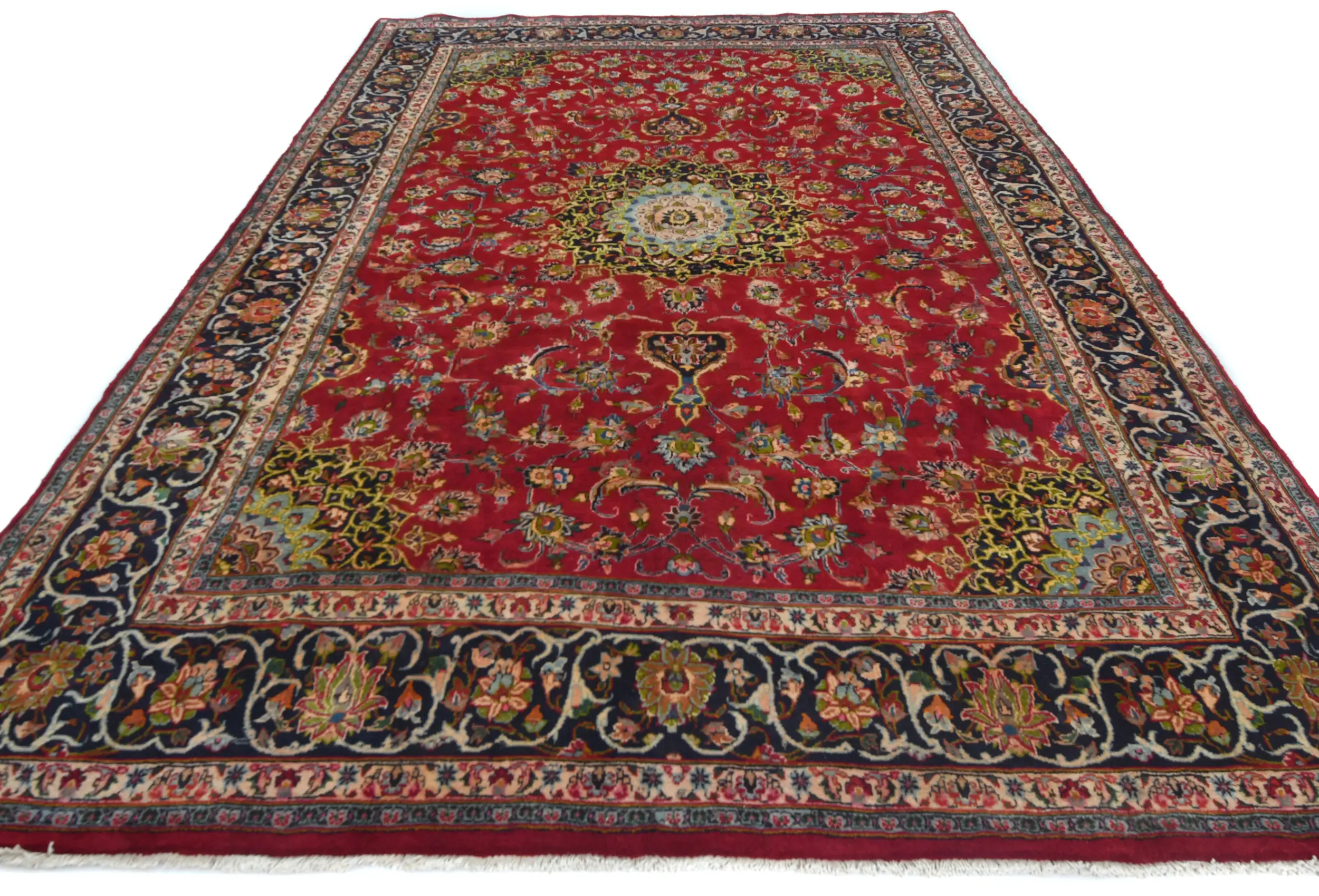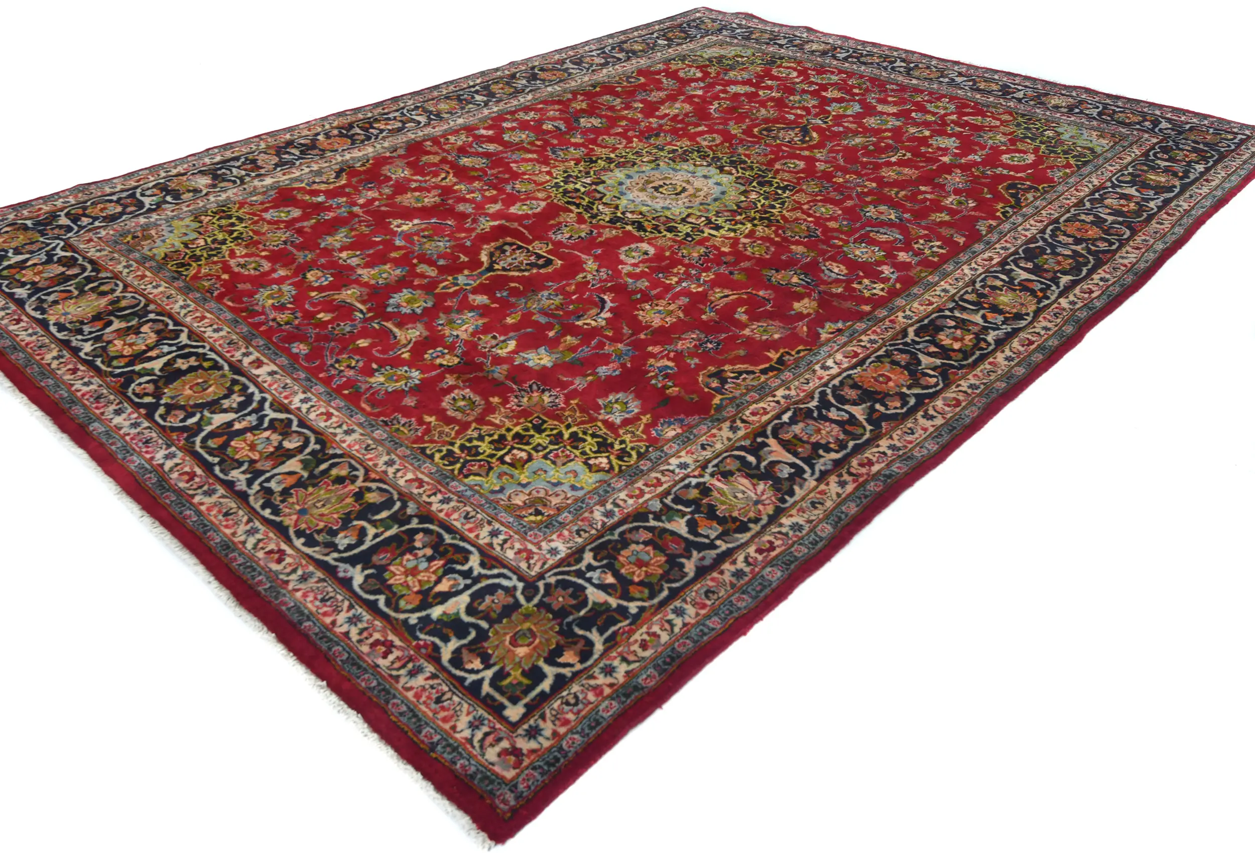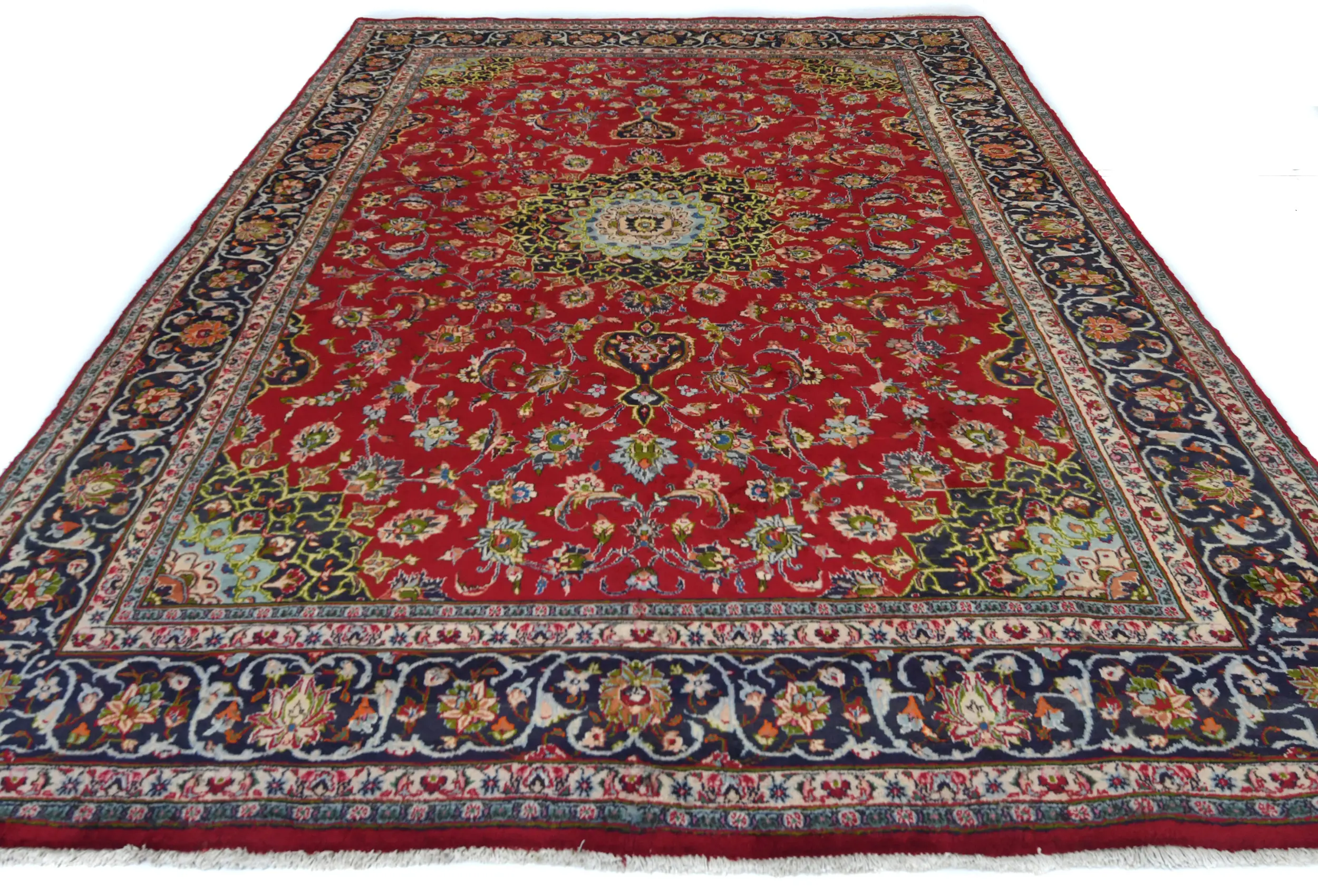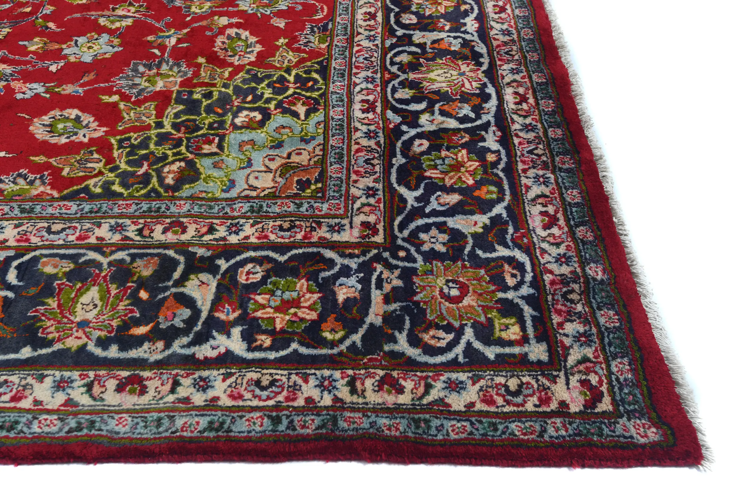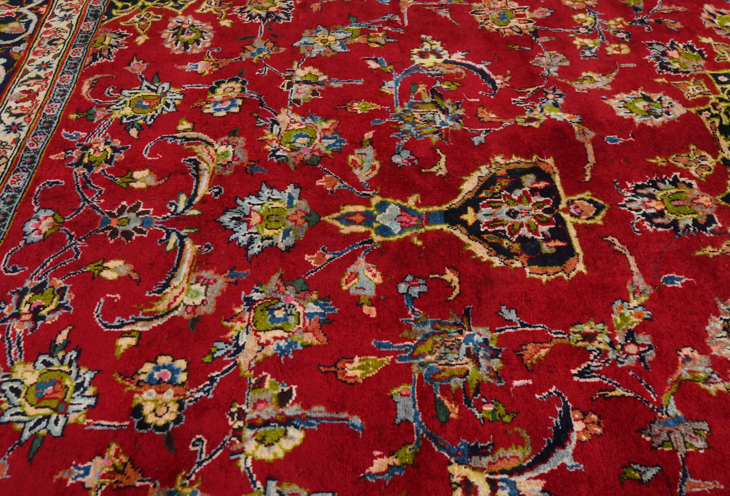 Vintage Red Floral Traditional 8x11 Mashad Persian Rug