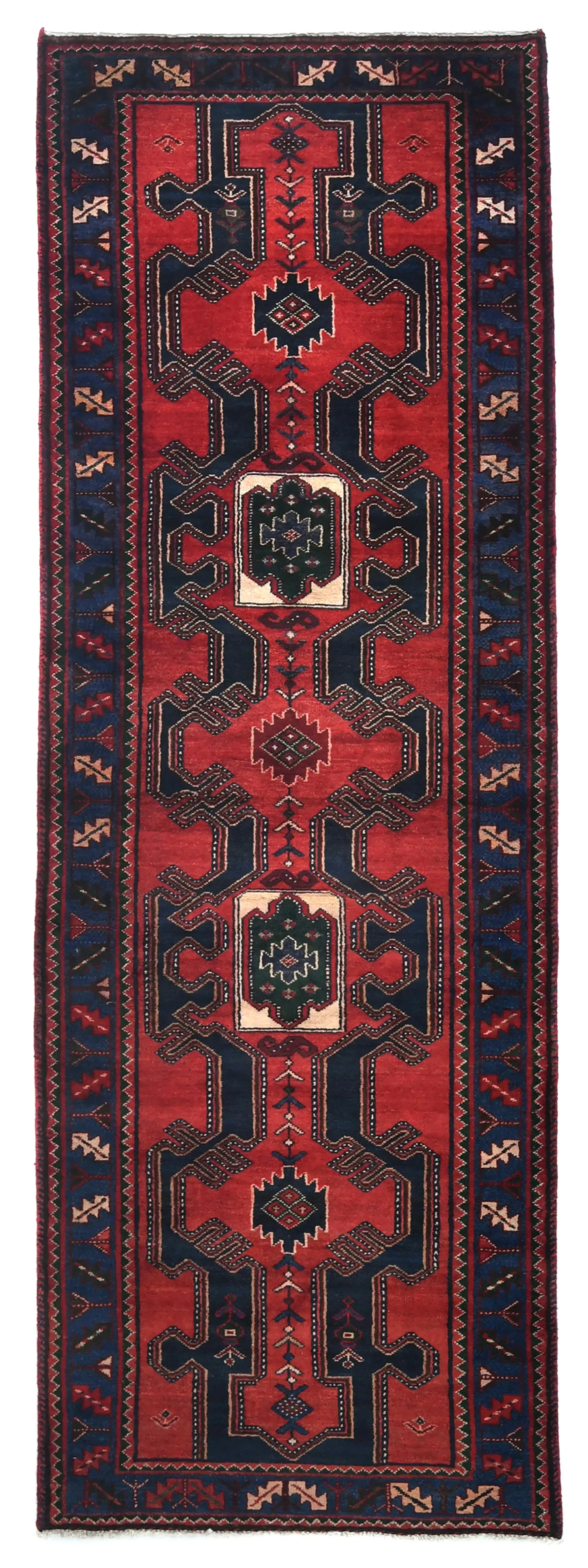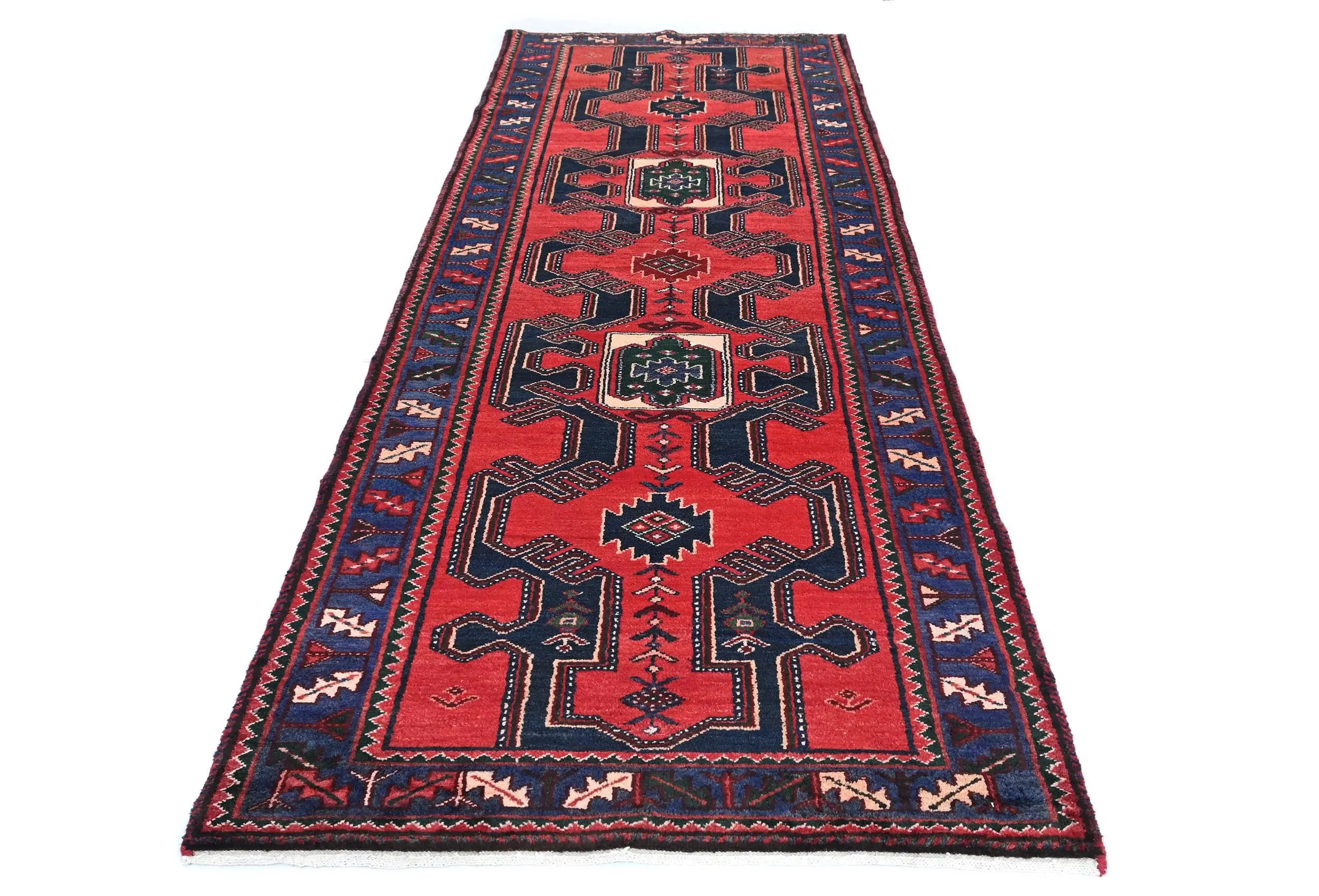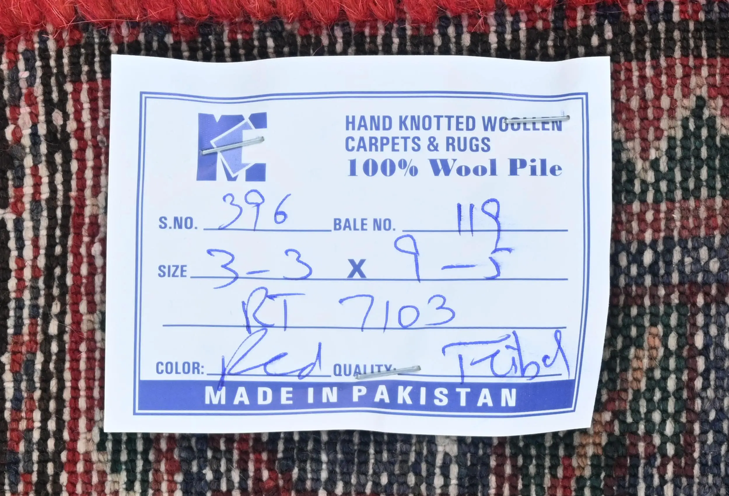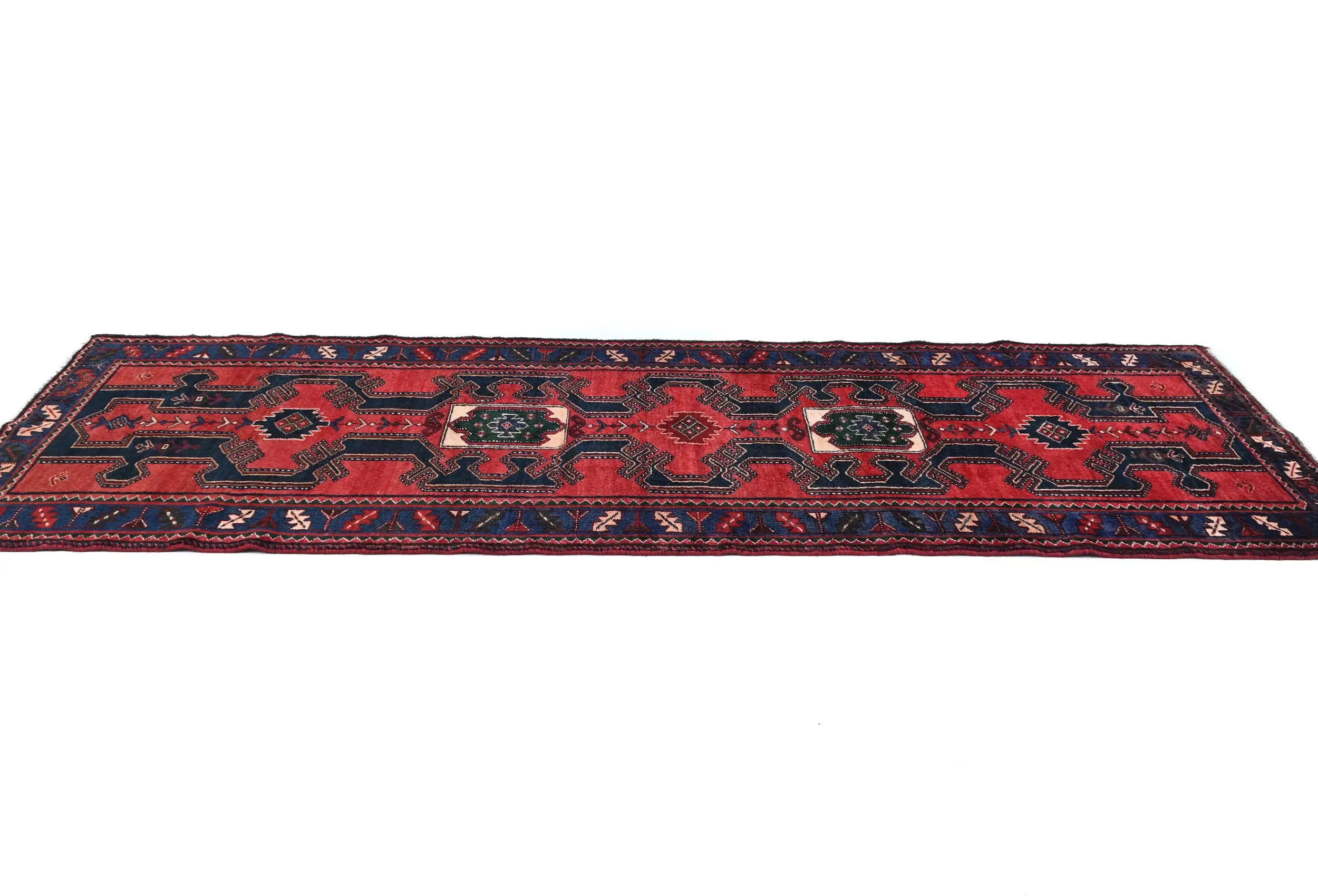 Handmade vintage 3'3X9'5 Red Persian runner made with vegetable dyes (fine wool pile and cotton foundation), exceptional knot count, and appealing ancient designs. This Oriental runner never will go out of style and would be among your most valuable treasures.