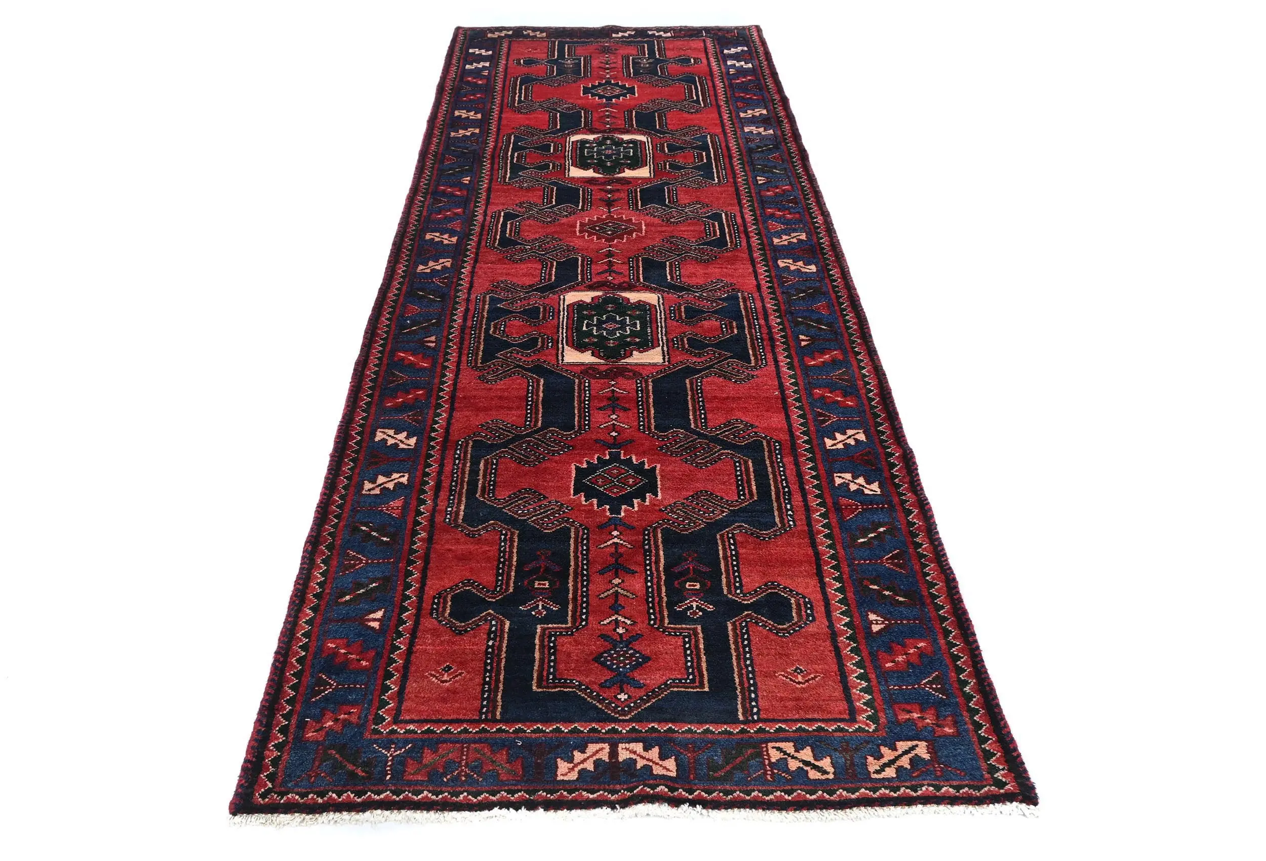 Vintage Red Floral Tribal 3'3X9'5 Hamedan Persian Runner Rug