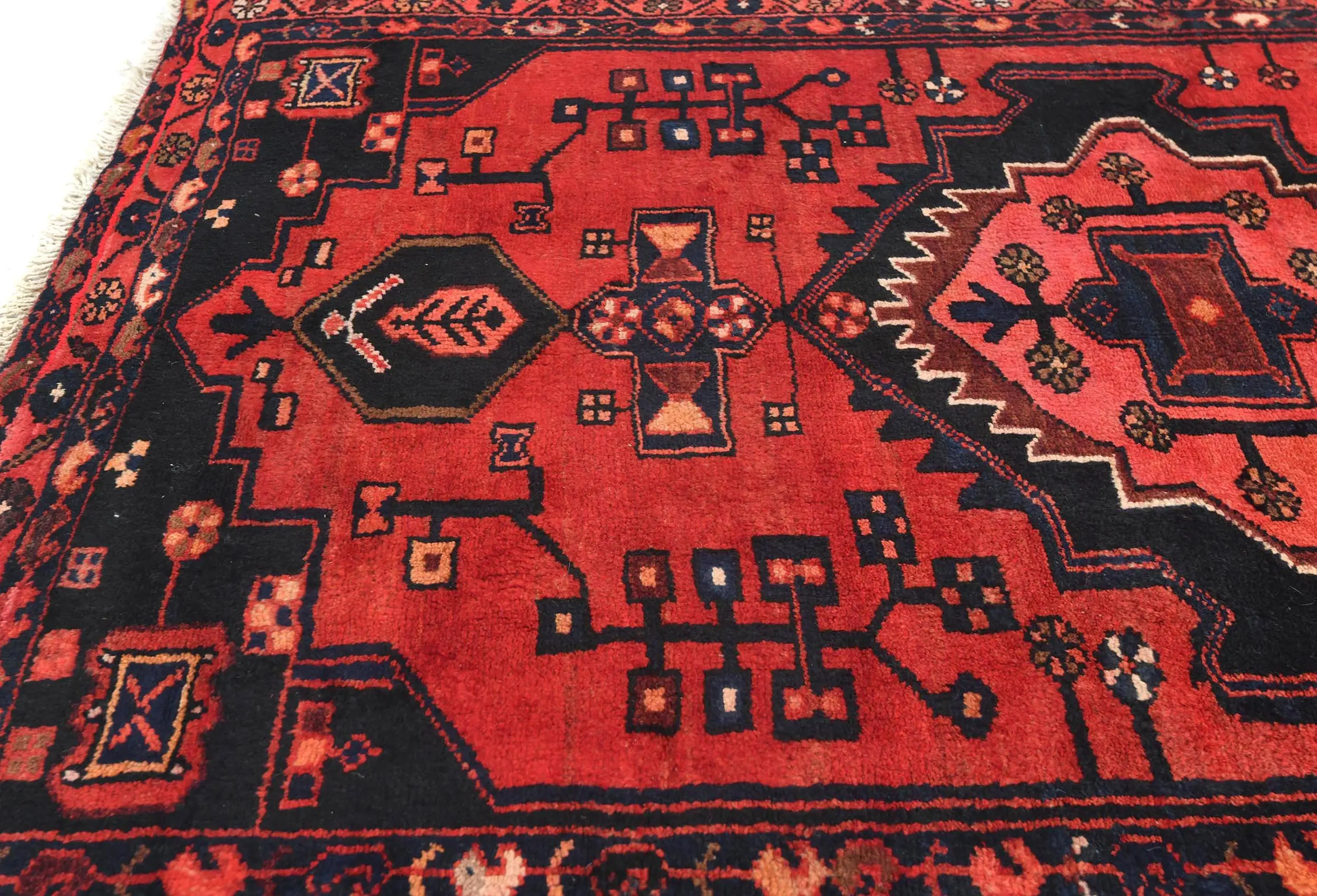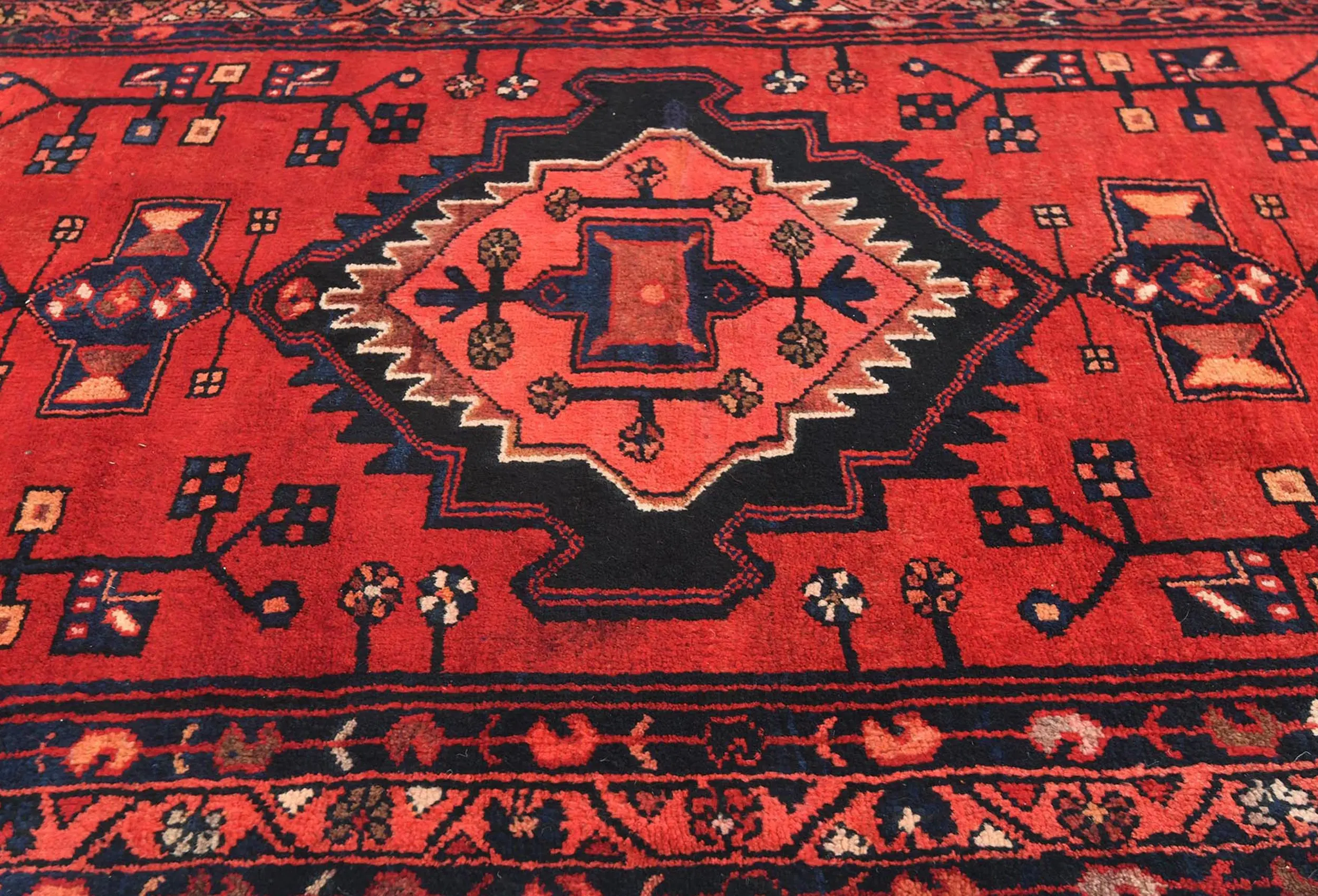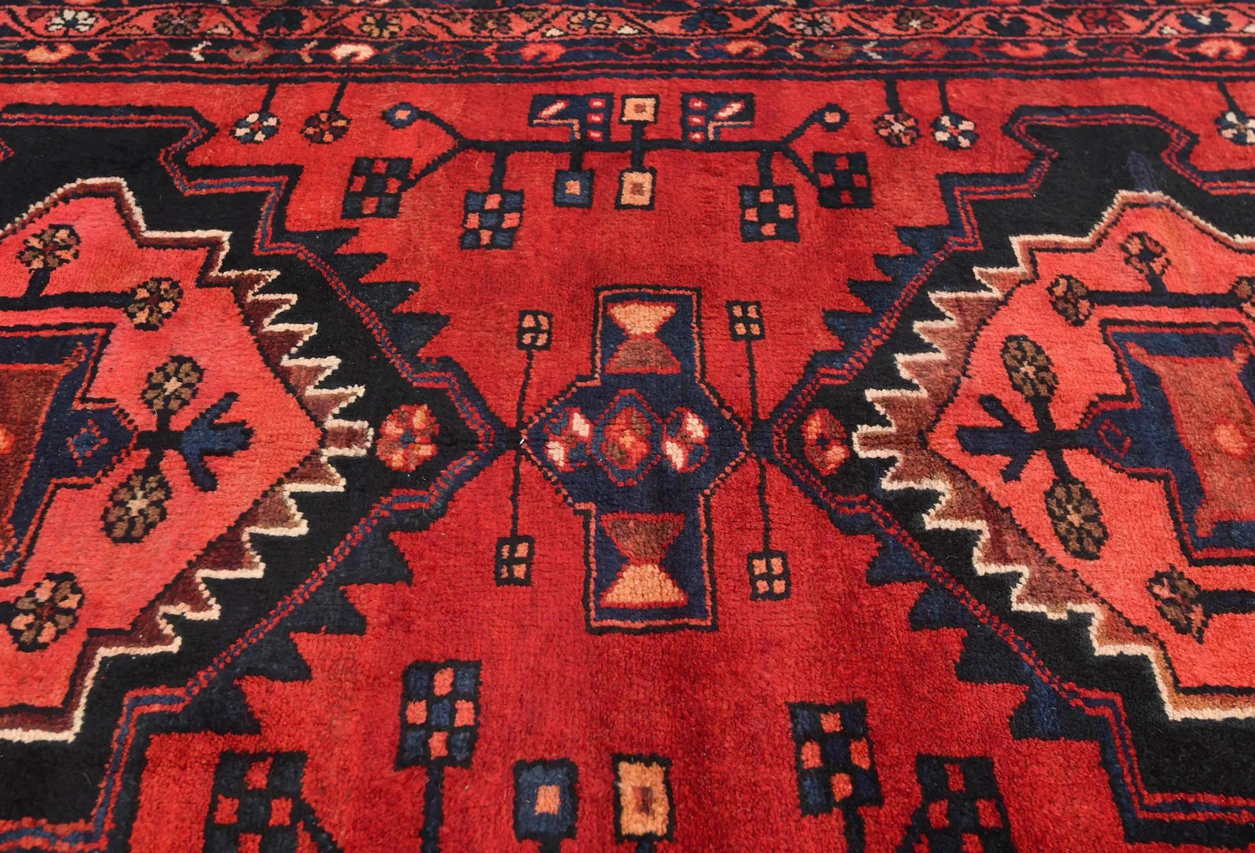 Handmade vintage 3'5X9'10 Red Persian rug made with vegetable dyes (fine wool pile and cotton foundation), exceptional knot count, and appealing ancient designs. This Oriental rug never will go out of style and would be among your most valuable treasures.