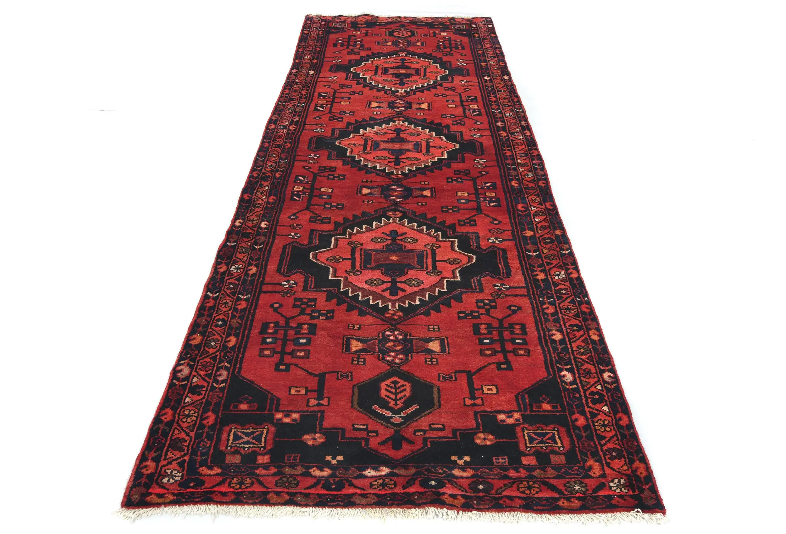 Vintage Red Floral Tribal 3'5X9'10 Hamedan Persian Rug