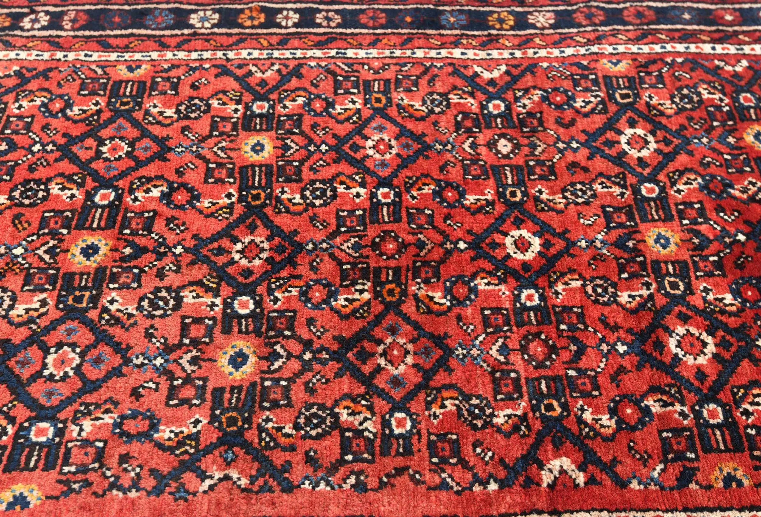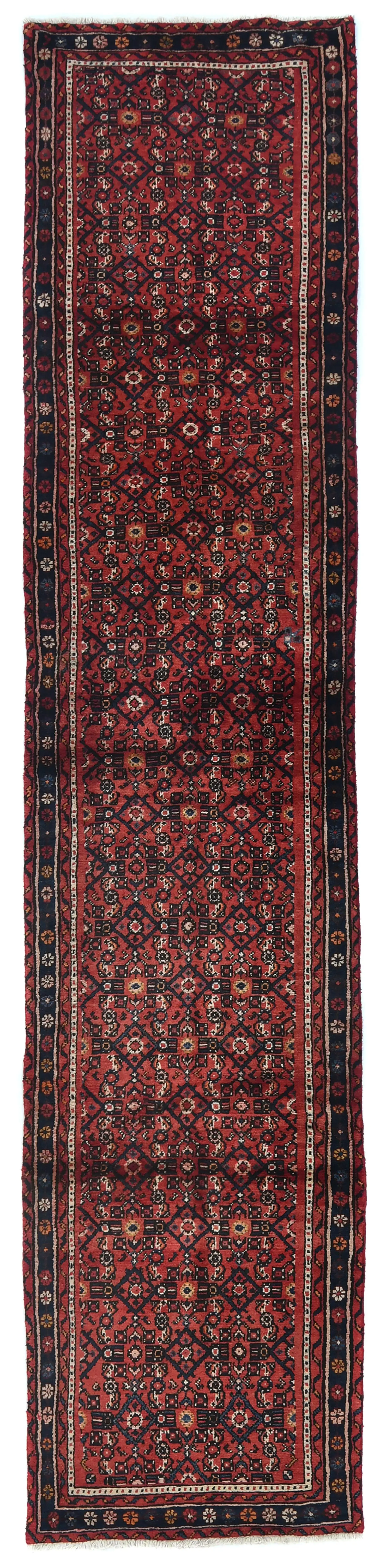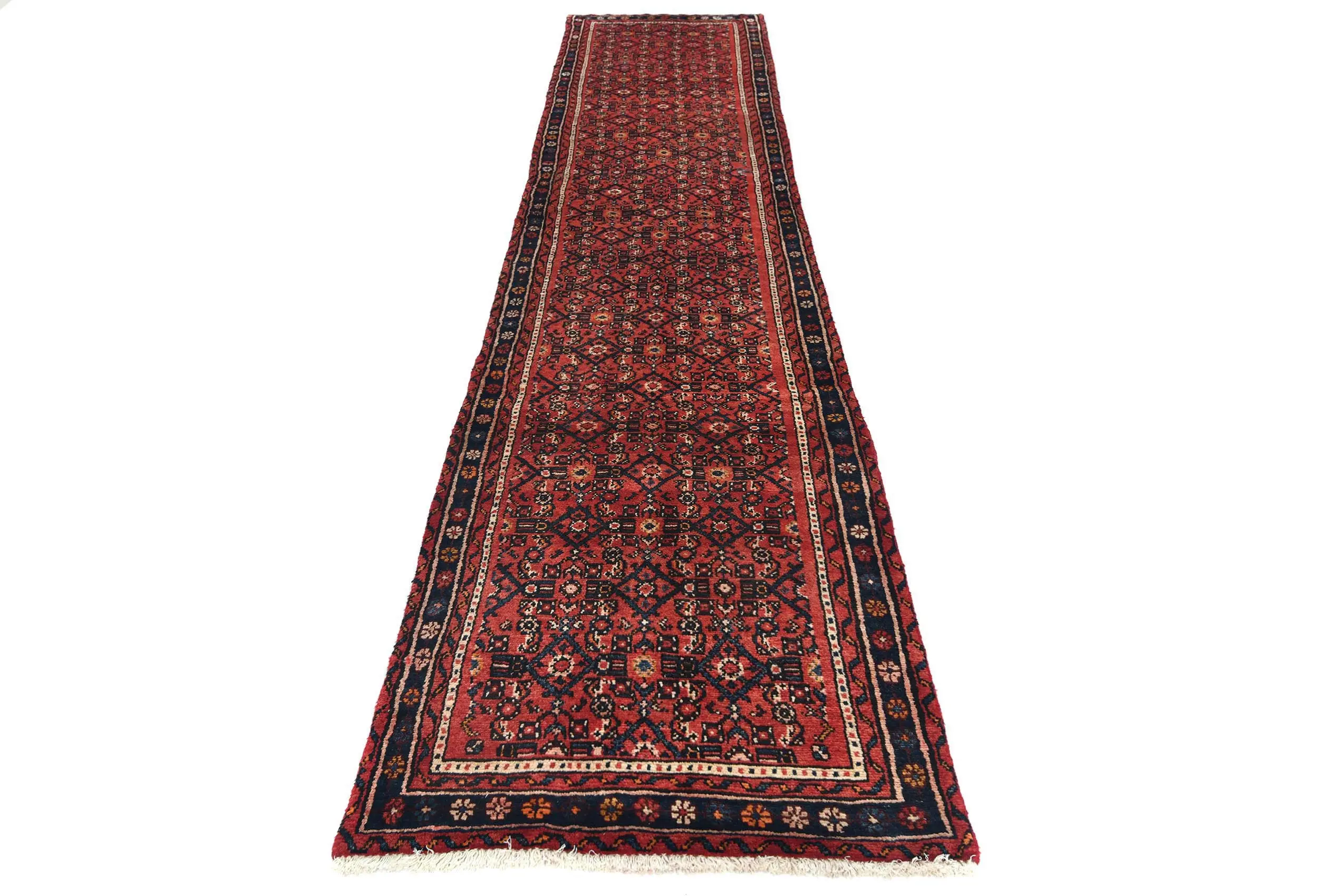 Handmade vintage 3X13 Red Persian runner made with vegetable dyes (fine wool pile and cotton foundation), exceptional knot count, and appealing ancient designs. This Oriental runner never will go out of style and would be among your most valuable treasures.