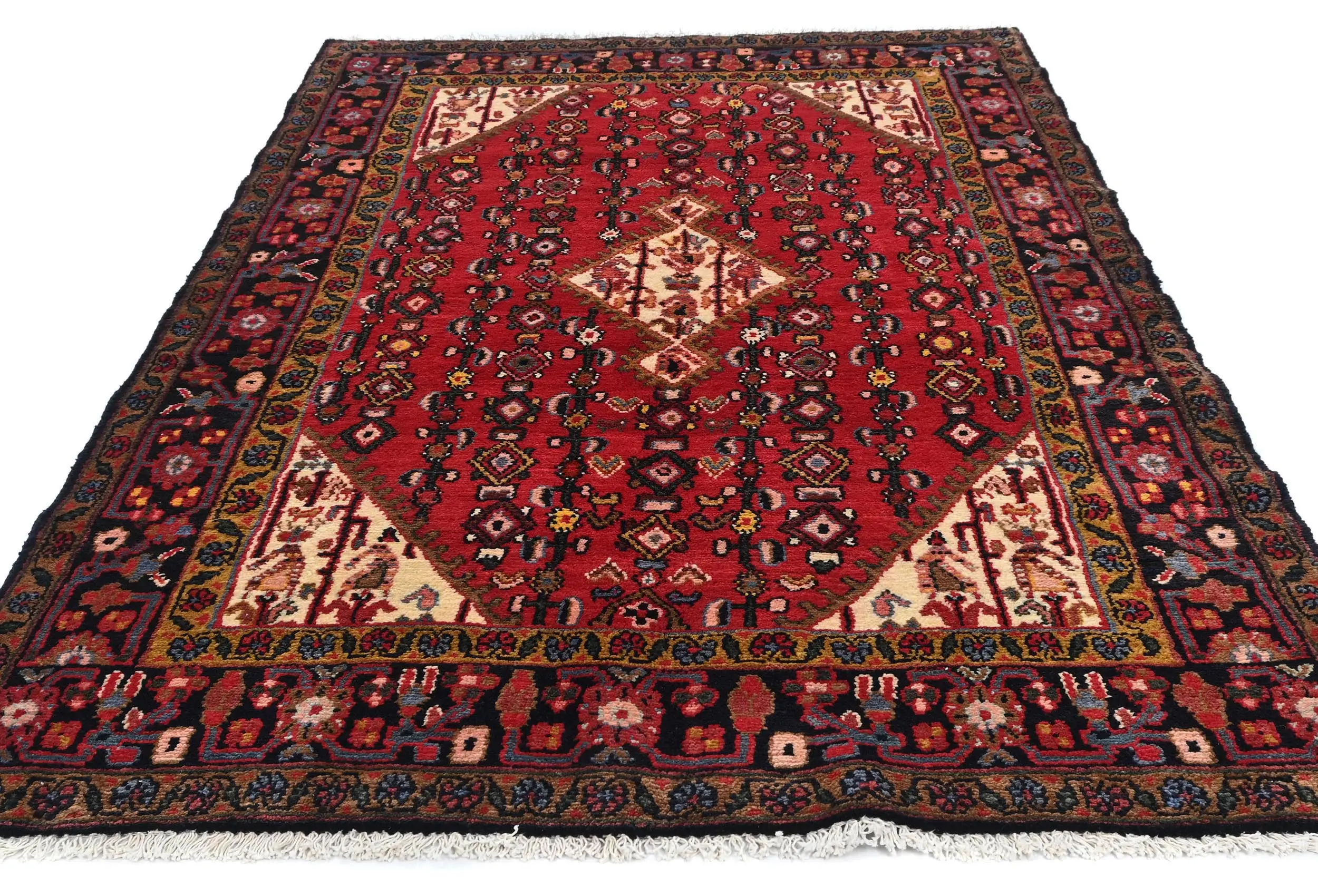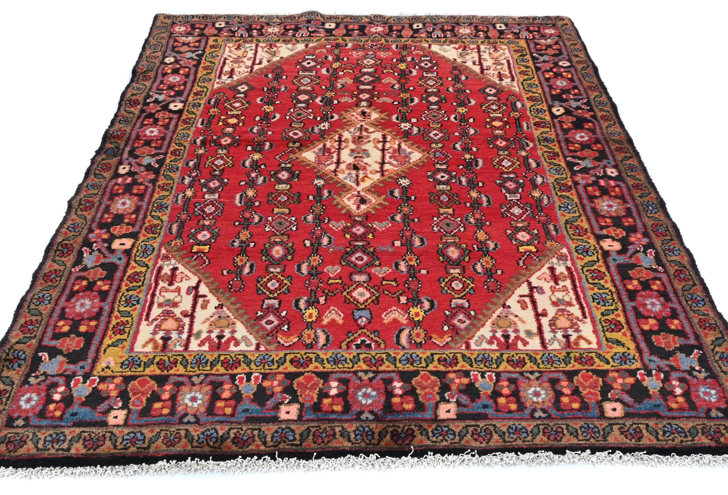 Vintage Red Floral Tribal 4X6 Hamedan Persian Rug