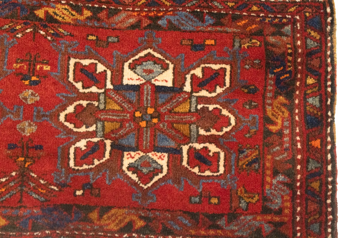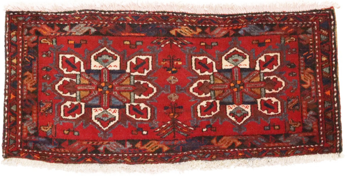 Vintage Red Geometric 1'6X3'6 Heriz Persian Rug