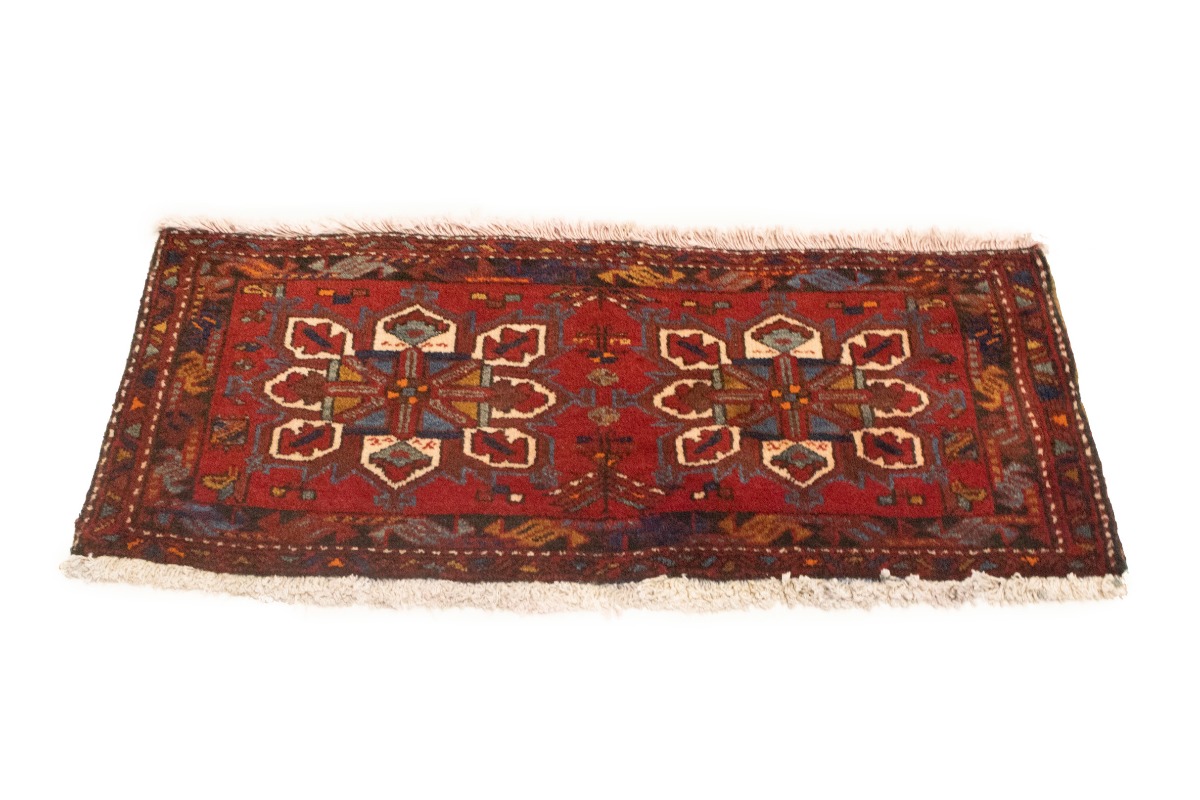 This original 1'6X3'6 red vintage Persian rug was crafted by the hands of skilled weavers enthused by a variety of lovely artistic designs, to recreate the aged look of the unique piece with a richness of color and beautifully elaborated background field. What set this tribal Oriental area rug from the others are the material and dye used (wool pile and cotton foundation), knot count, ancient designs, fantastic grades, and its regional historical connection: it has deep roots, from the story of the people who produced it to the meaning of the symbols and colors displayed across its canvas that have been praised for centuries. This home décor carpet will be completely cozy and inviting that never will go out of style! Also, this Oriental rug would be among your most valuable treasures, it is a great investment that increase in value over time, and it will last for generations because was woven with high-quality, all-natural wool; it won’t rip, tear, or shed. Environmentally friendly, opulent yet affordable; this Persian rug will give you a thorough amount of character to help define your living space with sophistication and warmth that will capture the eyes and attention of your audience (homeowners, designers, decorators, family and friends). EB-6322