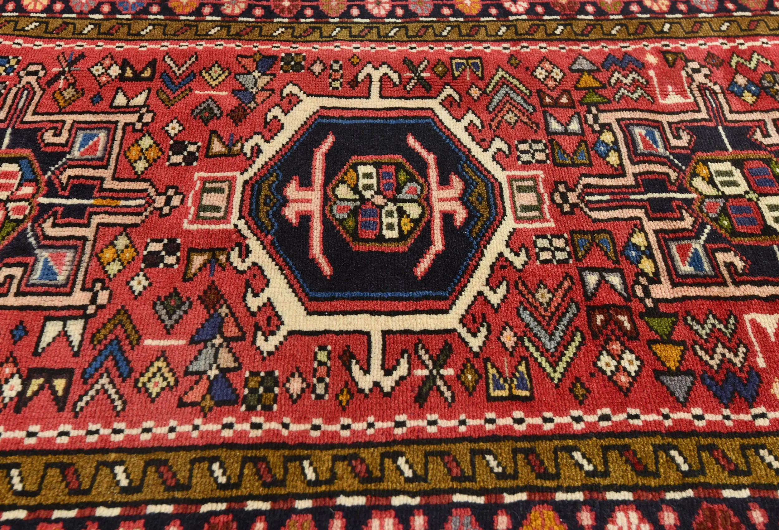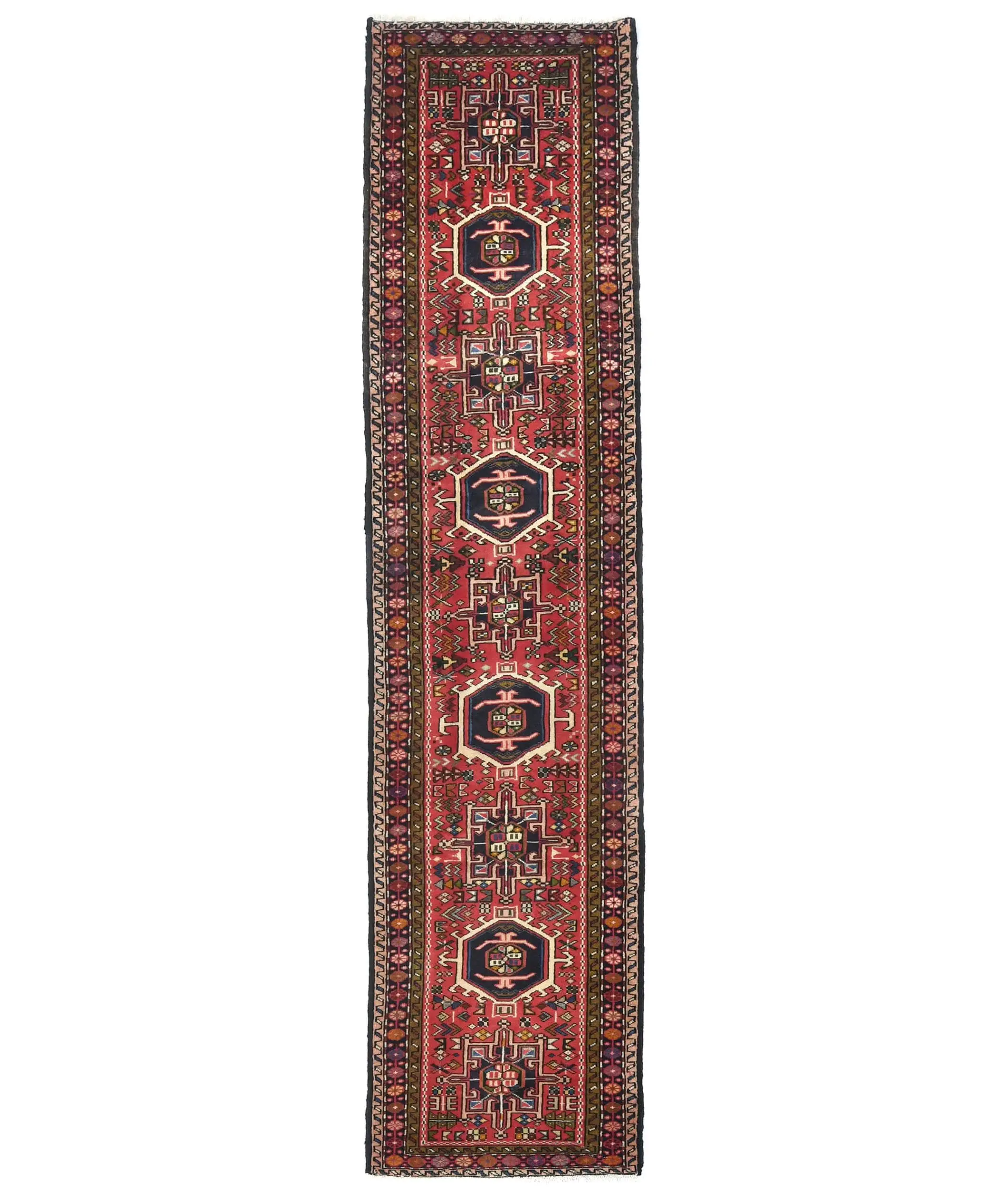 Vintage Red Geometric 2'3X9'8 Karajeh Persian Runner Rug