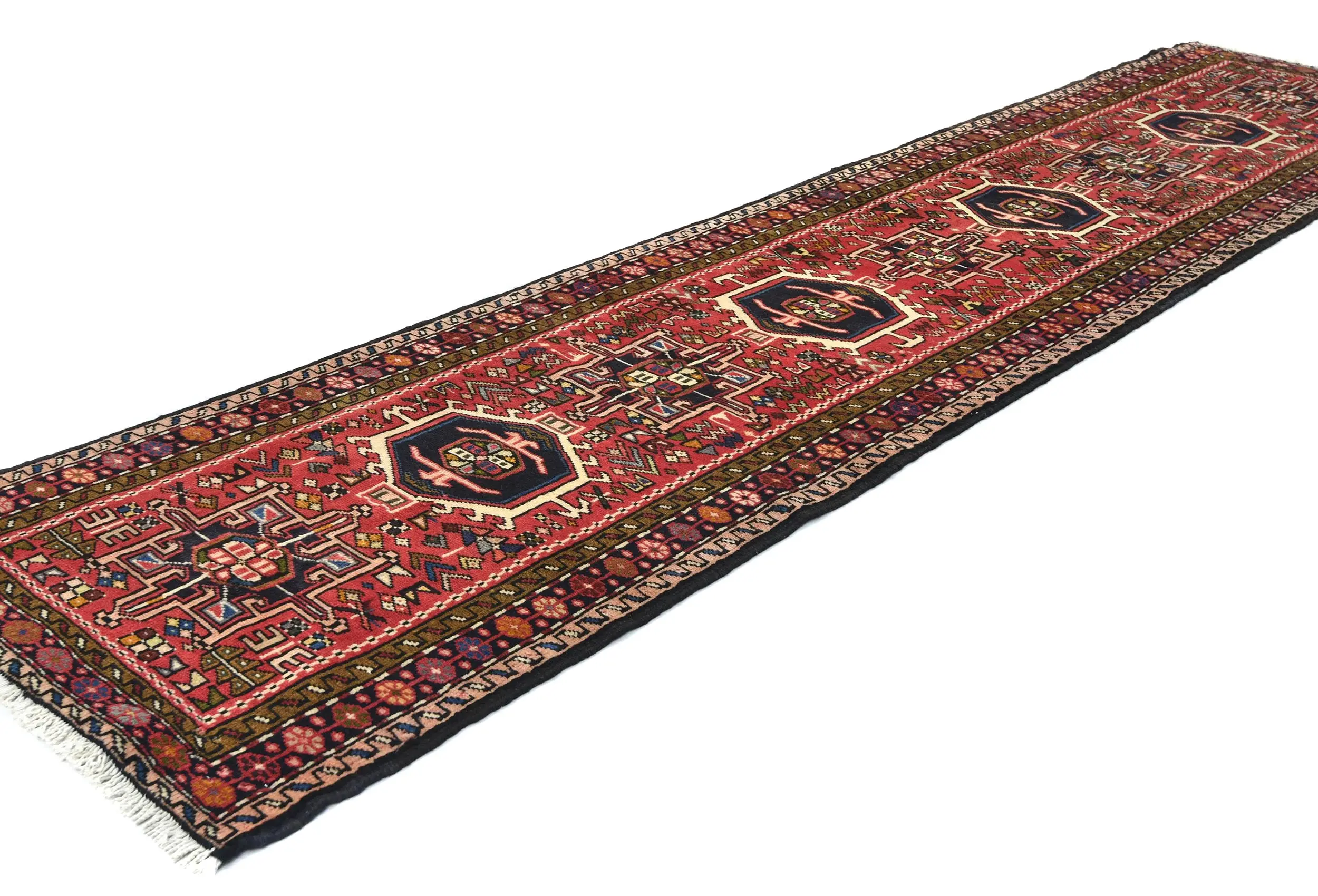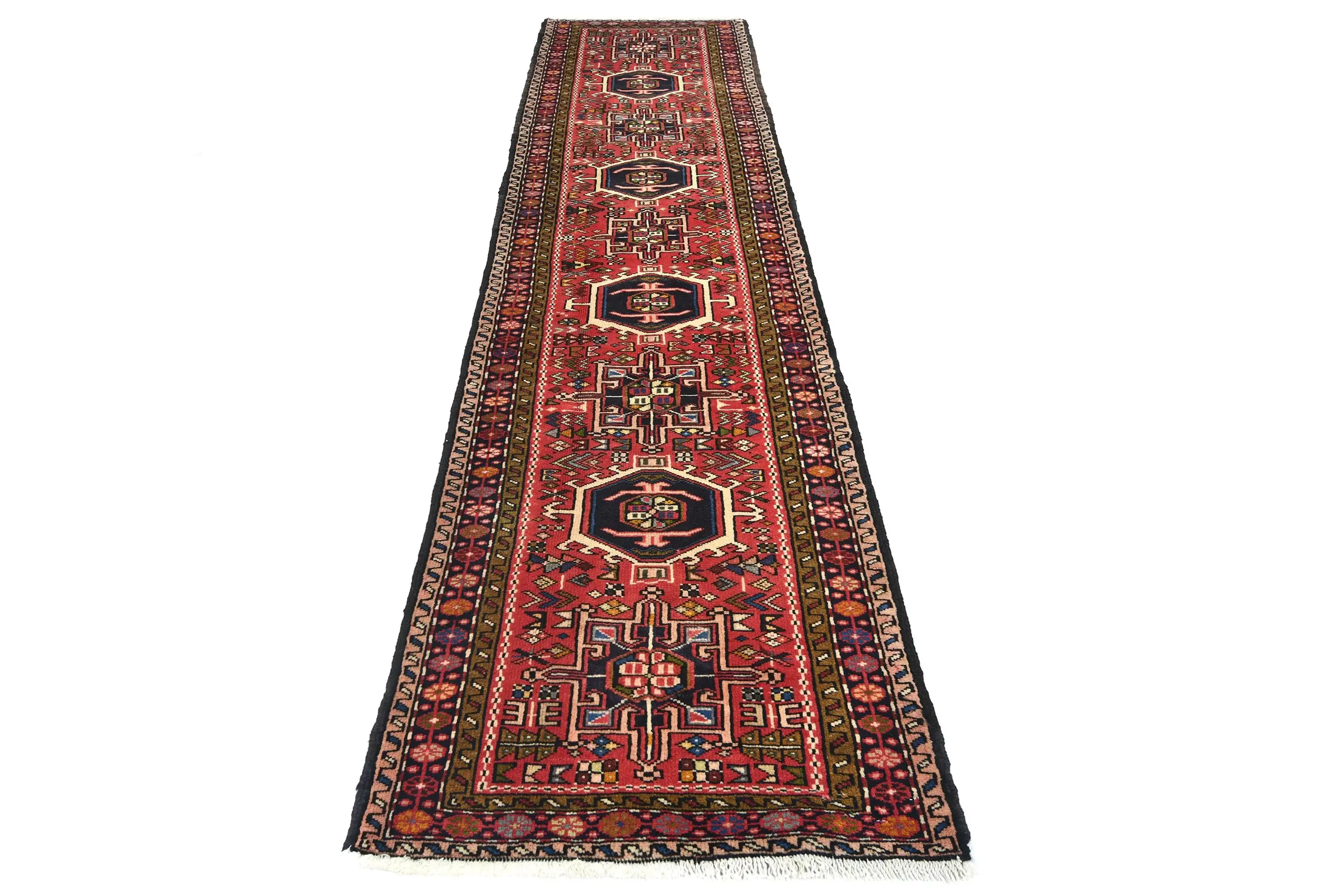 Hand Knotted 2'3X9'8 Red Persian runner made with vegetable dyes (fine wool pile and cotton foundation), exceptional knot count, and appealing ancient designs. This Oriental runner never will go out of style and would be among your most valuable treasures.