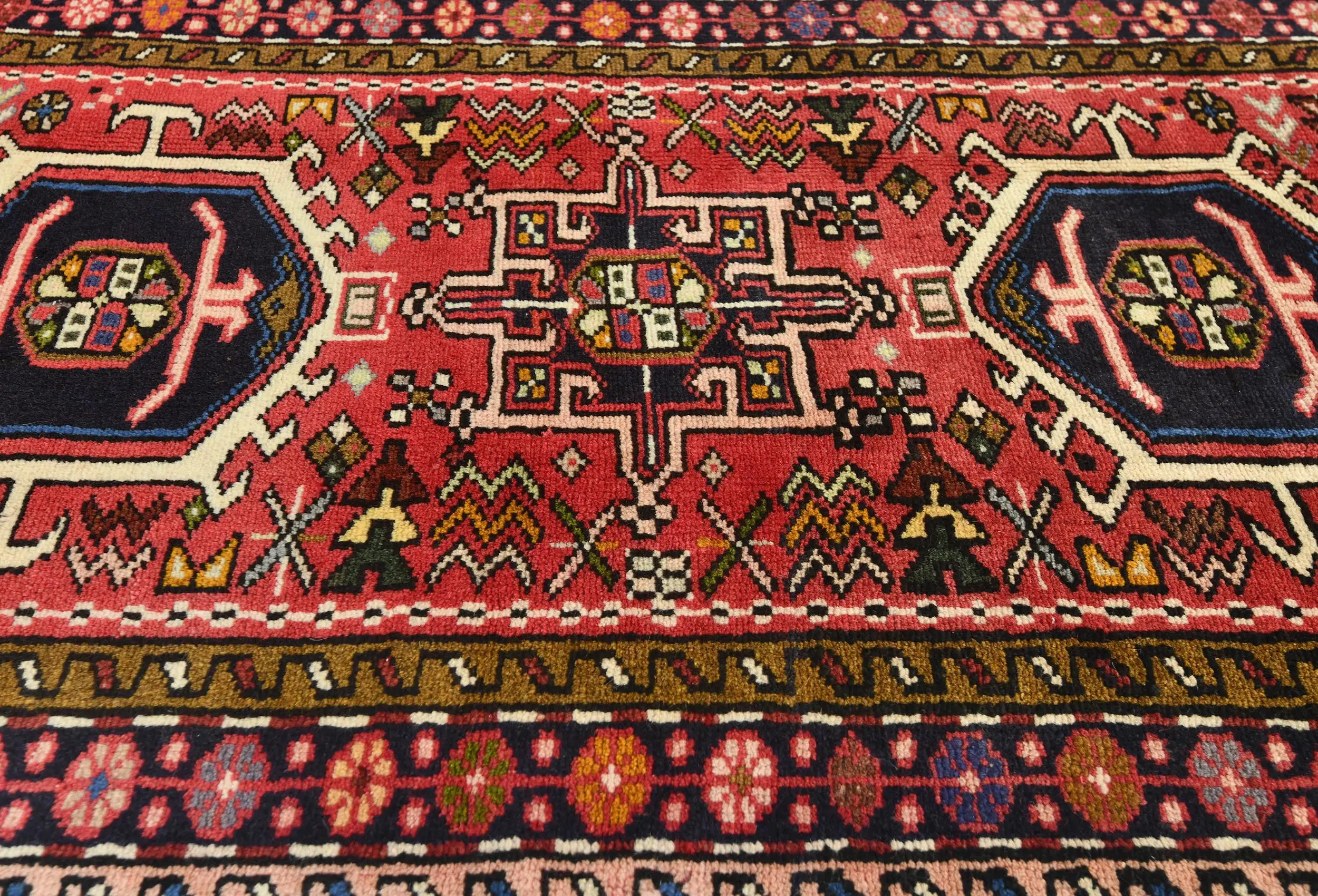 This original 2'3 X 9'8 Red vintage Persian runner was crafted by the hands of skilled weavers enthused by a variety of lovely artistic designs, to recreate the aged look of the unique piece with a richness of color and beautifully elaborated background field. What set this geometric Oriental area runner from the others are the material and dye used (wool pile and cotton foundation), knot count, ancient designs, fantastic grades, and its regional historical connection: it has deep roots, from the story of the people who produced it to the meaning of the symbols and colors displayed across its canvas that have been praised for centuries. This home décor carpet will be completely cozy and inviting that never will go out of style! Also, this Oriental runner would be among your most valuable treasures, it is a great investment that increase in value over time, and it will last for generations because was woven with high-quality, all-natural wool; it won’t rip, tear, or shed. Environmentally friendly, opulent yet affordable; this Persian rug will give you a thorough amount of character to help define your living space with sophistication and warmth that will capture the eyes and attention of your audience (homeowners, designers, decorators, family and friends). RT-6984
