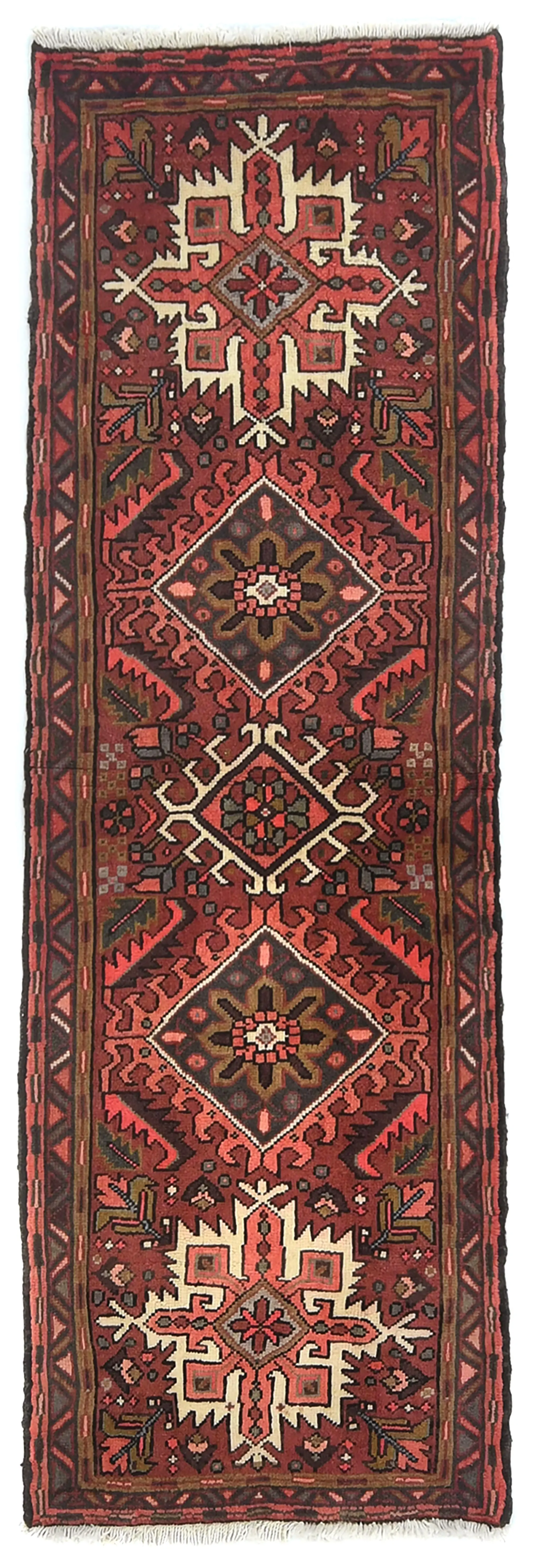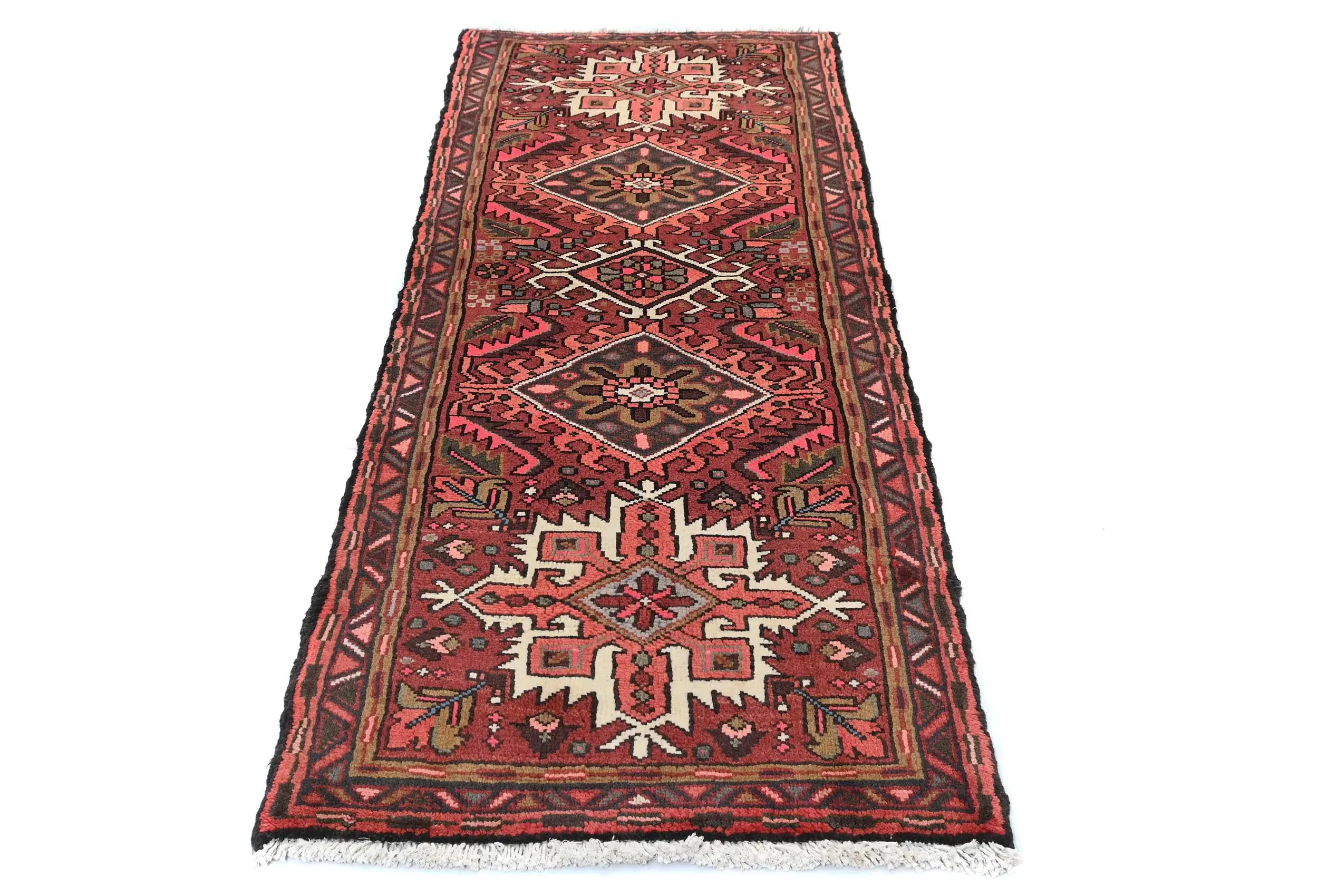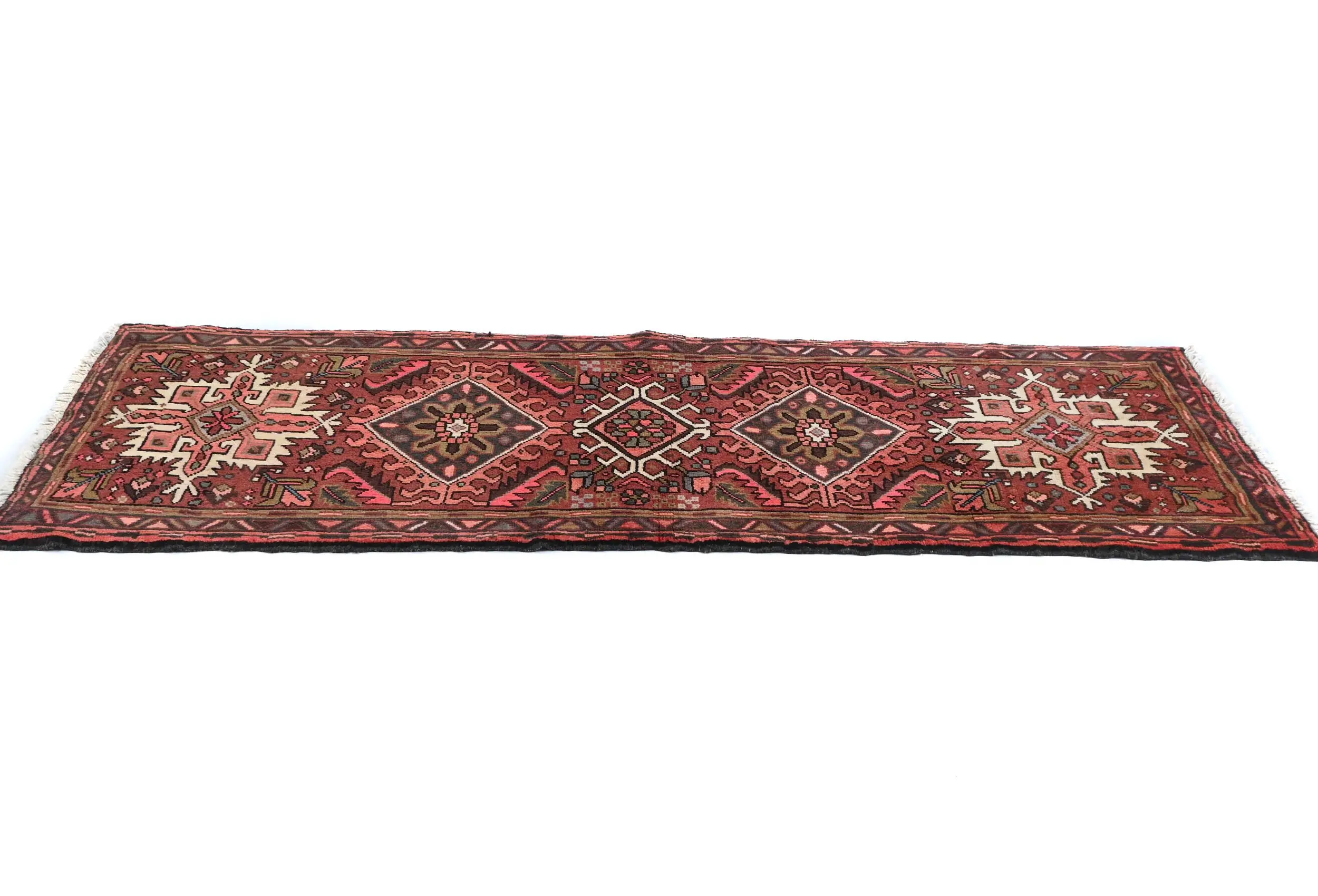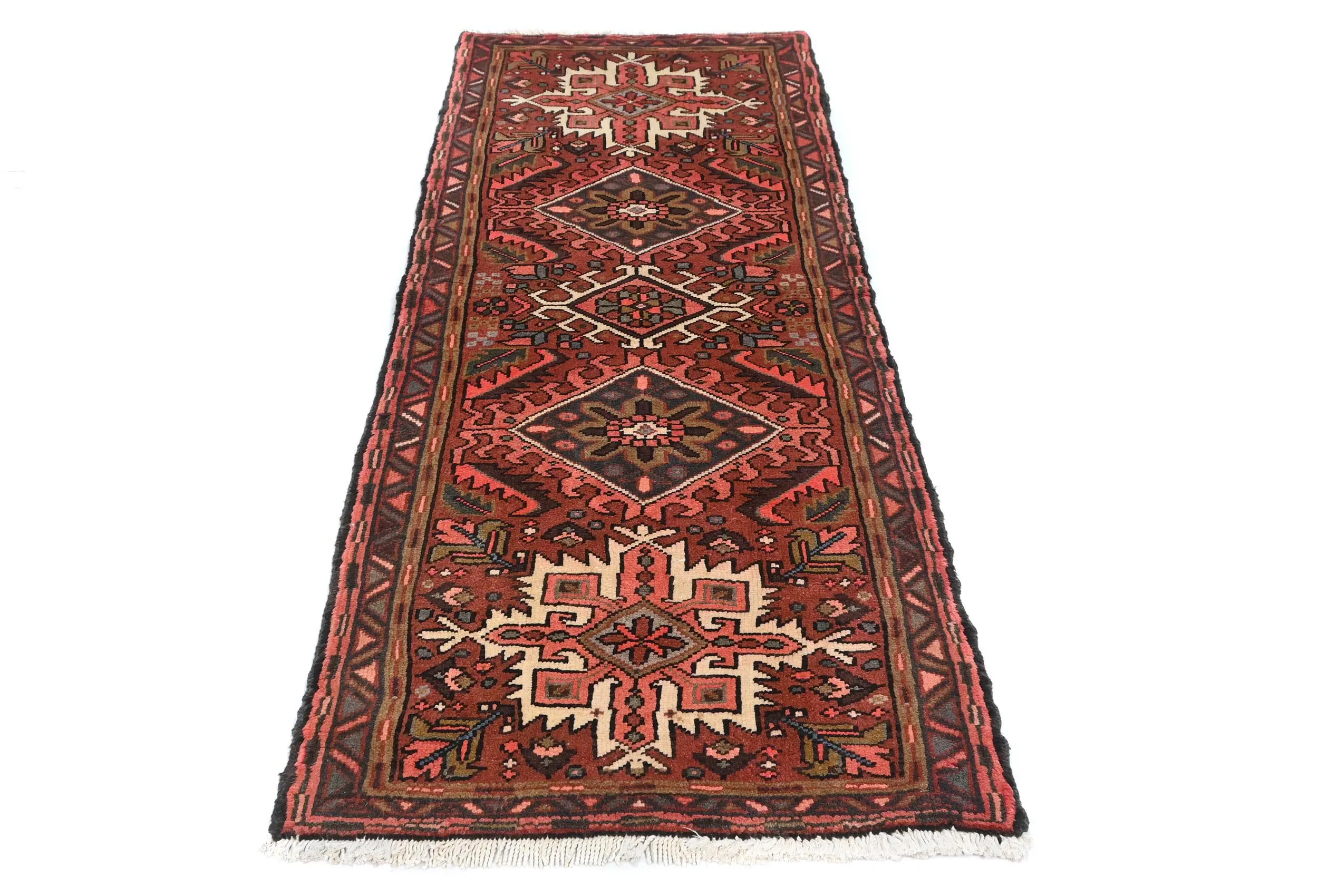 Vintage Red Geometric 2'4X6'8 Karajeh Persian Runner Rug