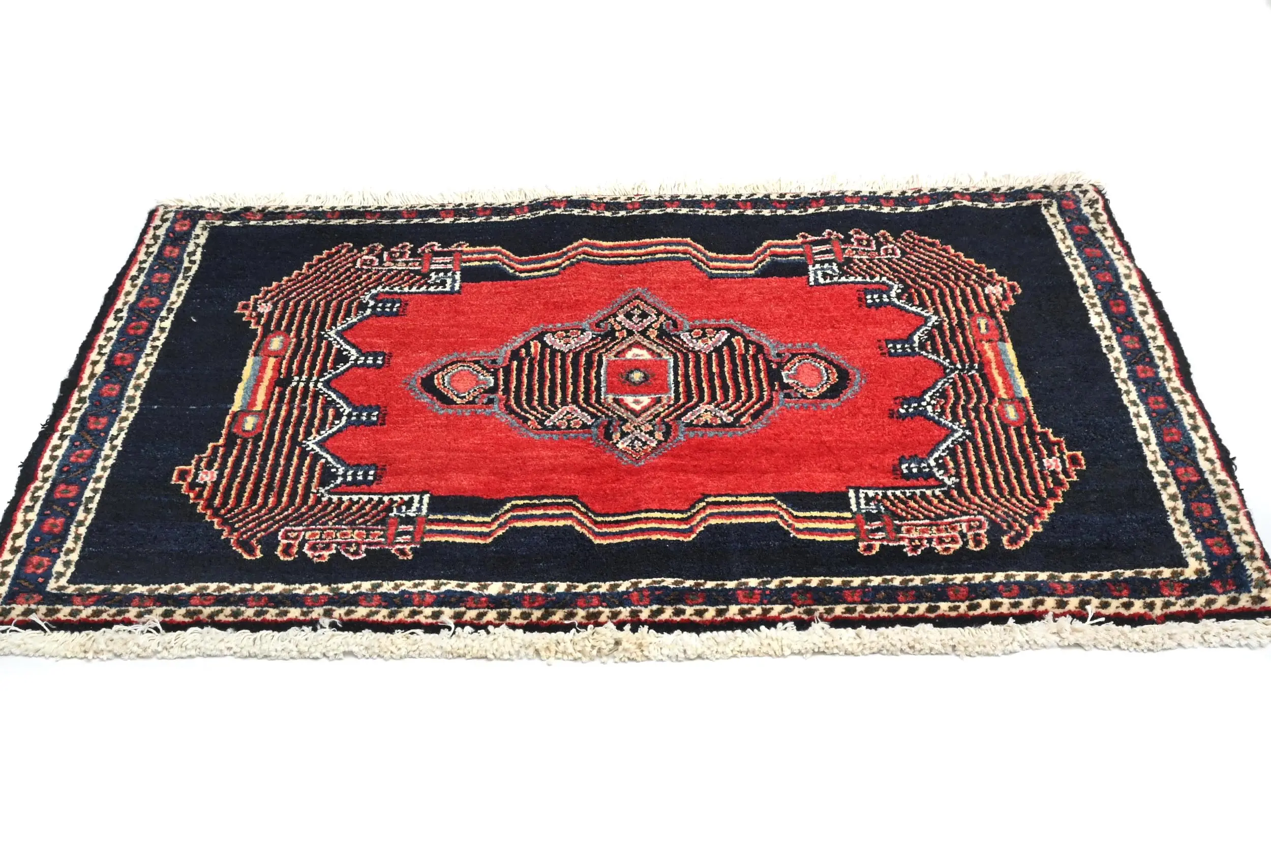 Vintage Red Geometric 2'6X3'5 Hamedan Persian Rug